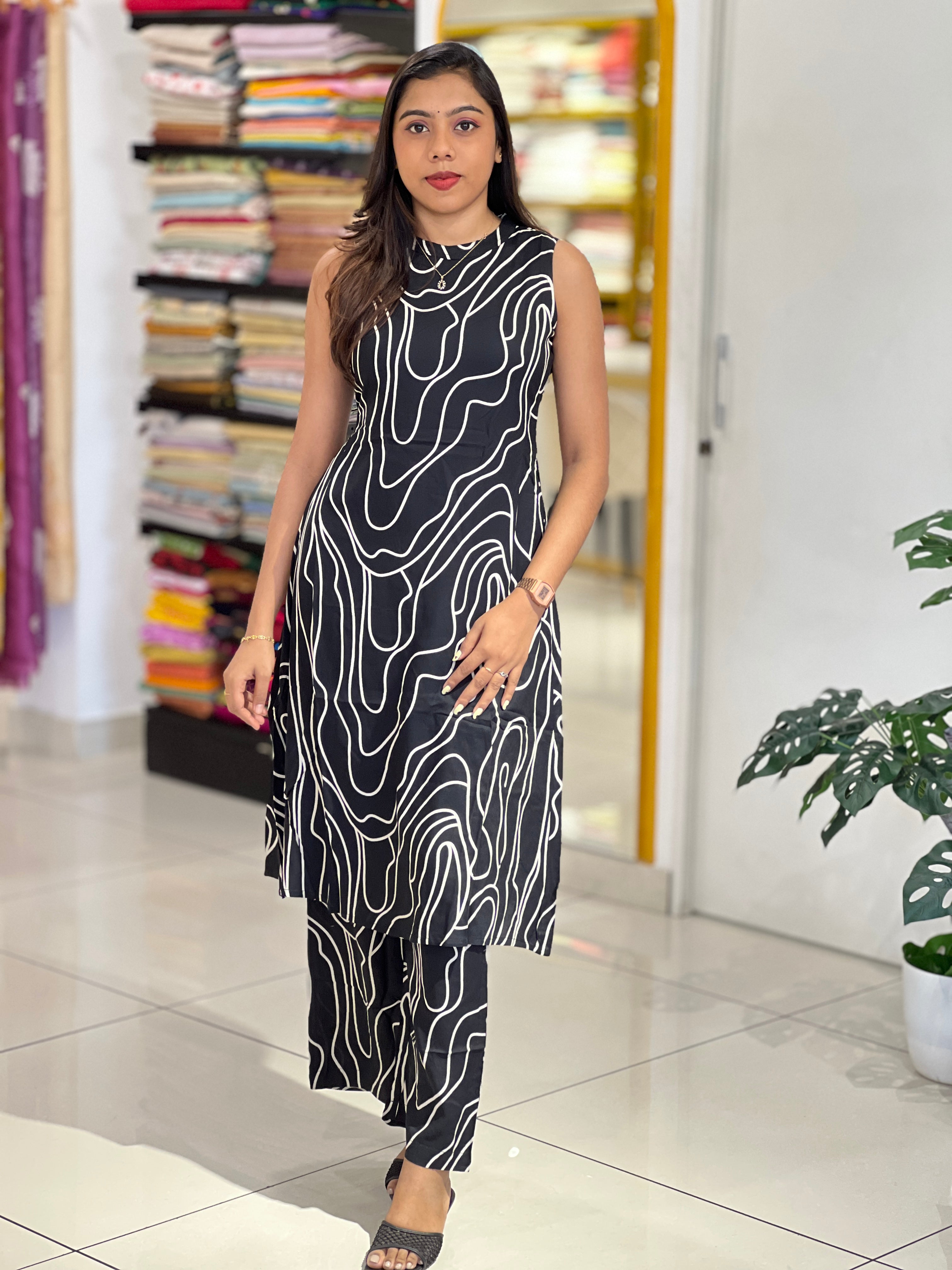 - Style: Flared, Printed, Elastic, Pockets Attached