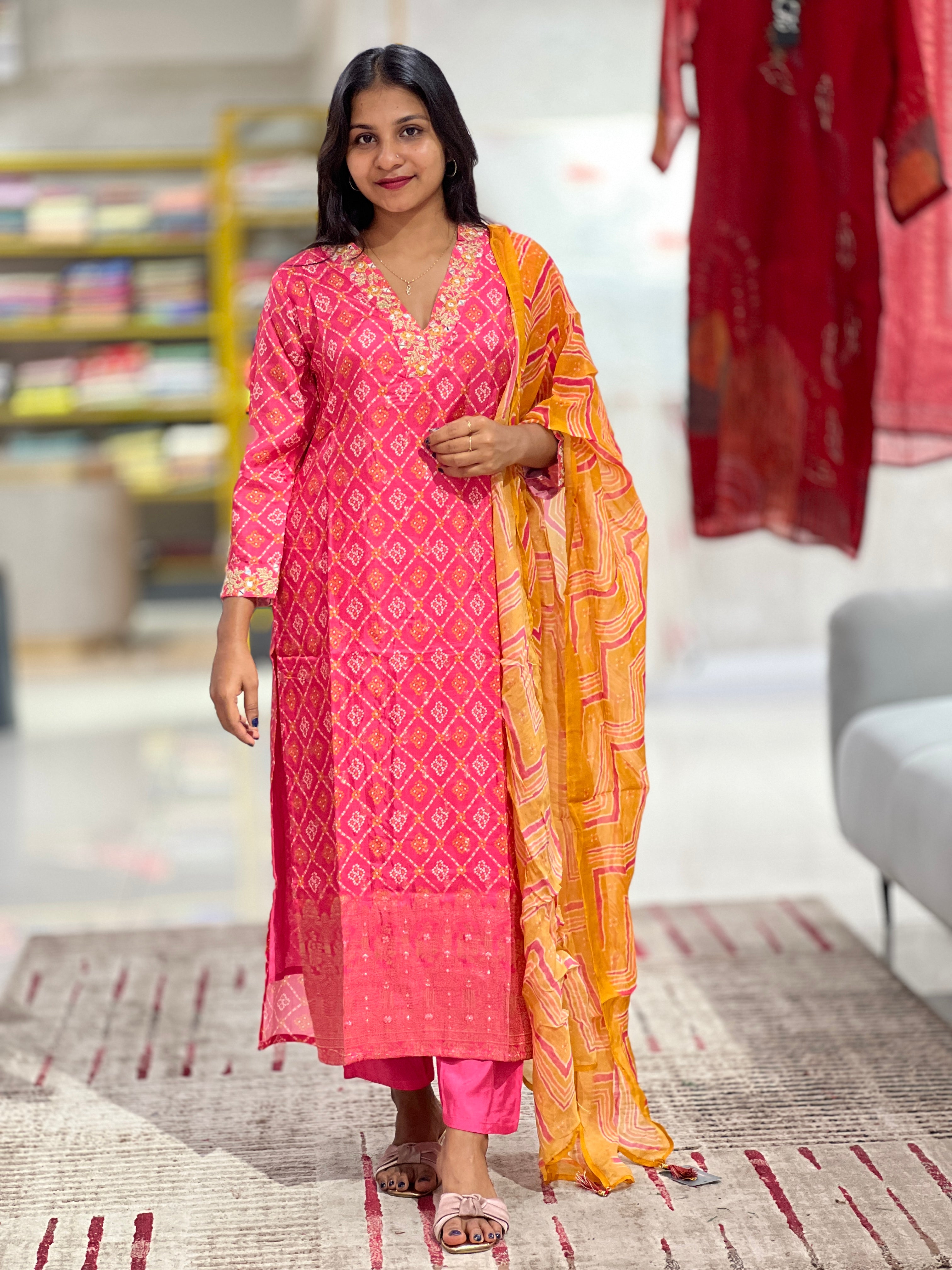 - Style: Side Slitted,Geometrical Printed Pattern ,Embroidery Highlighted