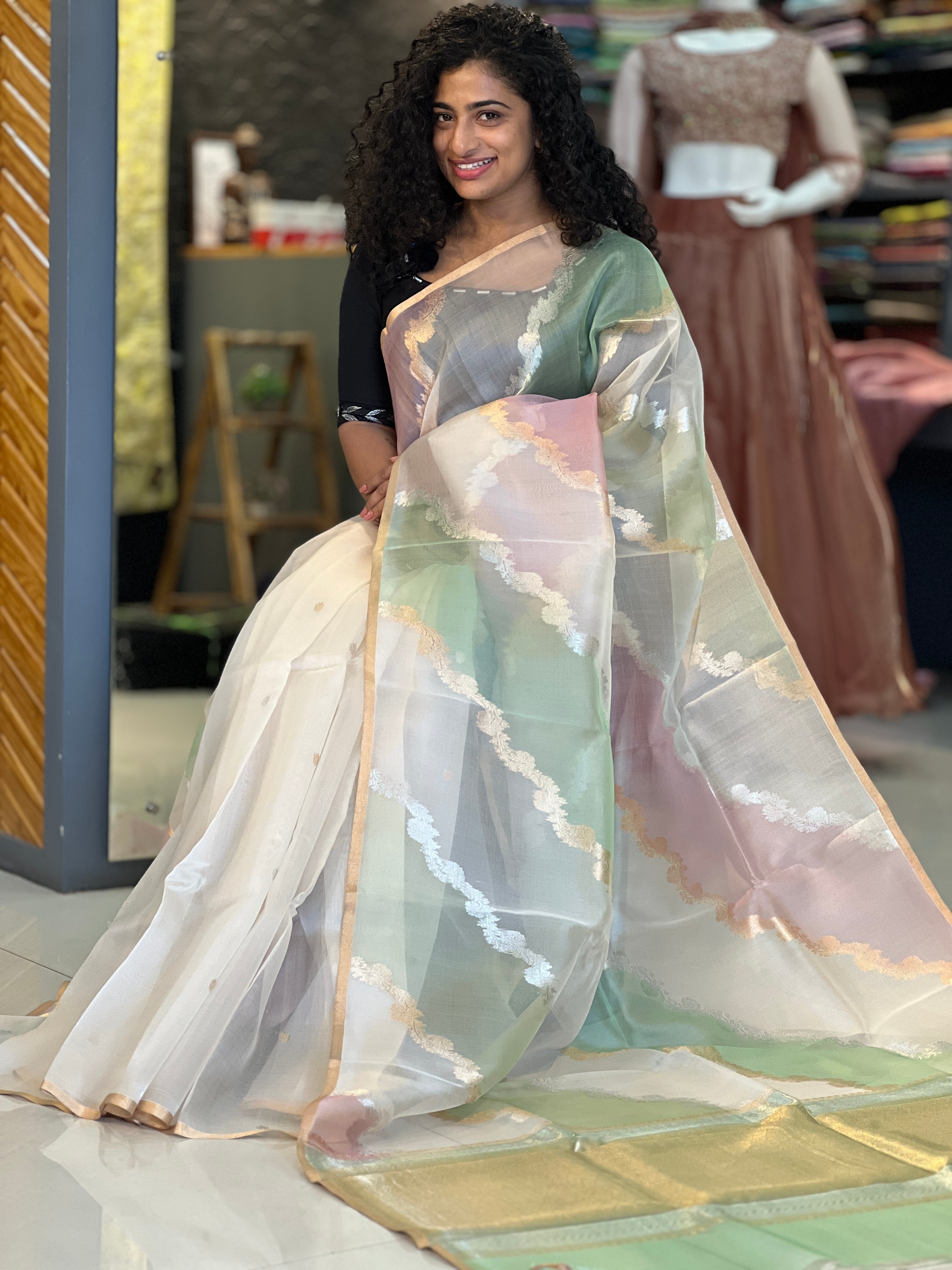 - Style: Golden & Sliver Zari Weaving ,Banarasi Weaved Border , Hand Woven , Jaal Pattern