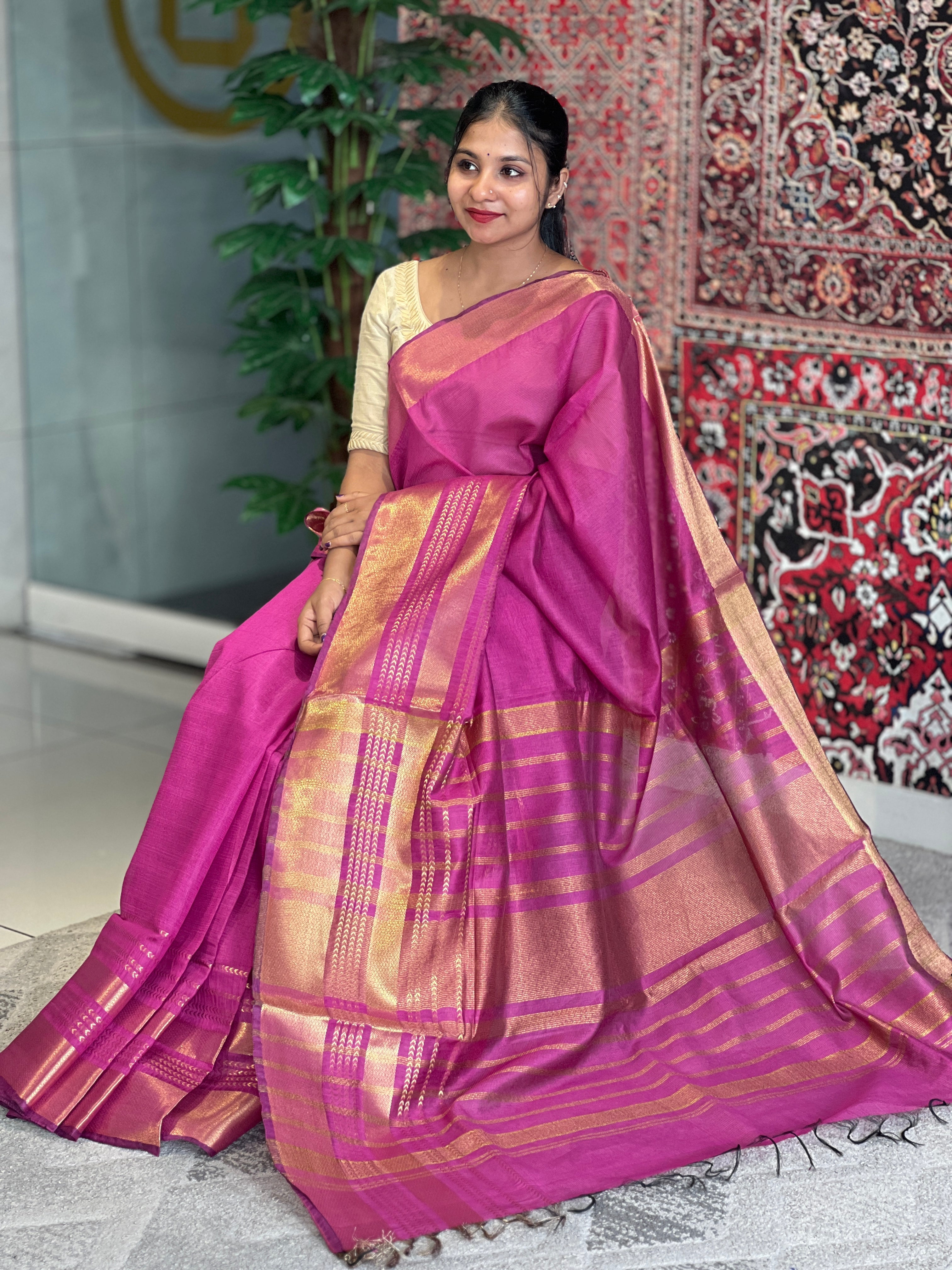 Golden Zari Detailed Bhagalpuri Linen Saree | NHH479