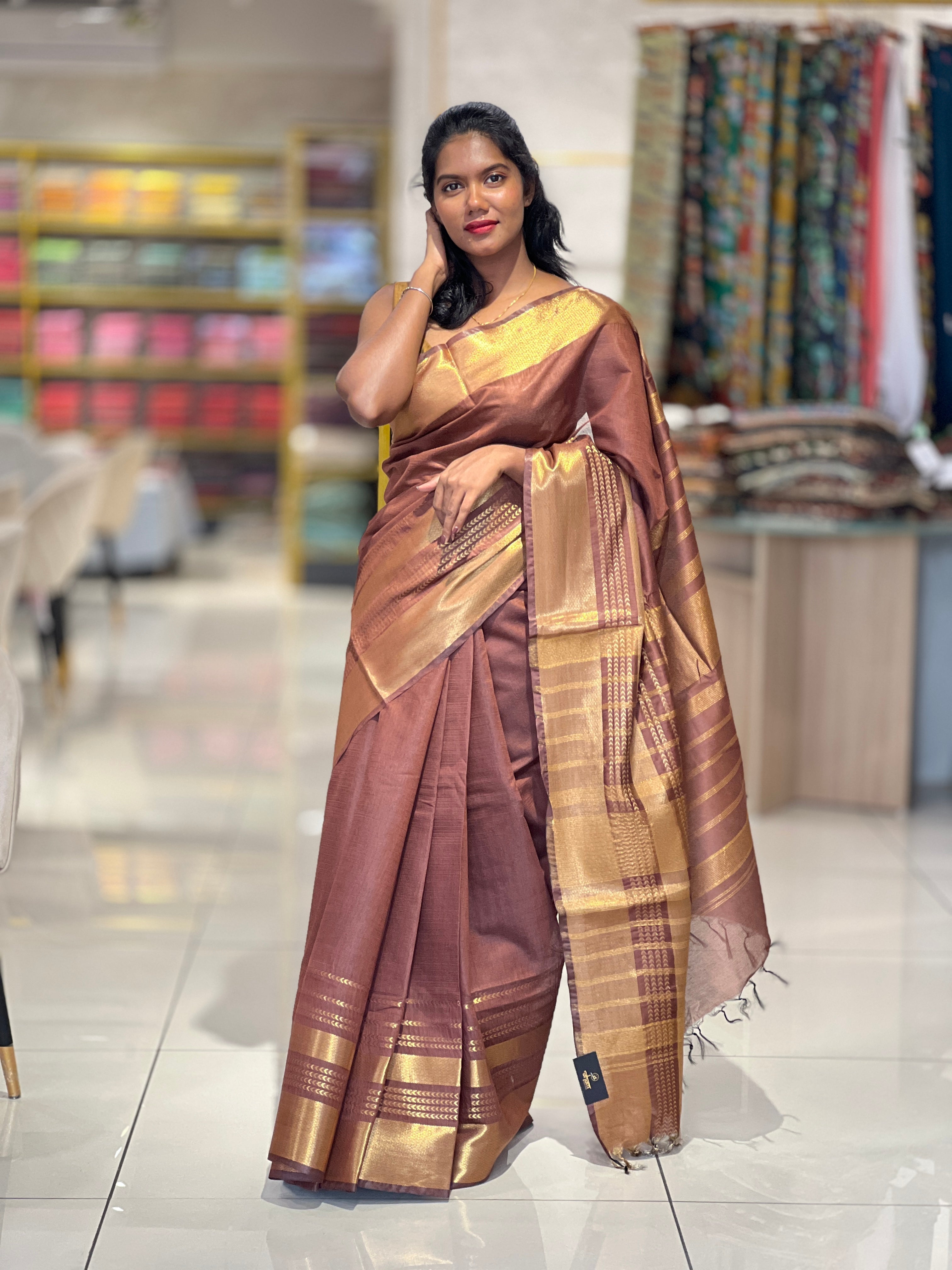 Golden Zari Detailed Bhagalpuri Linen Saree | NHH480