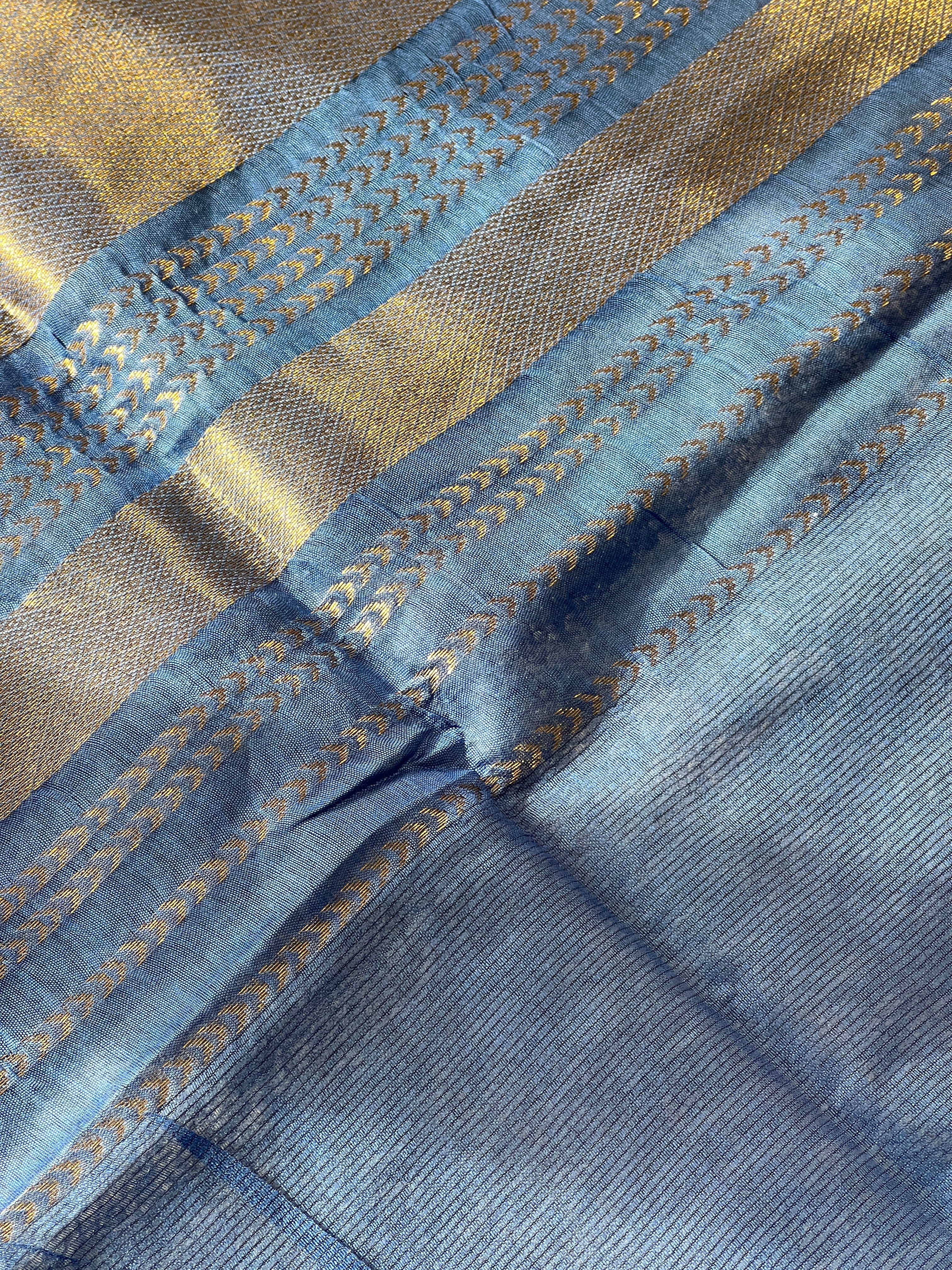 • Golden Zari Detailed Bhagalpuri Linen Saree | NHH482