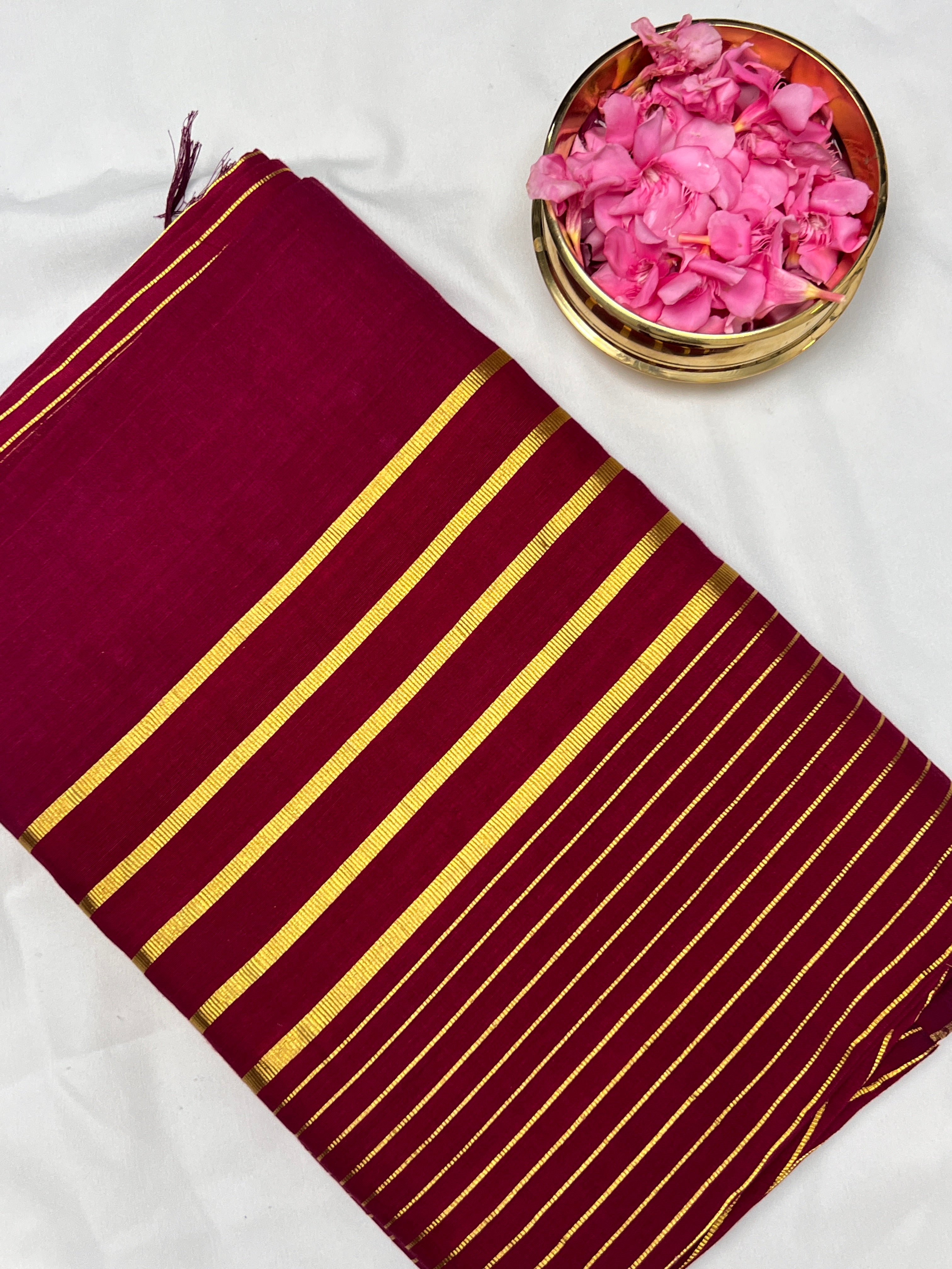 • Golden Zari Line Weaved Kerala Cotton Chendamangalam Weaved Saree | PH248