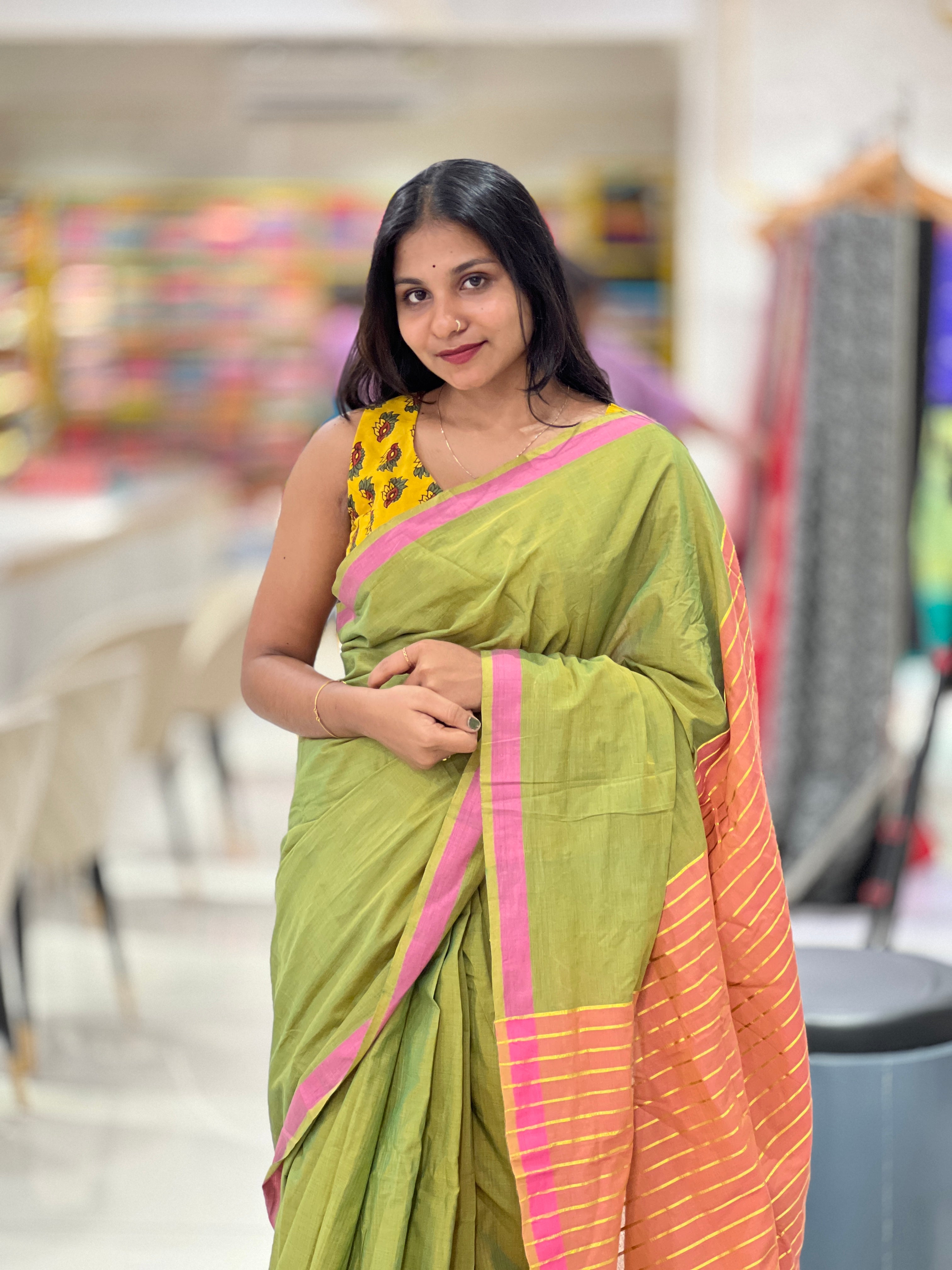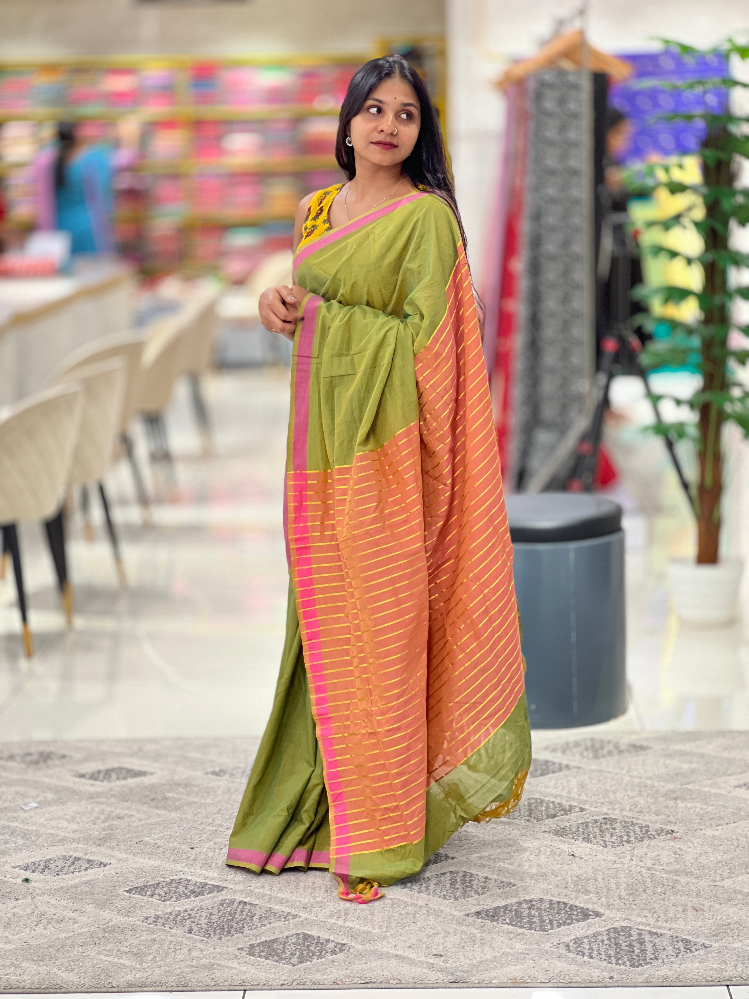 Golden Zari Stripe Detailed Cotton Saree | PH257