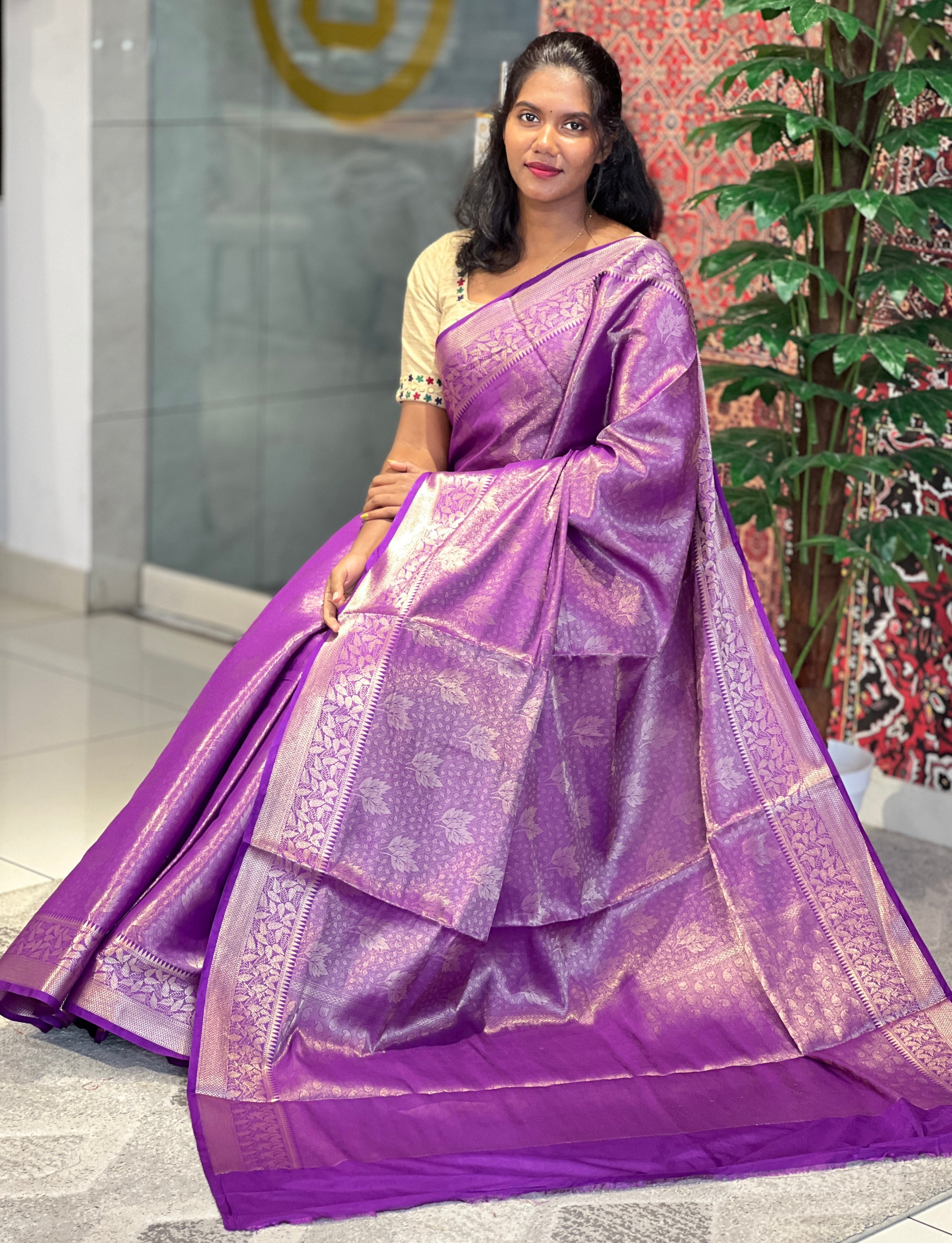 - Style: Golden Zari Woven, Brocade Leaf Pattern, Temple With Leaf & Zigzag Patterned Borders, Paisley Patterned Pallu