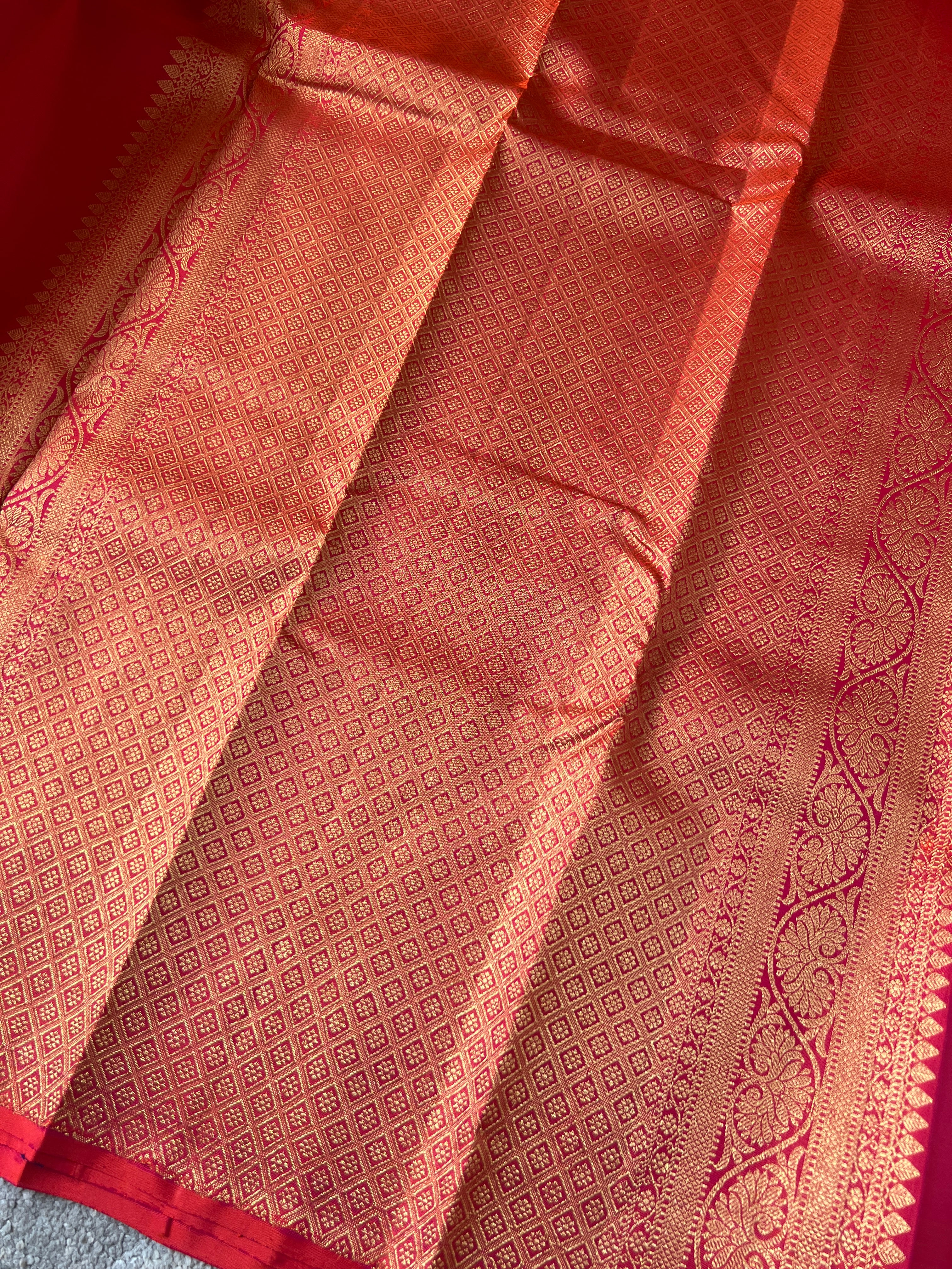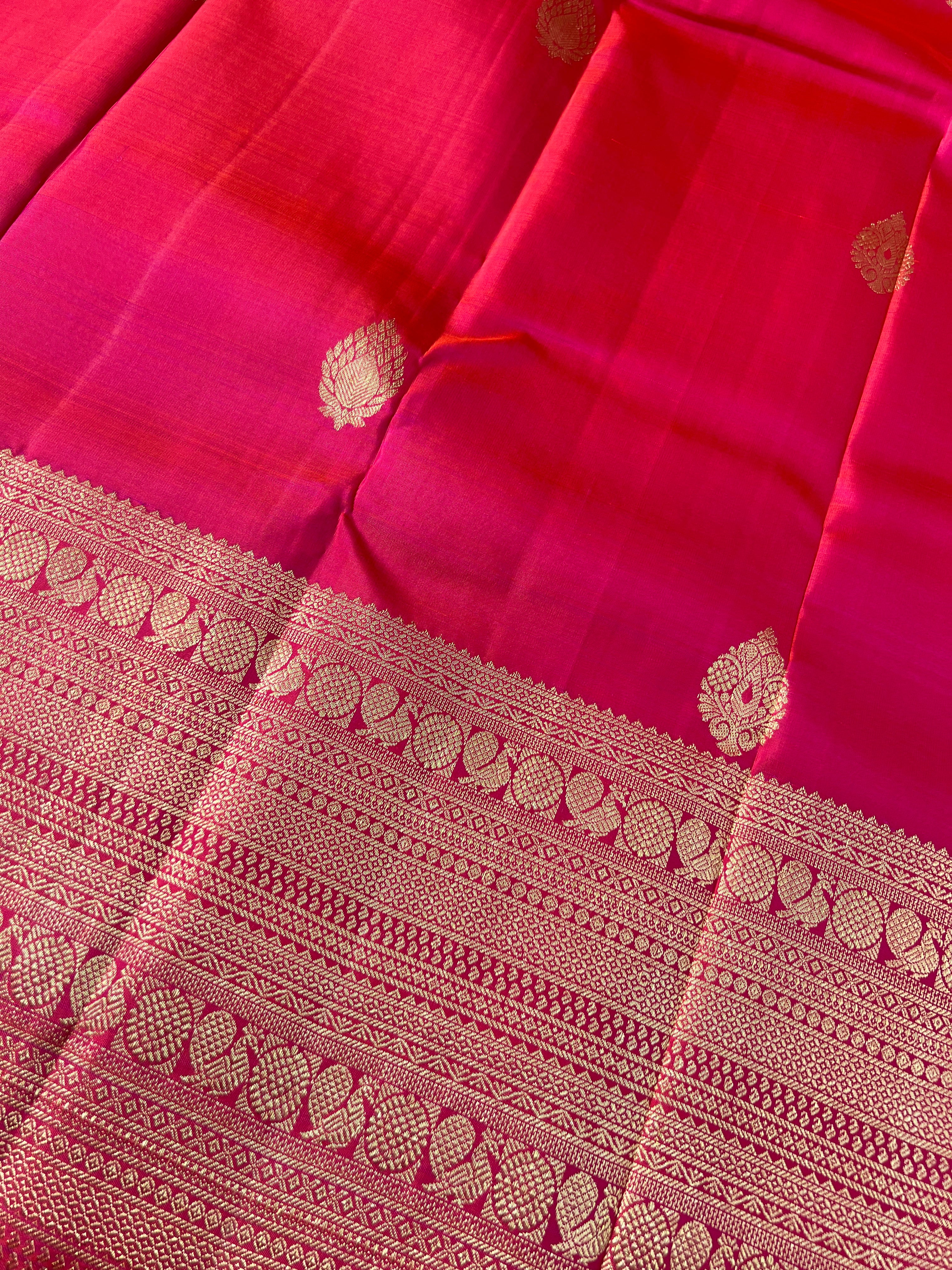 • Style: Golden Zari Woven, Handloom, Traditional Buta Weaved, Traditional Border Detailing, Diamond Patterned Pallu
