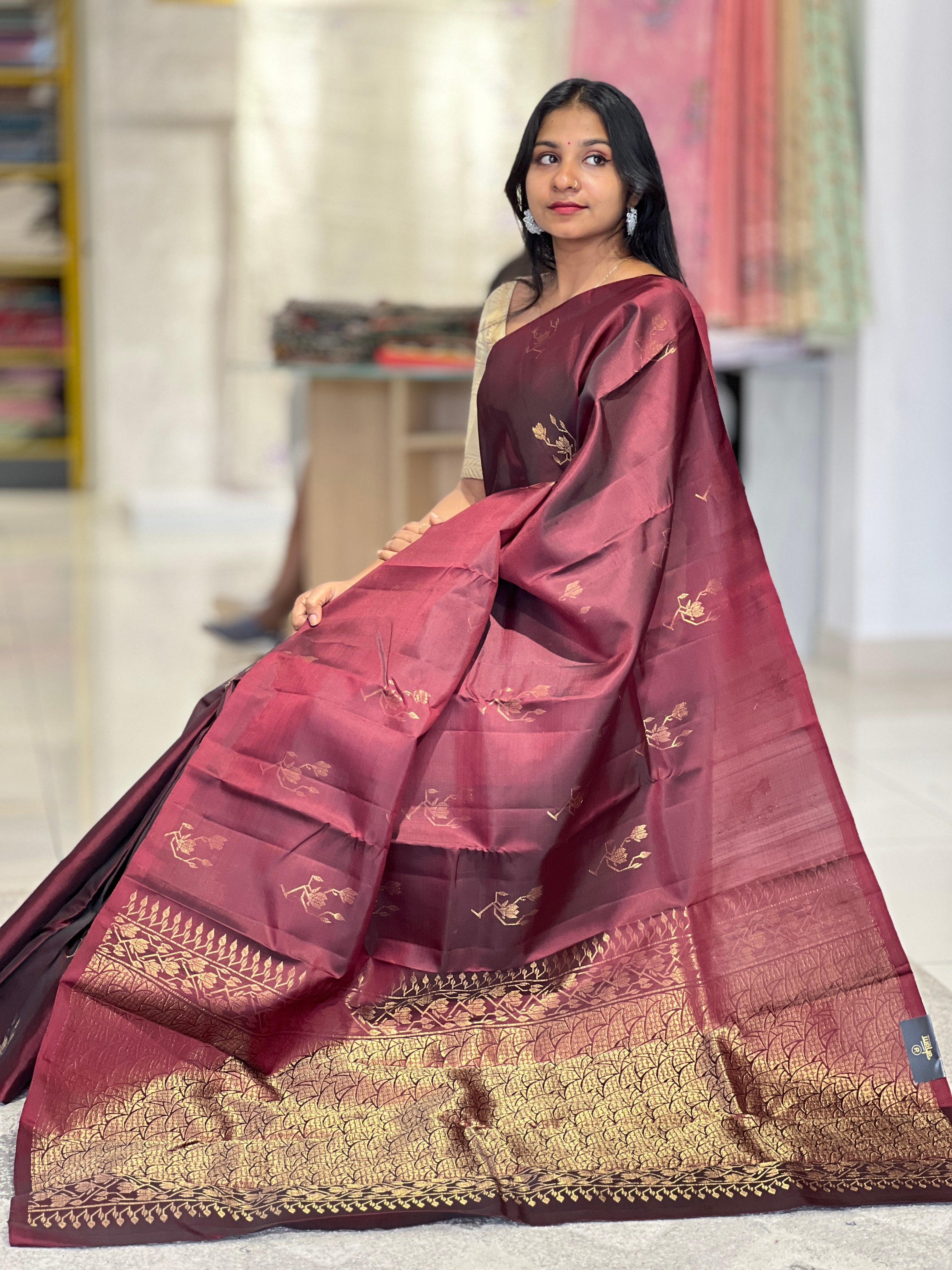 - Style: Golden Zari Weaving, Geometrical-Floral Pattern, Brocade Patterned Pallu
