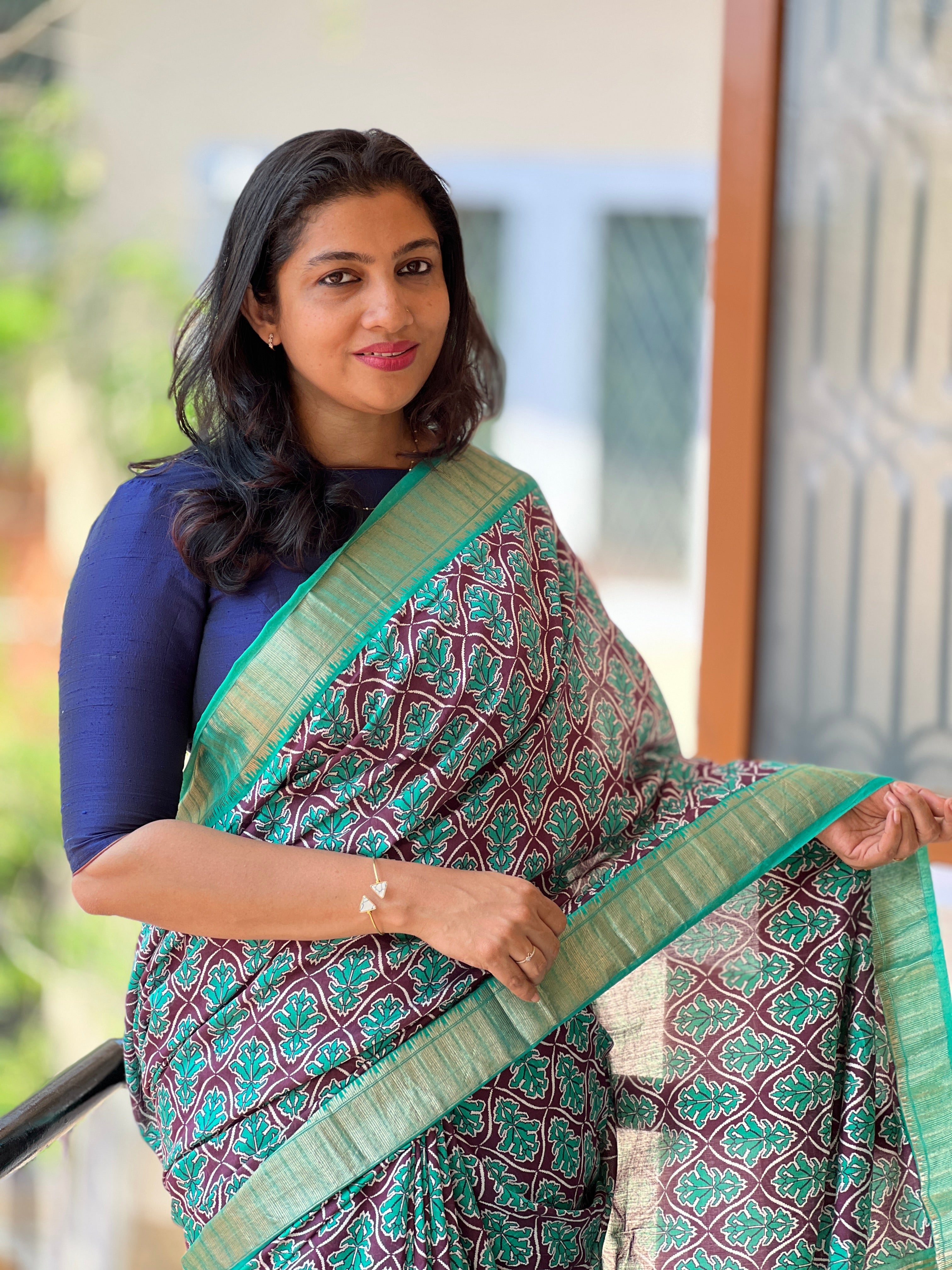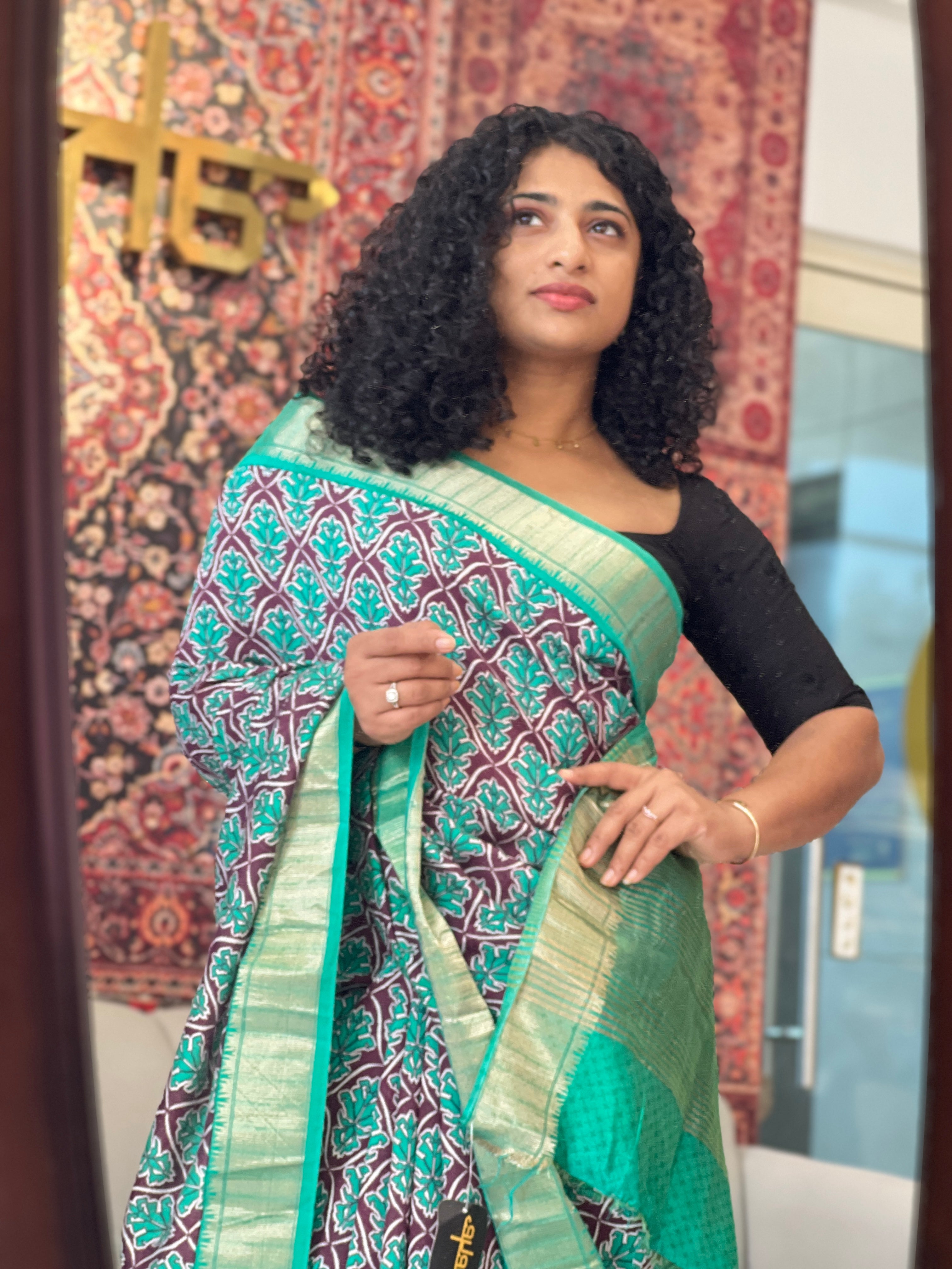 - Style: Ikkat Print Design; Banarasi Weave Border Pattern