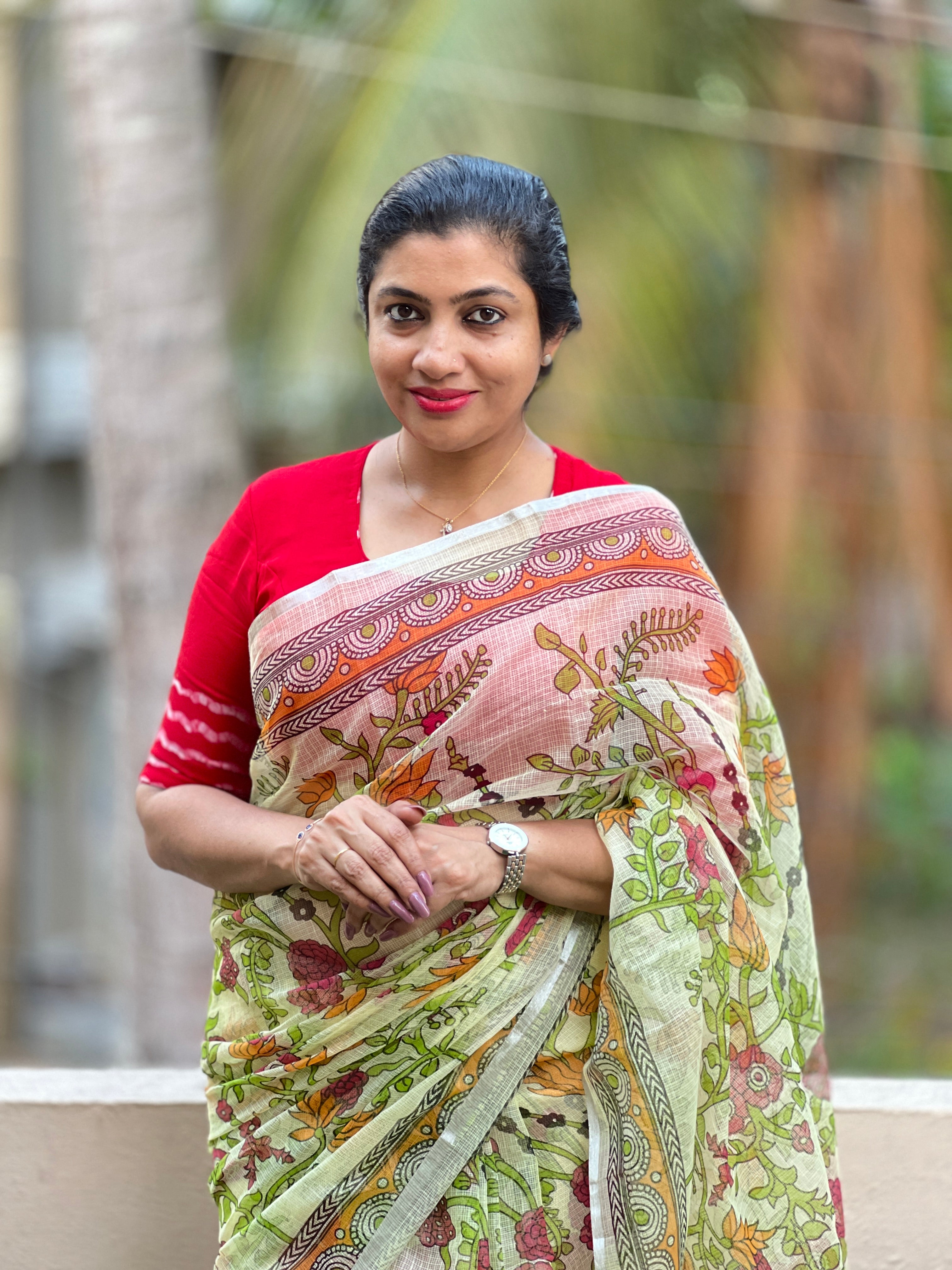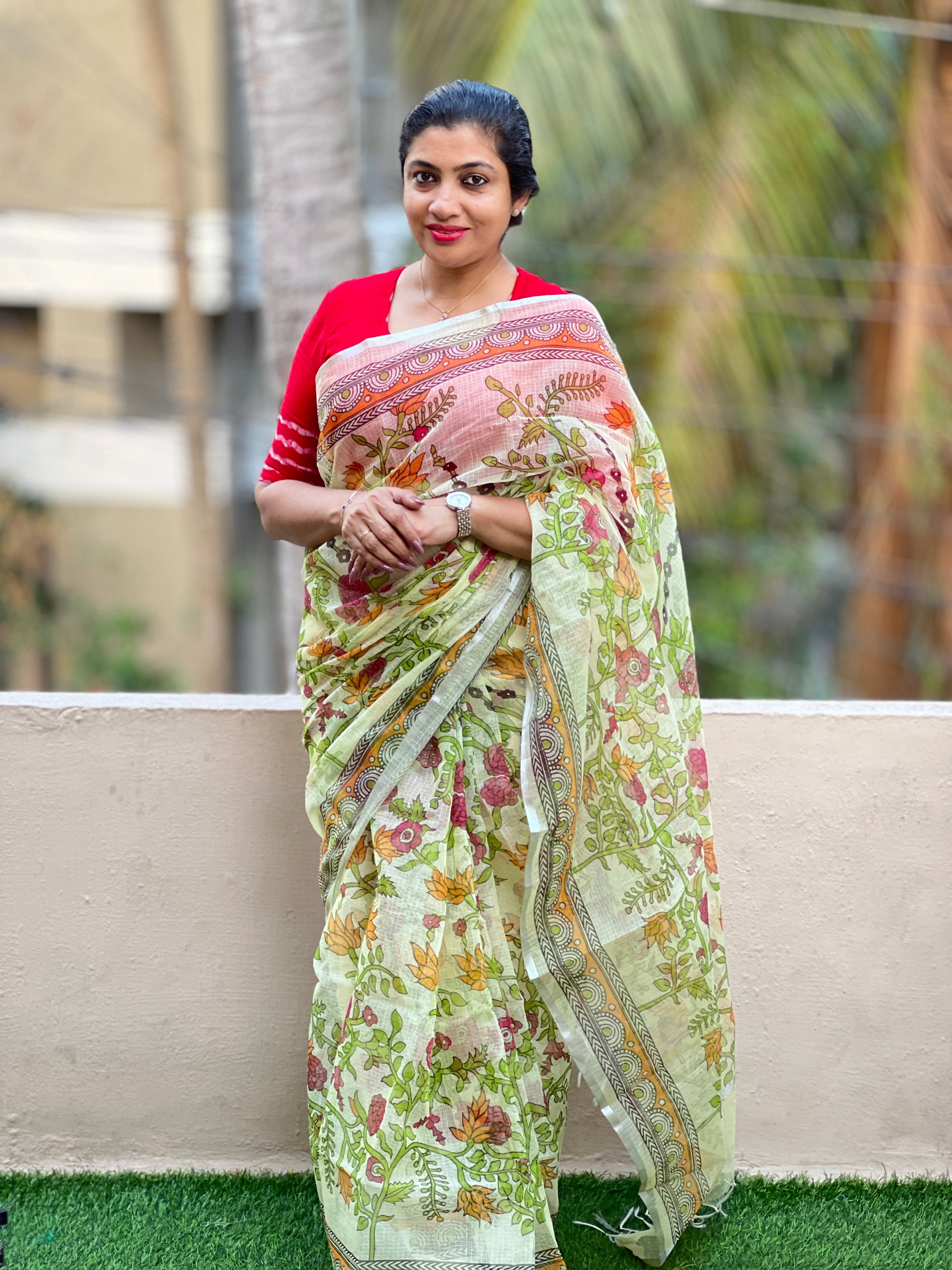 - Style: Kalamkari Screen Printed With Silver Zari Border