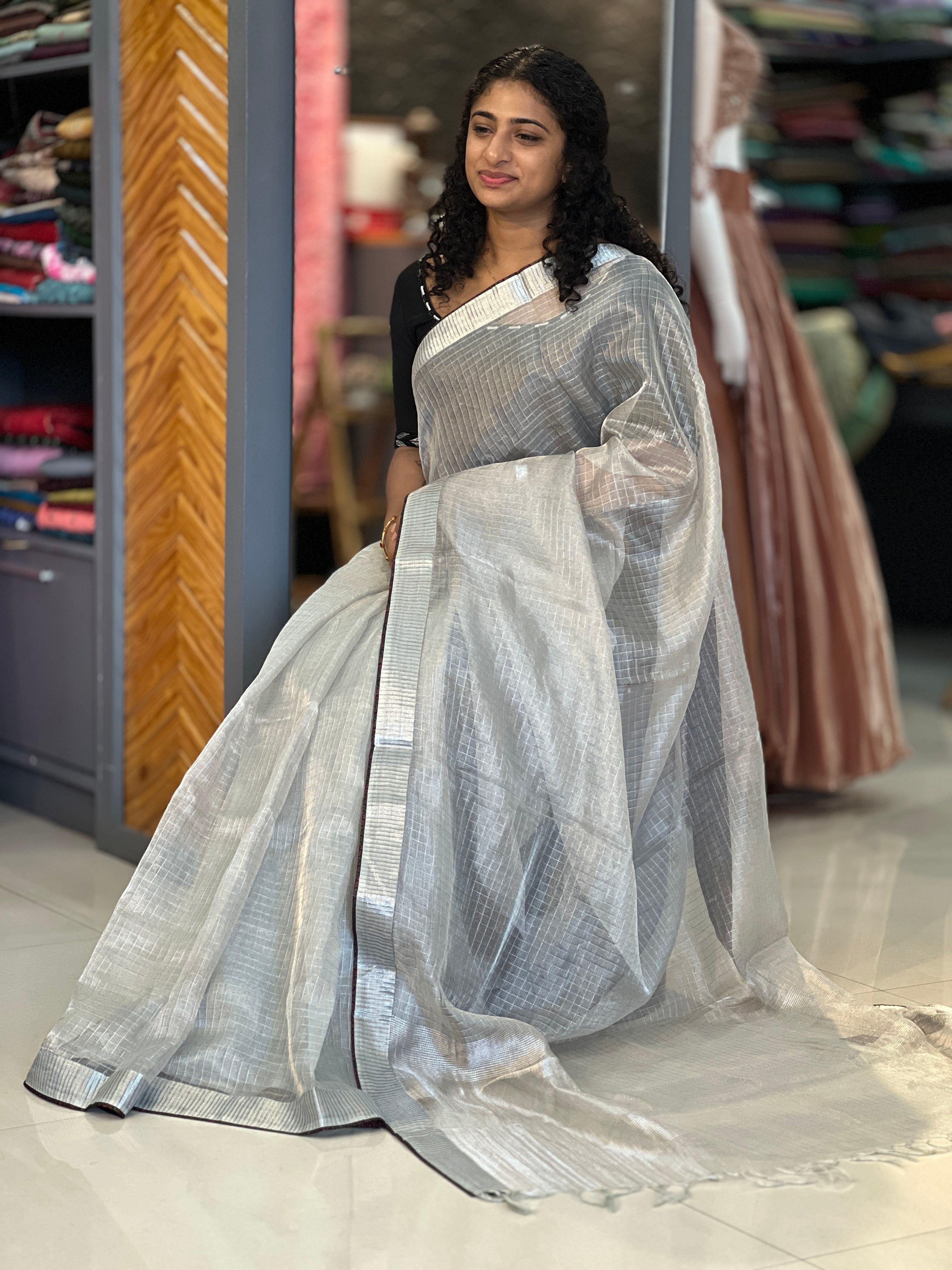 - Style: Tissue Check Weaving Pattern, Banarasi Border