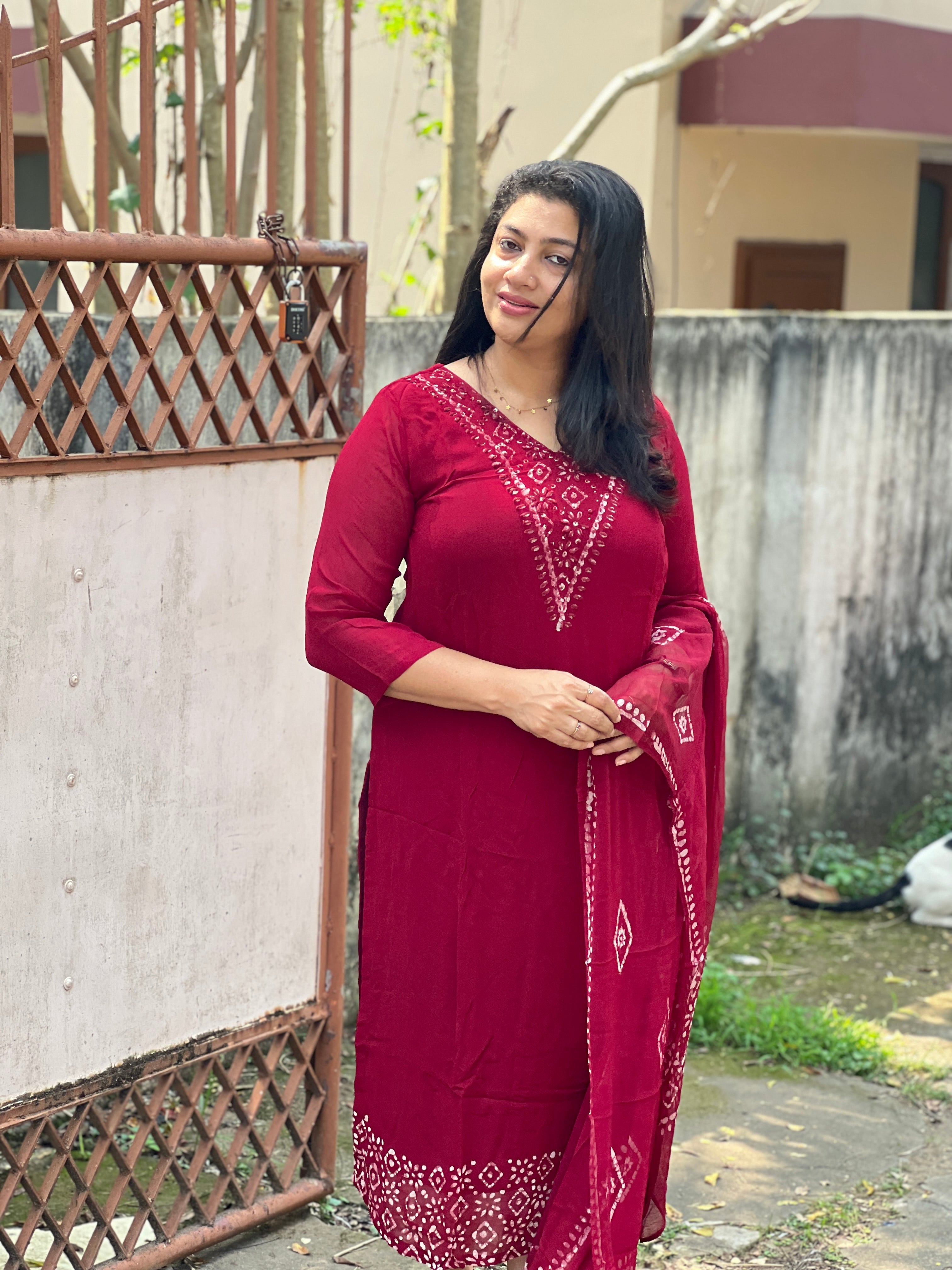 - Style: Hand Batik Printed, Embroidered Yoke, Sleeves Without Lining