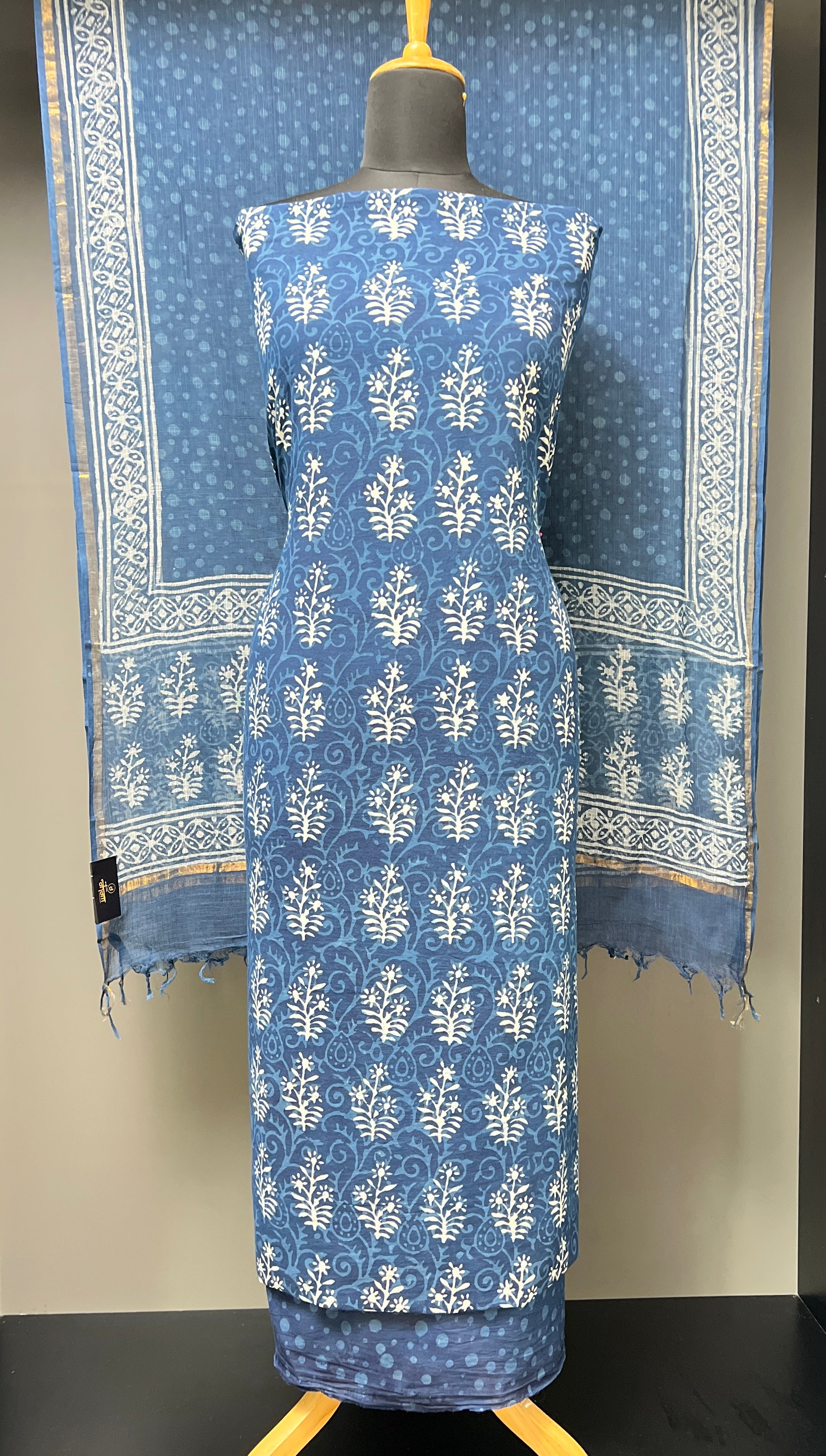 - Style: Hand Block Printed, Polka Dot Detailing, Zari Weaved Border, Self Tassels Detailing
