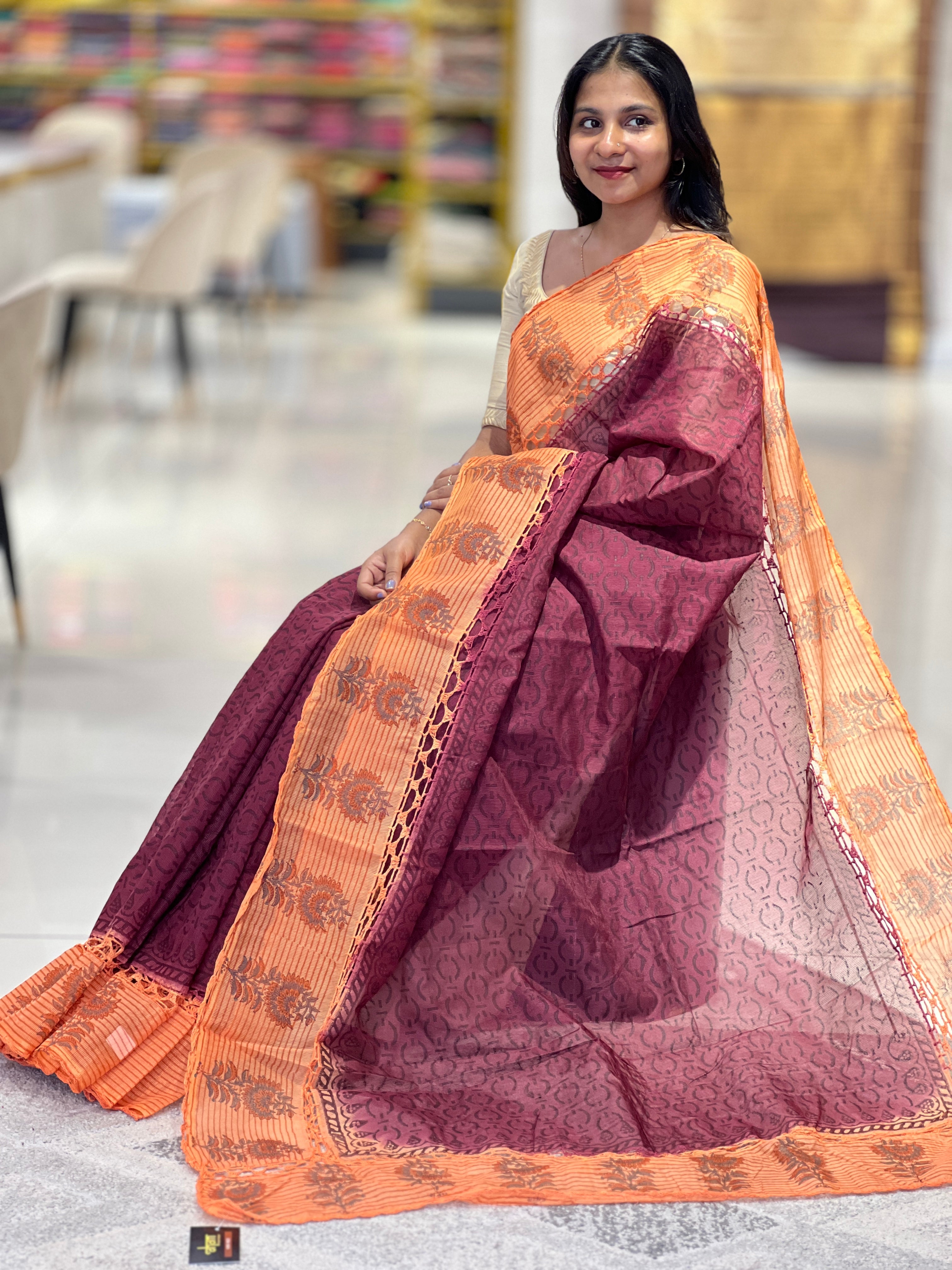 Hand Block Printed Supernet Kota Saree | PF1053 Hand Block Printed Supernet Kota Saree | PF1053 Hand Block Printed Supernet Kota Saree | PF1053