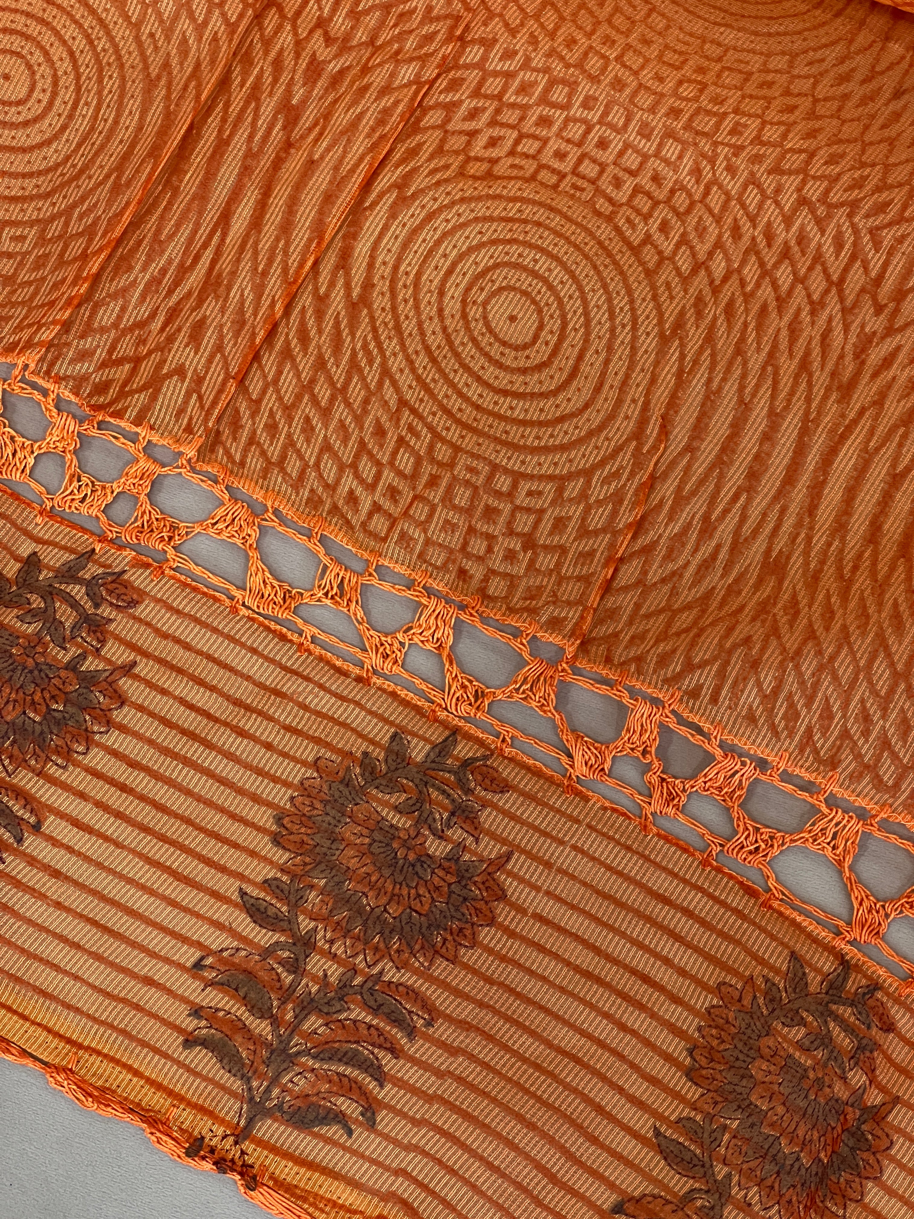 • Style: Hand Block Printed, Hand Crochet Lace Detailing, Contrast Border With Floral Buta, Geometric Pattern