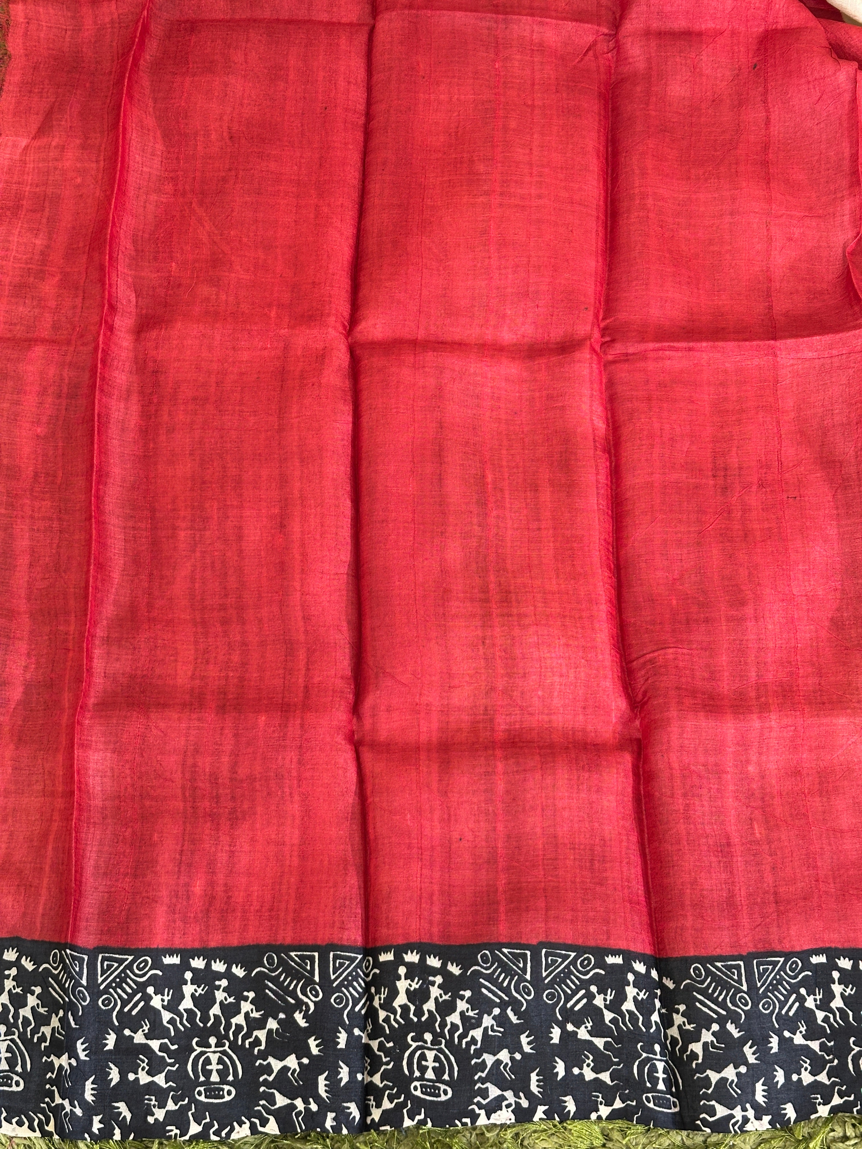 - Style: Hand Block Print Detailing, Warli Pattern, Temple Borders, Double Temple Border Detailed Lower Pleated Portion, Contrast Pallu