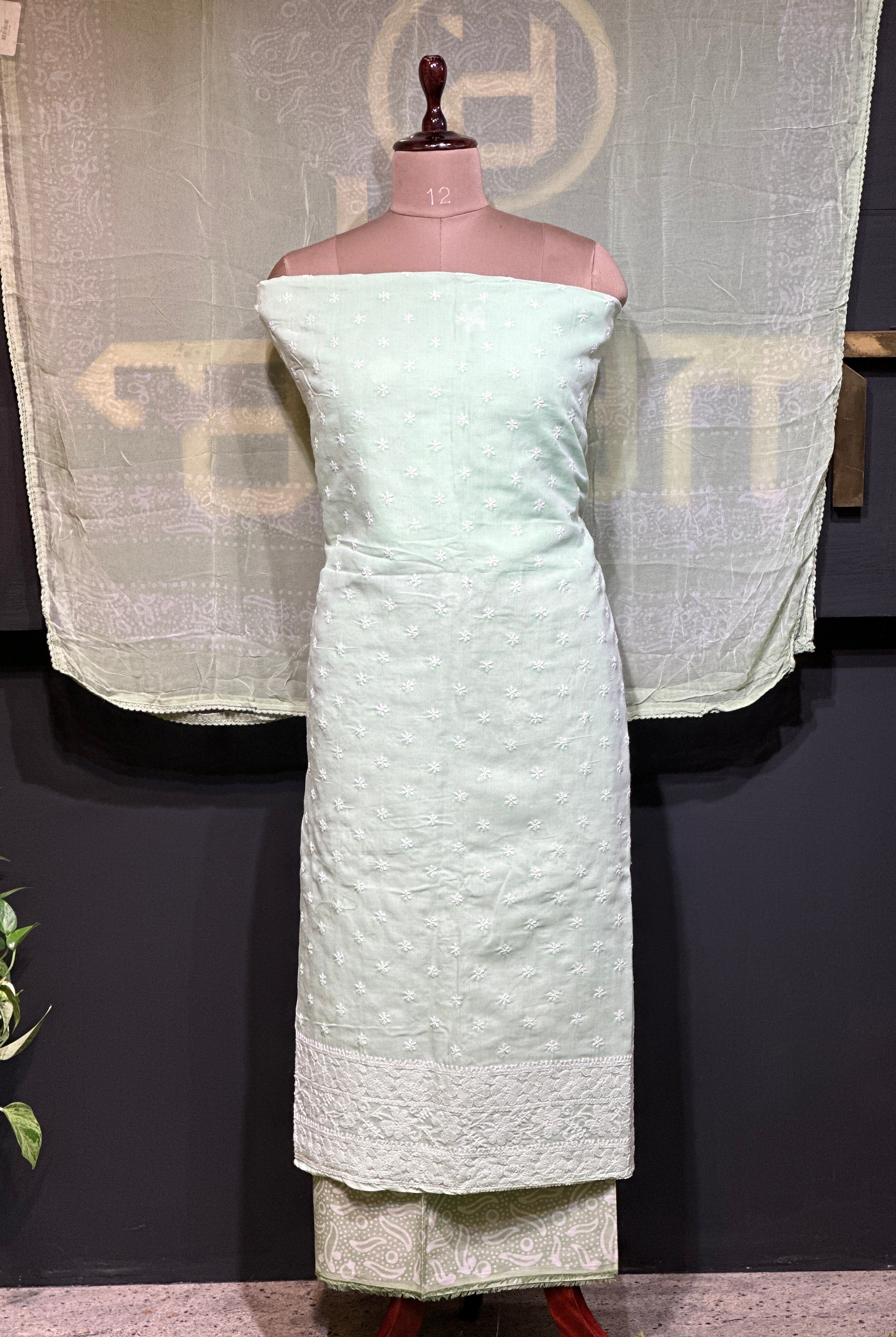 •  Style: Scattered Embroidery Butta, Hand Chikankari Detailed Lower Borders