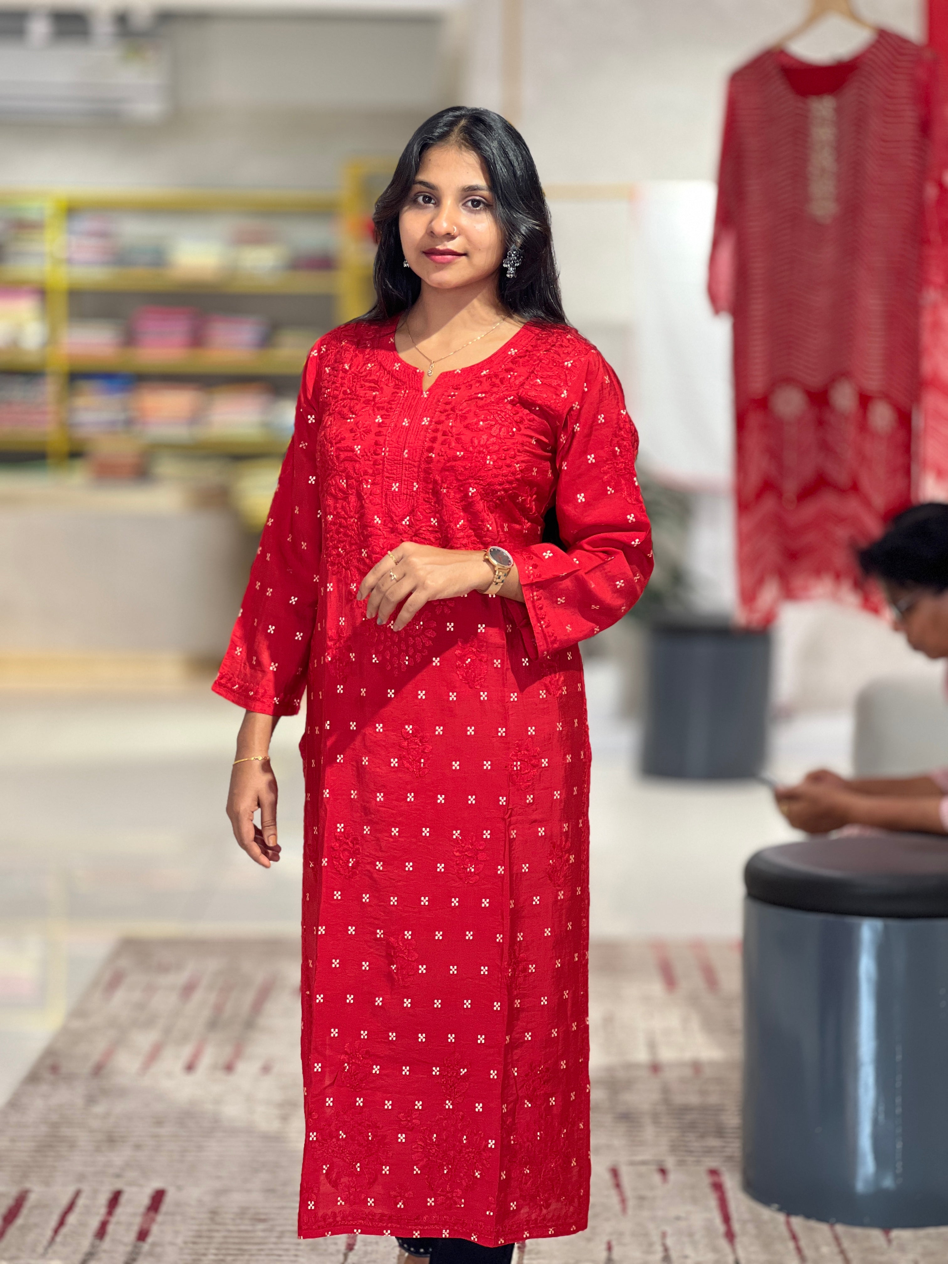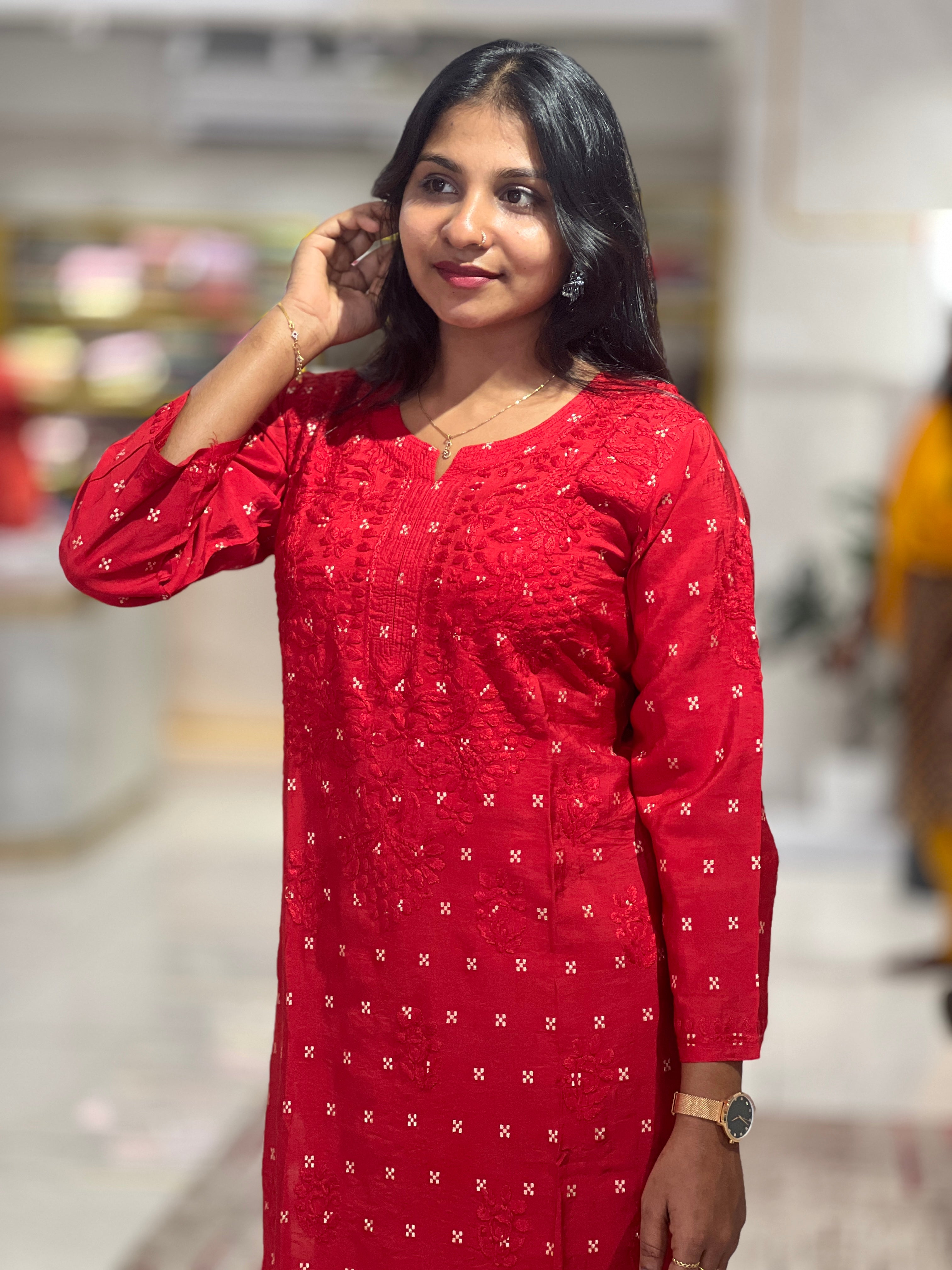 Hand Chikankari Chanderi Finish Kurta | SRC160