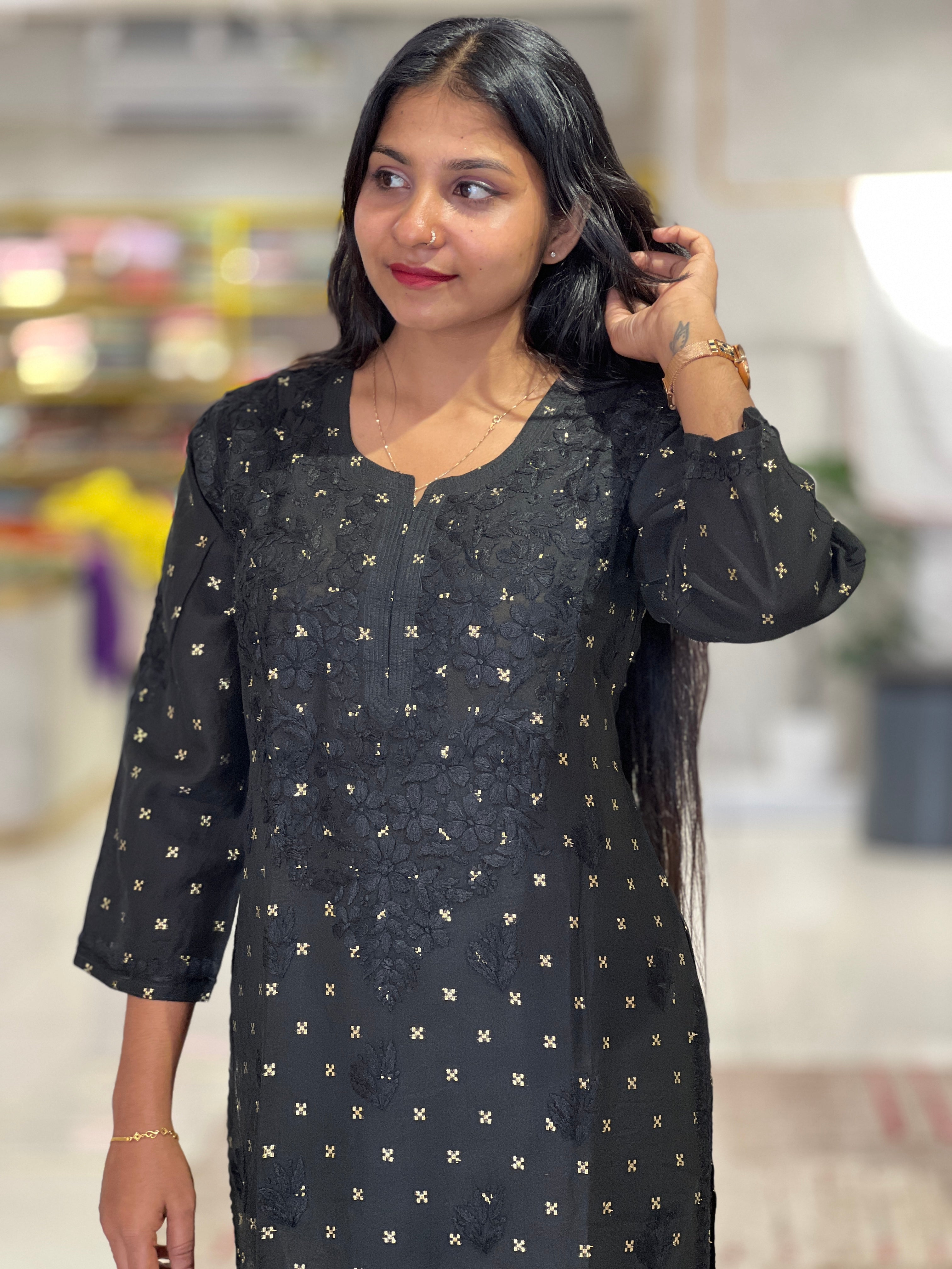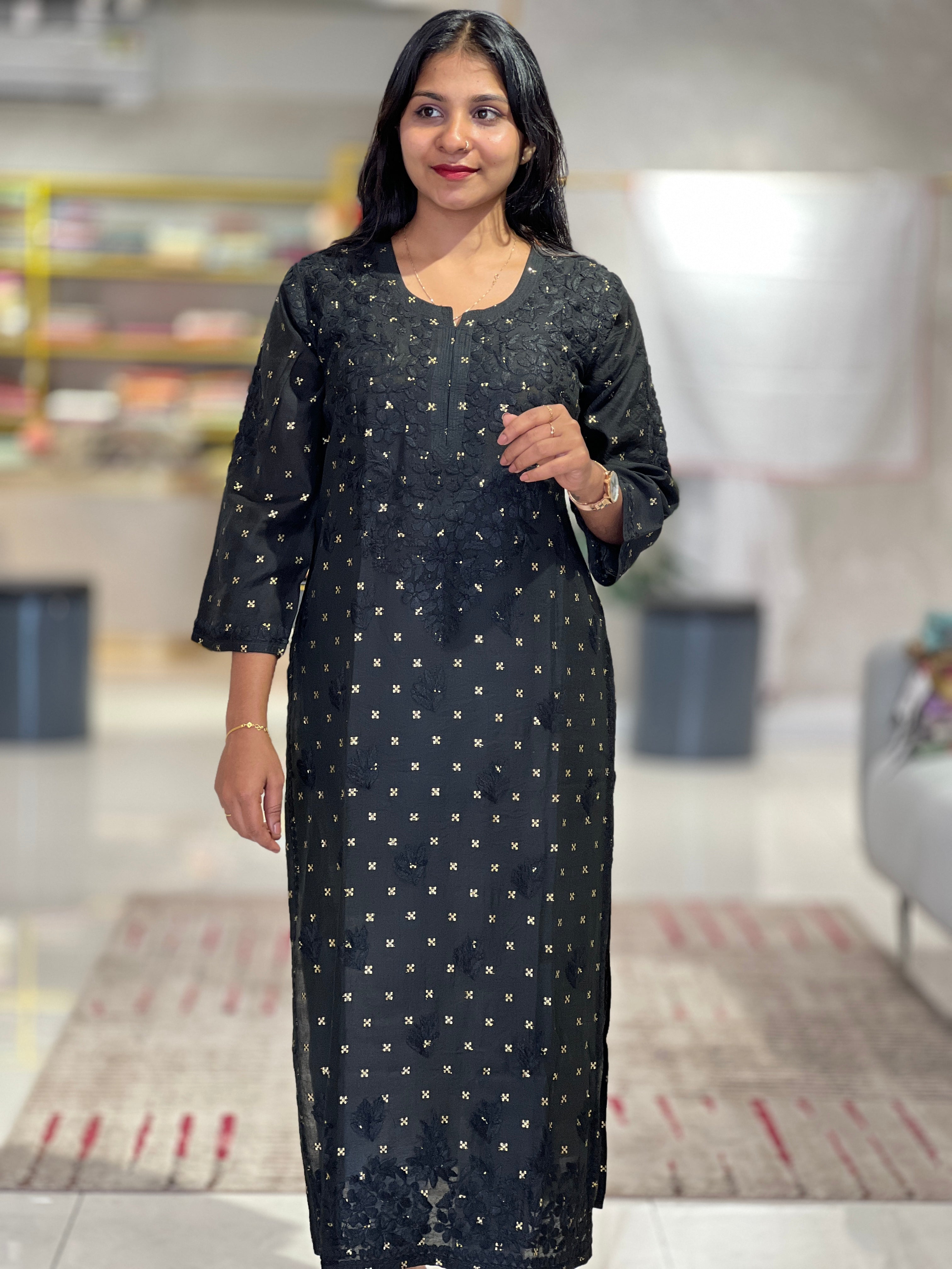 - Style: Hand Chikankari , Banarasi Weaving Pattern,Side Slitted( With Out Lining )