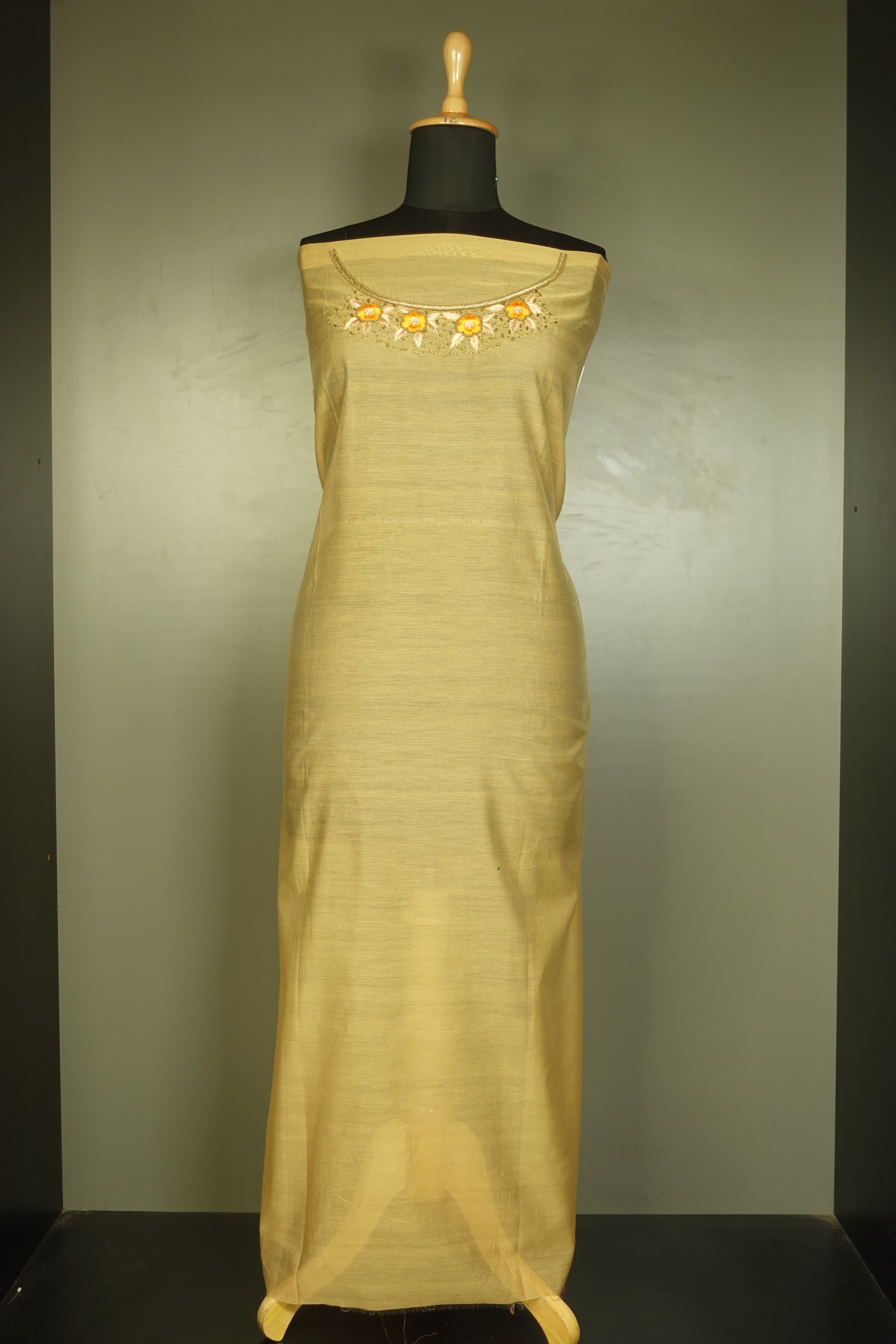 Hand Embroidered Chanderi Kurta Material | AHD1275