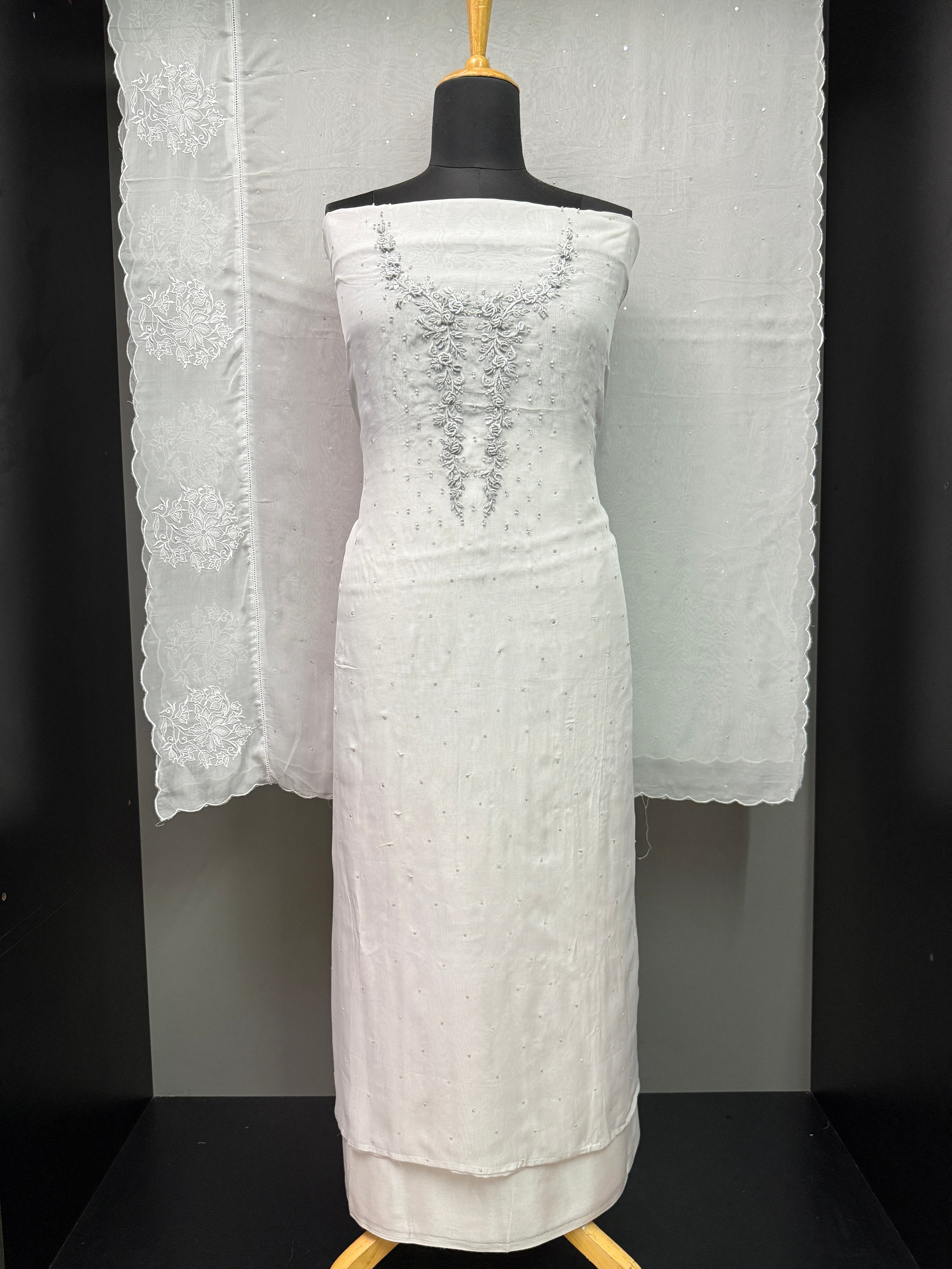 Hand Embroidered Viscose Silk Organza Salwar Set | PHU154