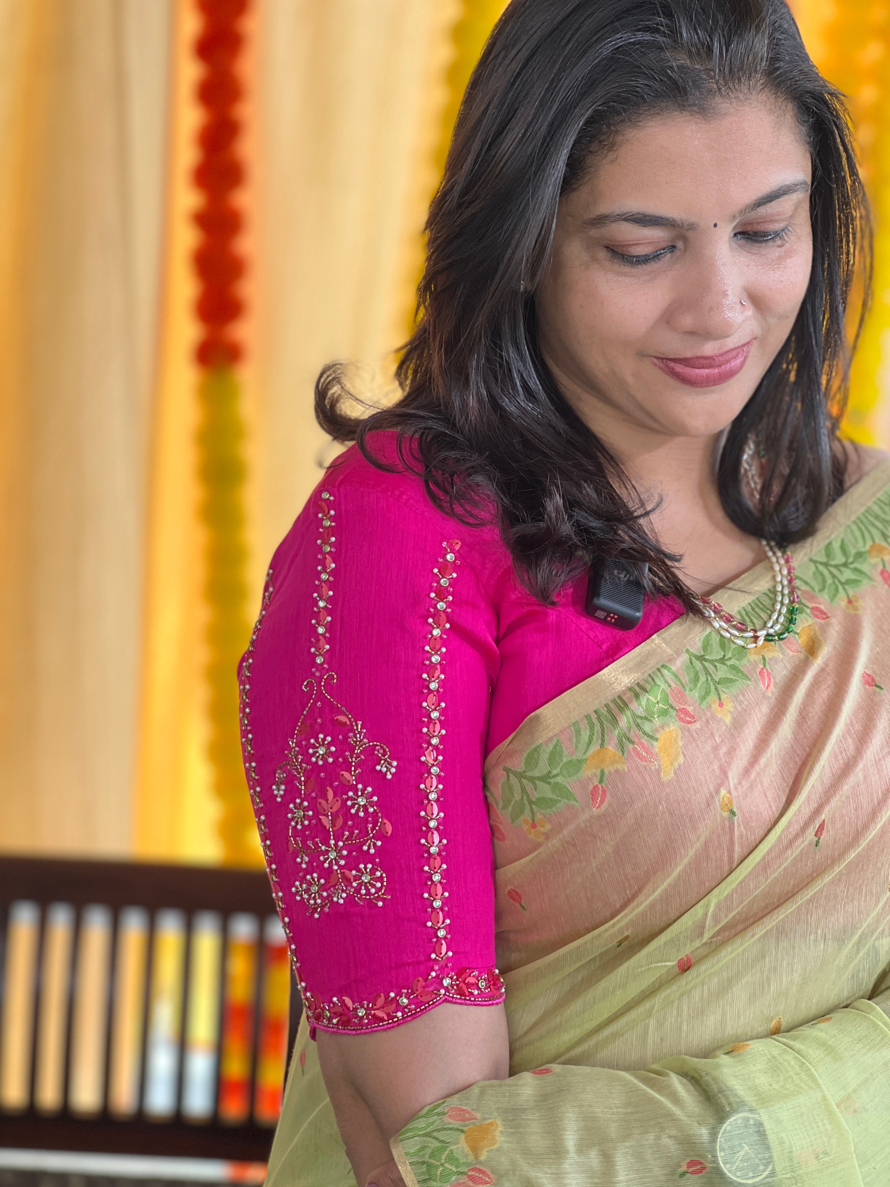 - Style: Hand Embroidery Detailing For Sleeves, With Cut Beads, Sequence & Beads Work