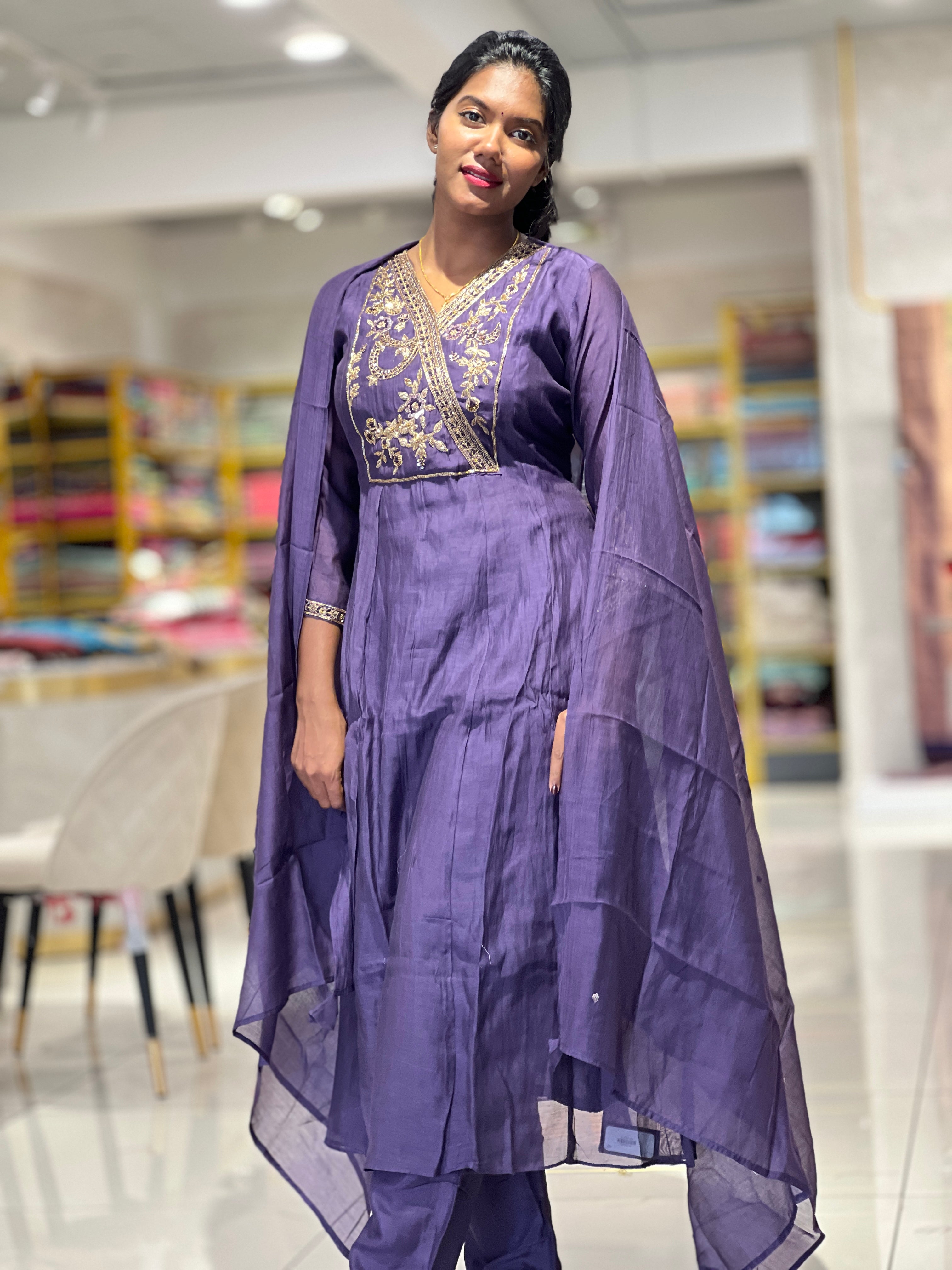Hand Embroidery Detailed Chanderi Finish Kurta Set | KIA115 Hand Embroidery Detailed Chanderi Finish Kurta Set | KIA115 Hand Embroidery Detailed Chanderi Finish Kurta Set | KIA115