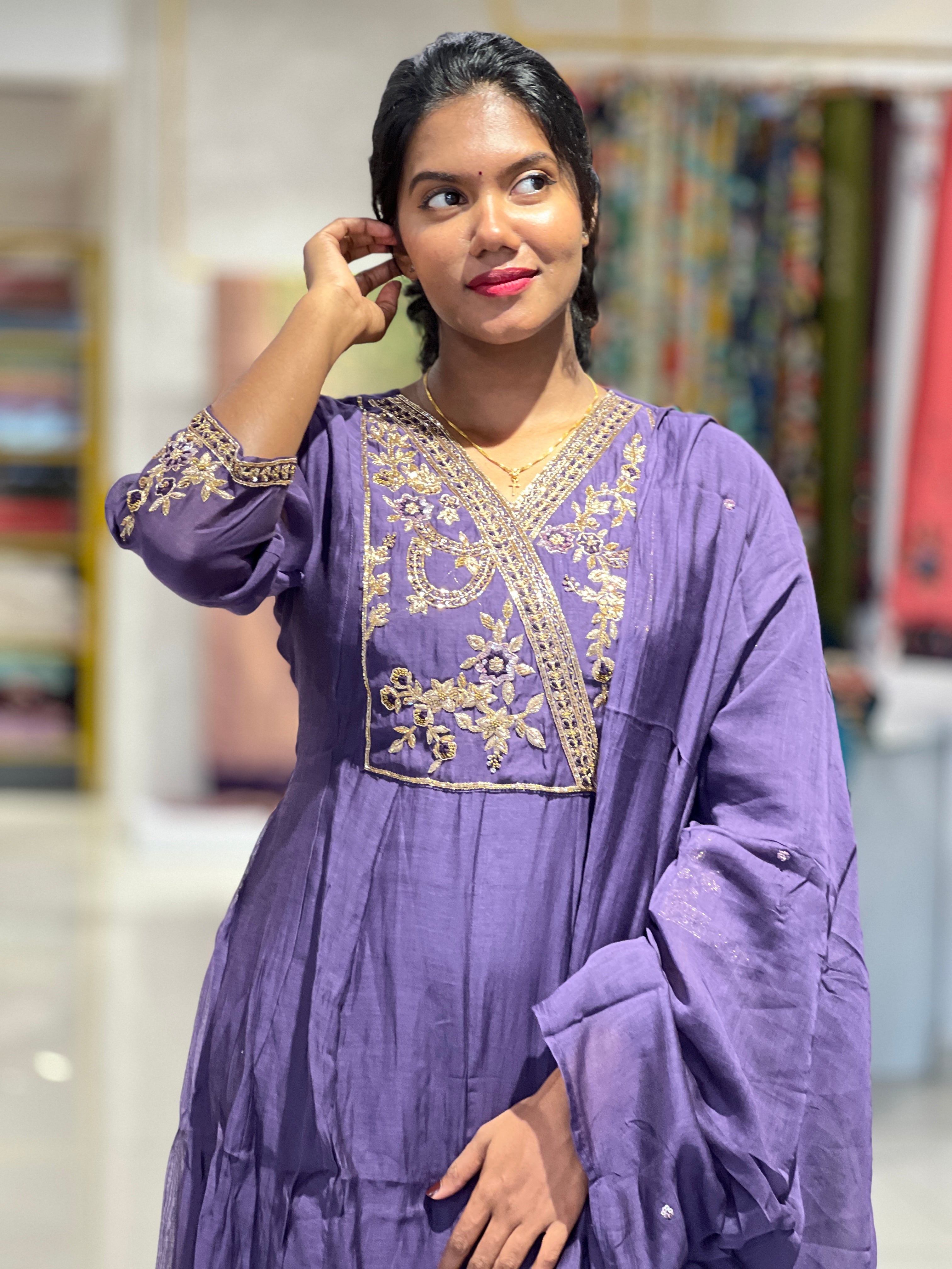 • Hand Embroidery Detailed Chanderi Finish Kurta Set | KIA115