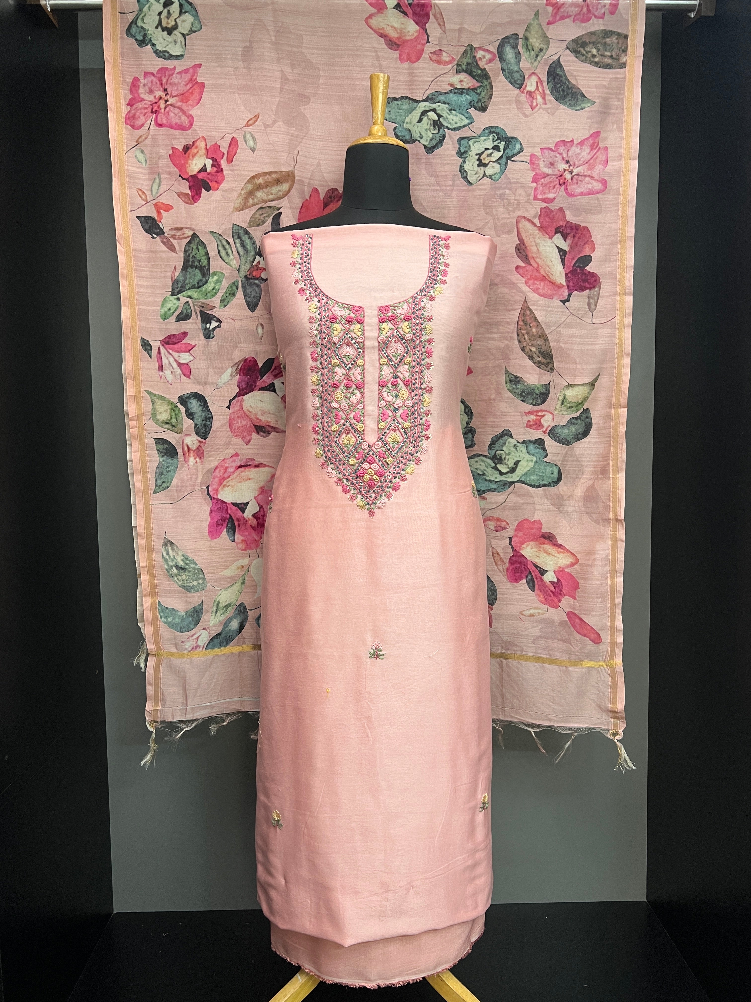 • Hand Embroidery Detailed Chanderi Salwar Set | MM316