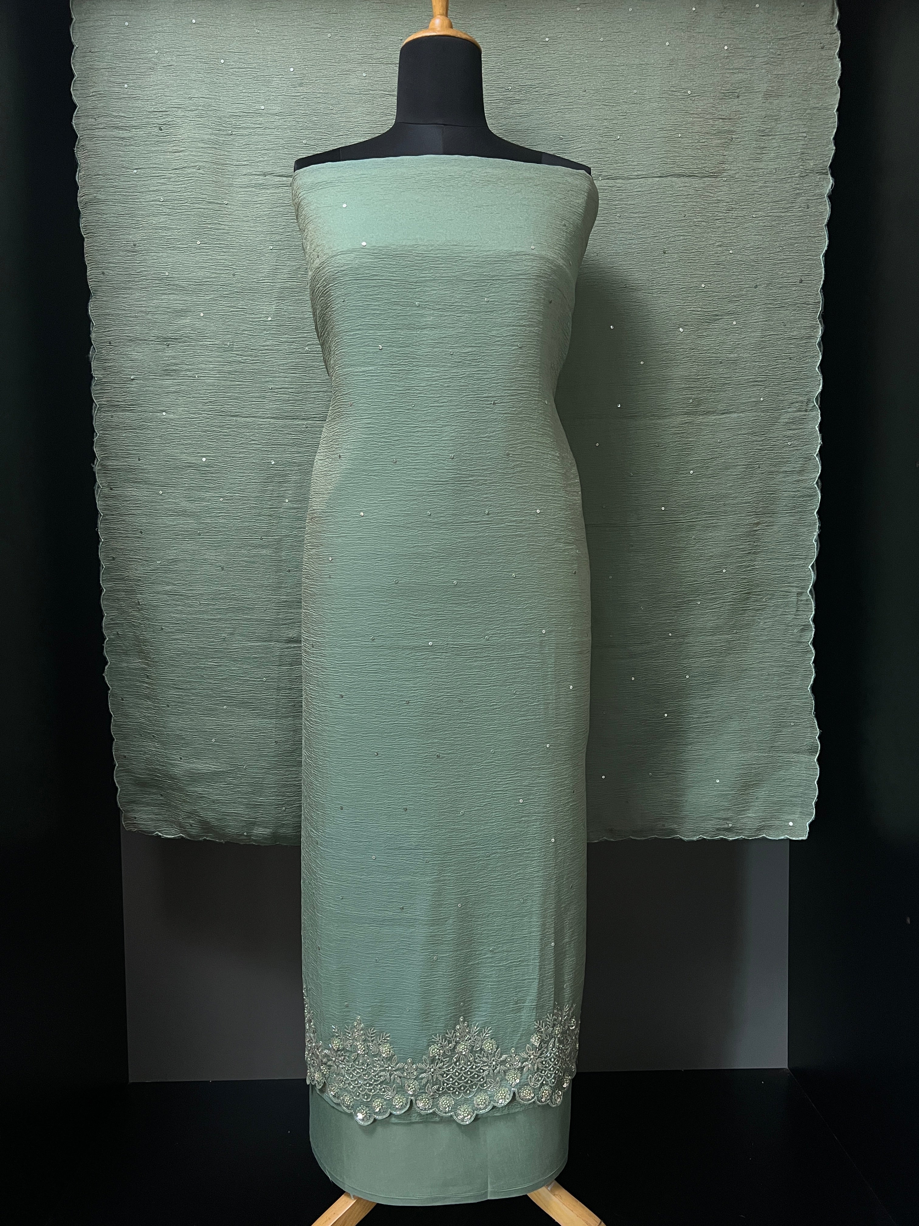 • Hand Embroidery Detailed Crushed Shimmer Silk Organza Salwar Set | SBP927