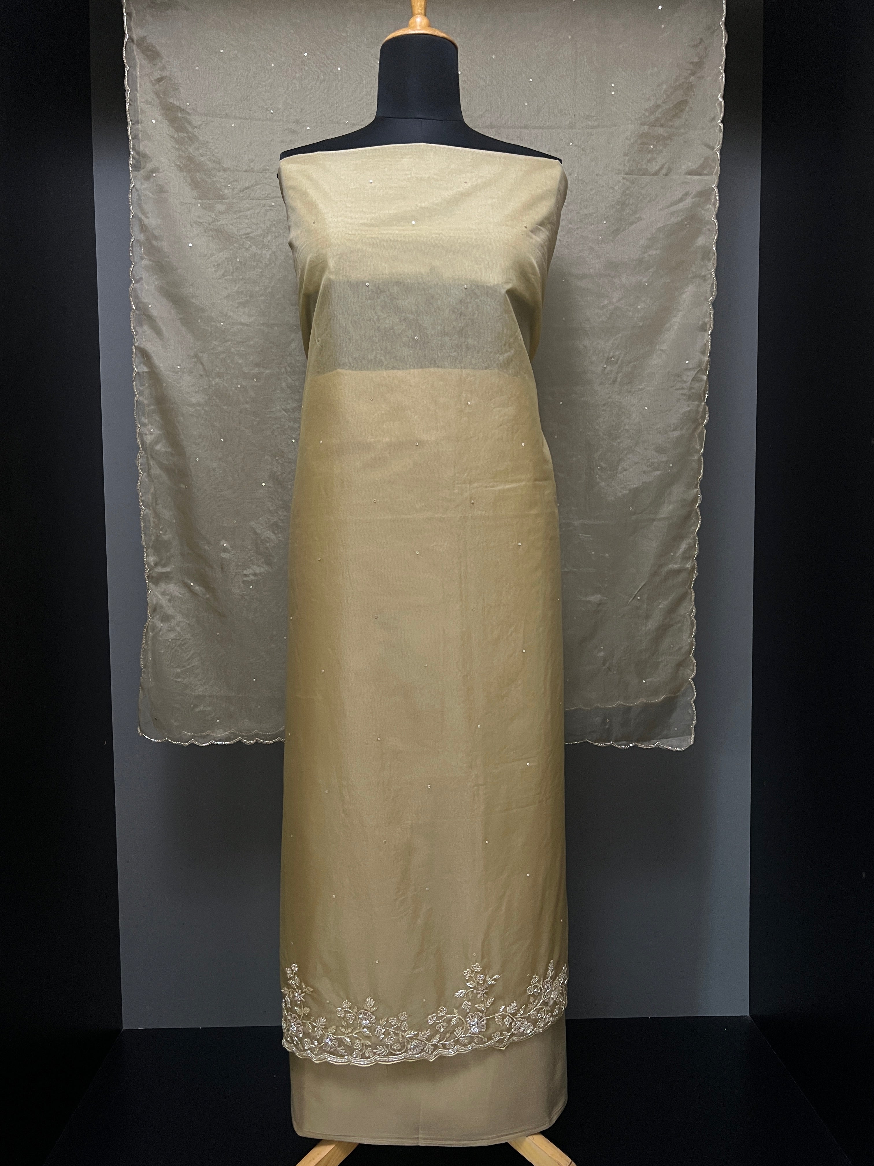 - Style: Hand Embroidery Detailing, Scattered Sequence Sticky Detailing, Cut Beads & Sequence Highlight