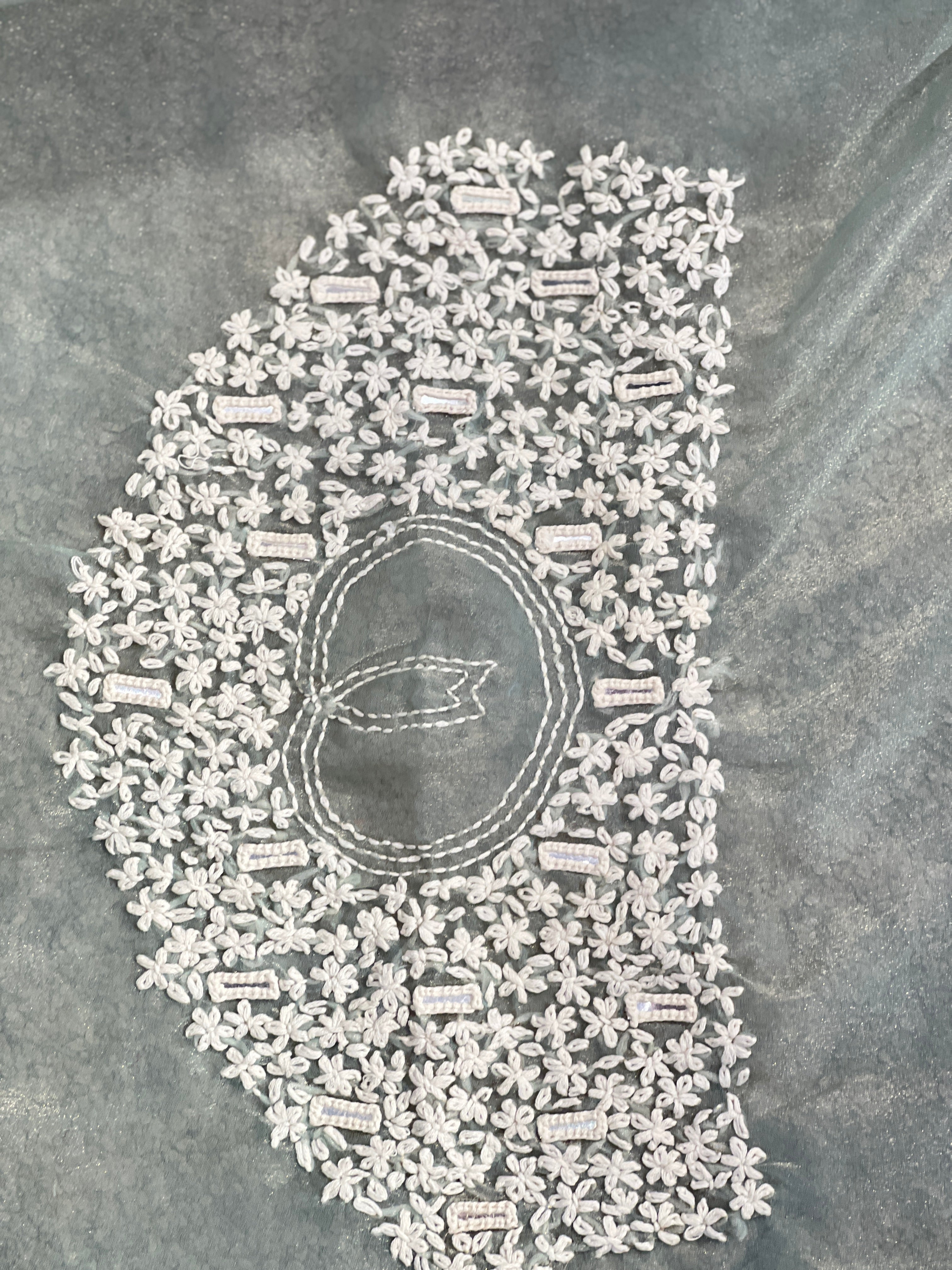 • Style: White Thread Embroidery With Mirror Highlight For Sleeves & Back Portion