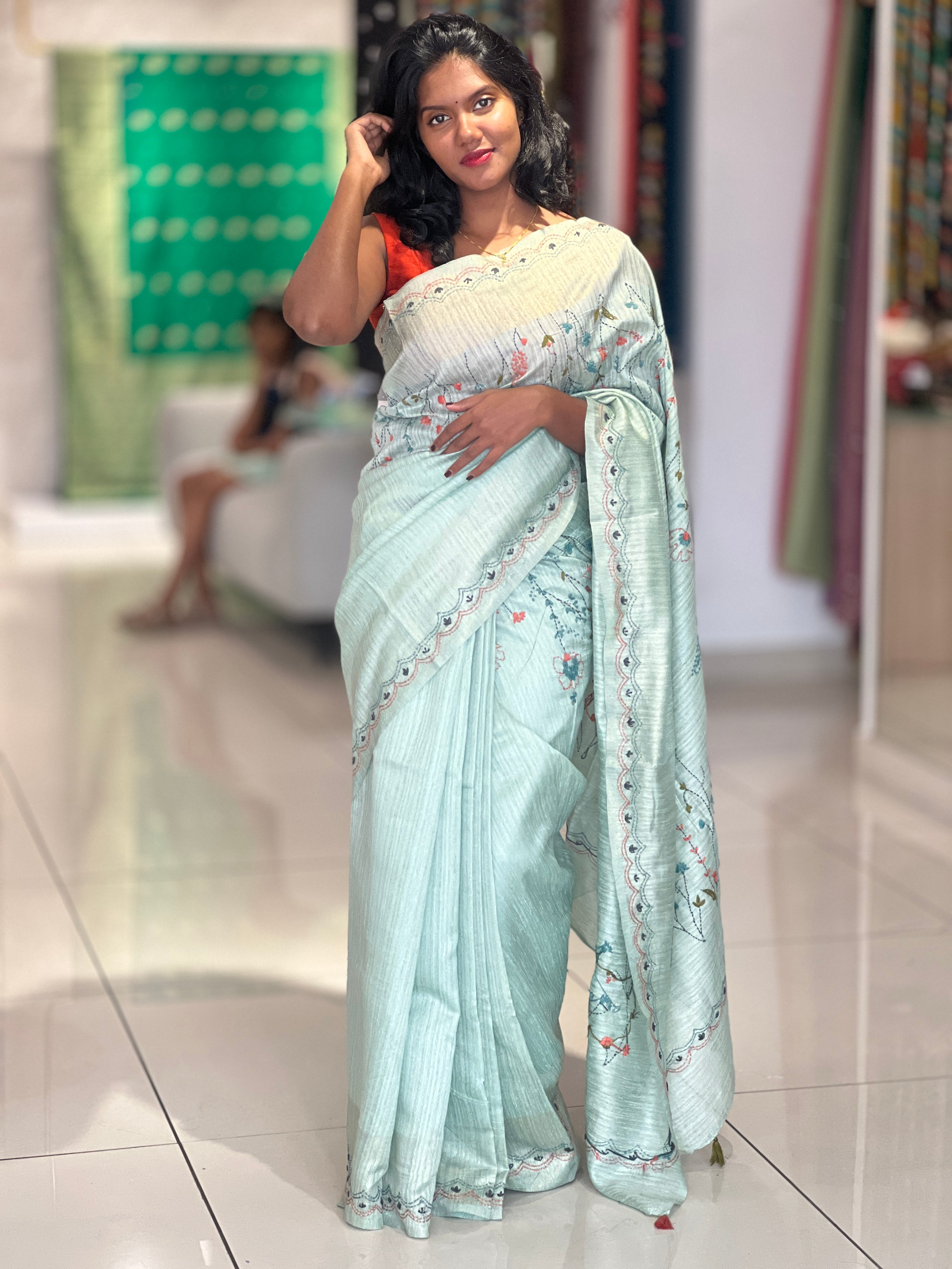 - Style: Hand Embroidery, Floral Jaal Pattern, Kantha Detailing, Tassels Attached