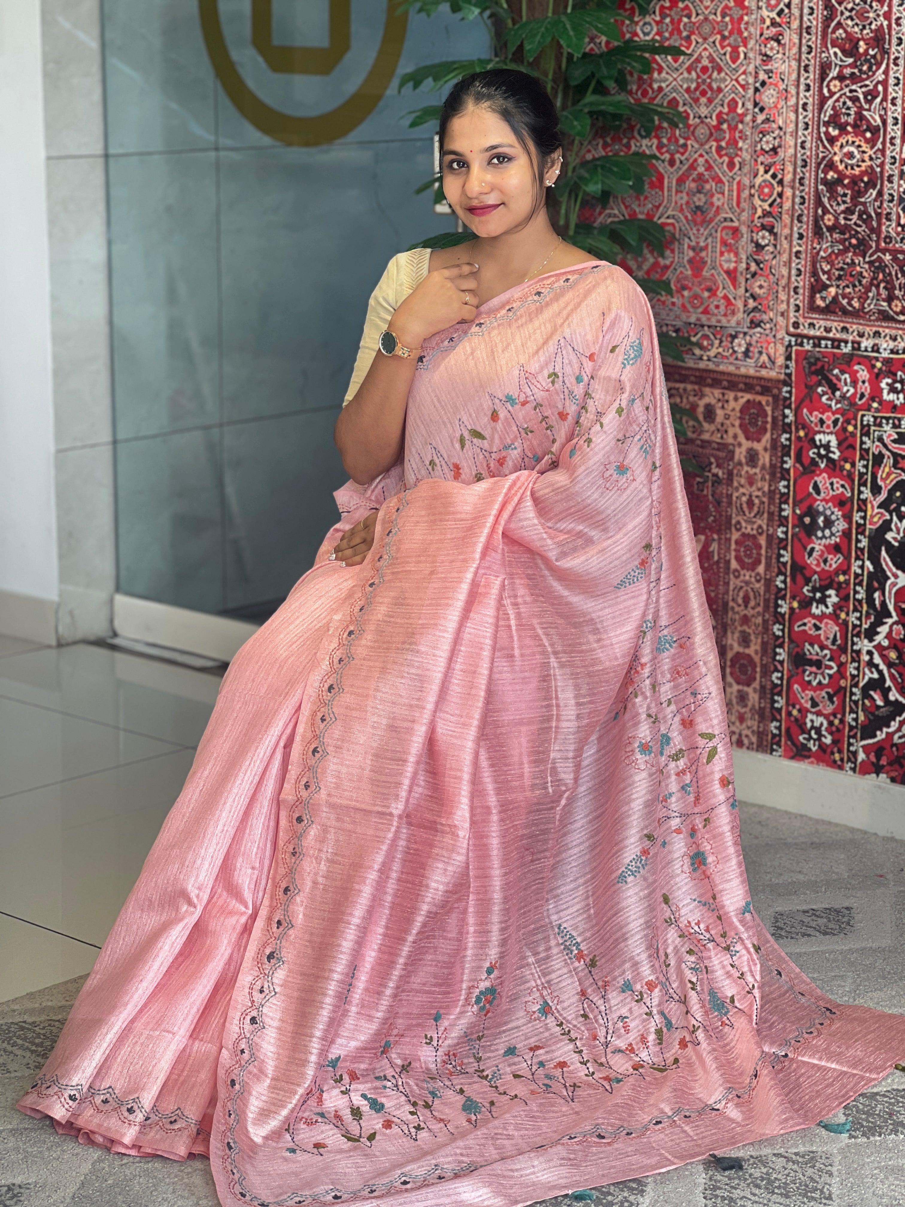 • Style: Hand Embroidery, Floral Jaal Pattern, Kantha Detailing, Tassels Attached