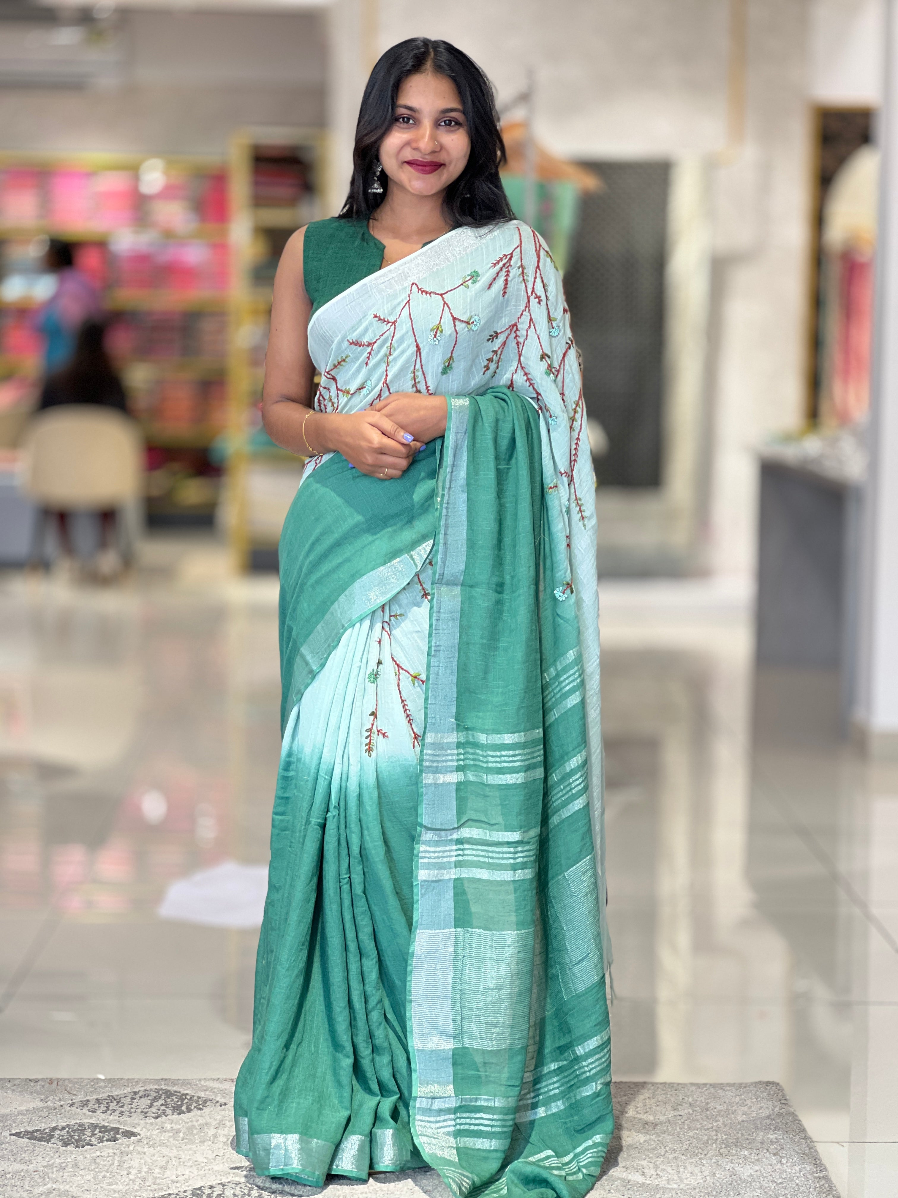 - Style: Hand Embroidery Pattern, Silver Zari Border, Double Shaded