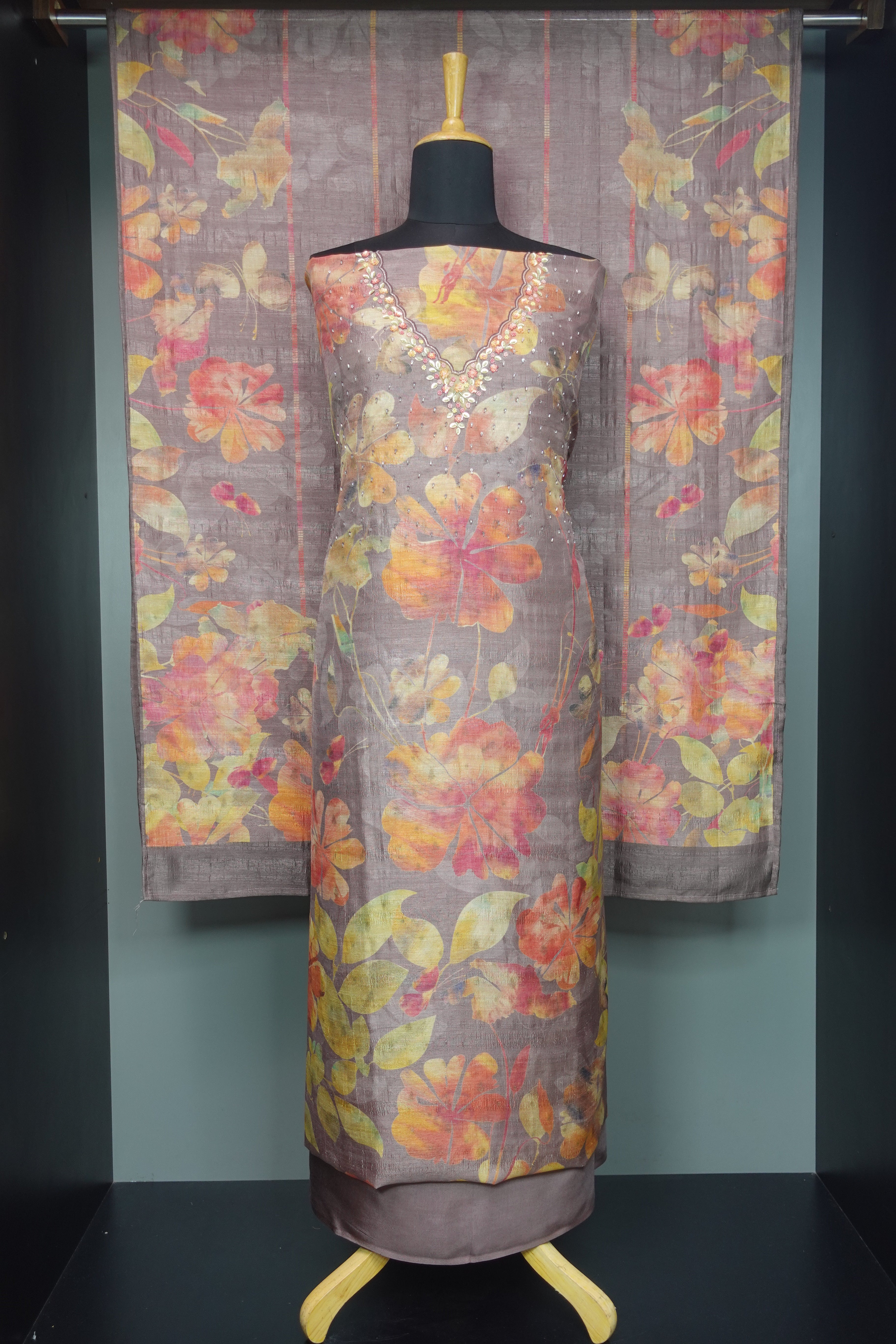 - Style: Floral Sublimation Print, Scallop Detailed Neck With Cut Beads & Sequence Hand Embroidery Detailing