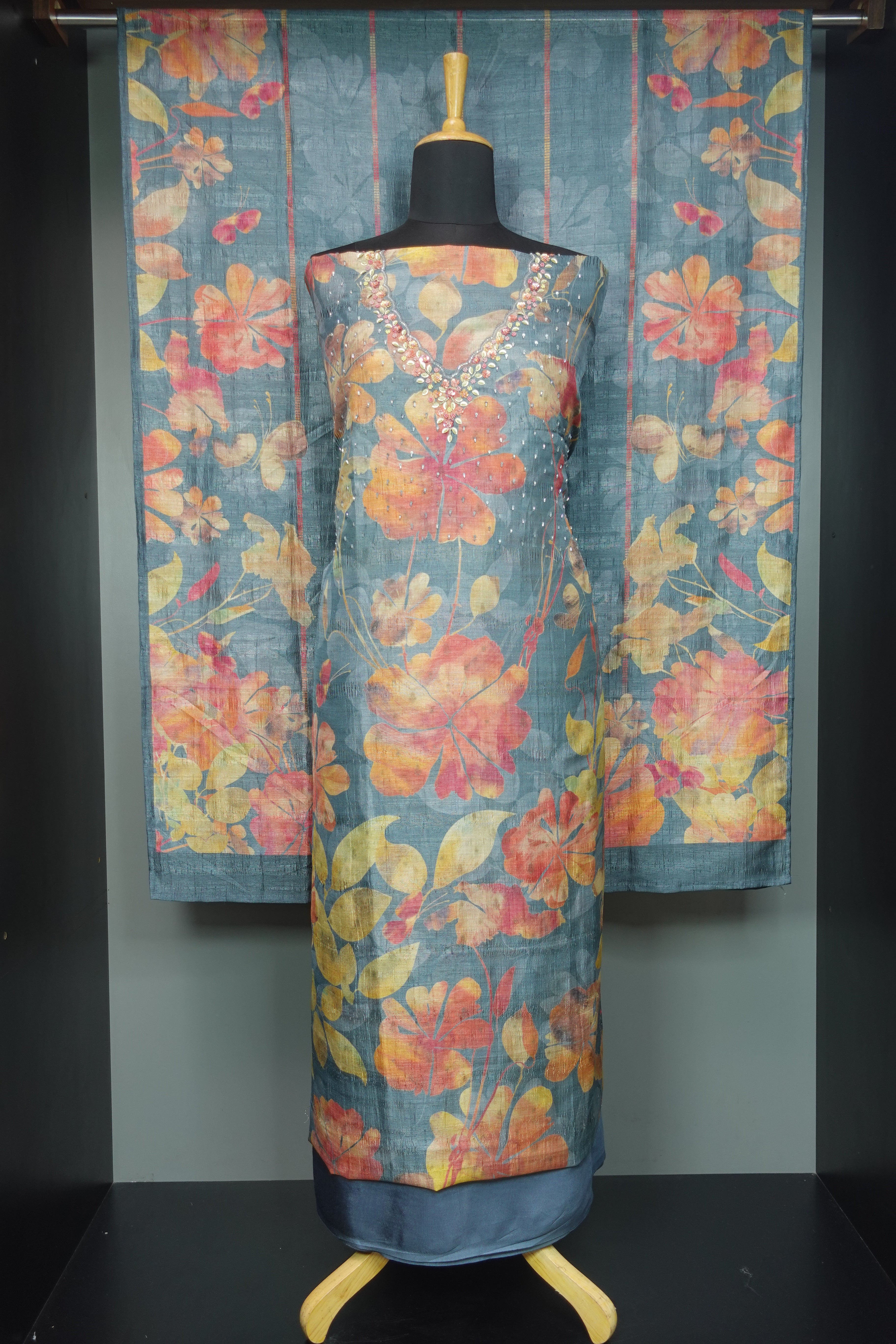 - Style: Floral Sublimation Print, Scallop Detailed Neck With Cut Beads & Sequence Hand Embroidery Detailing