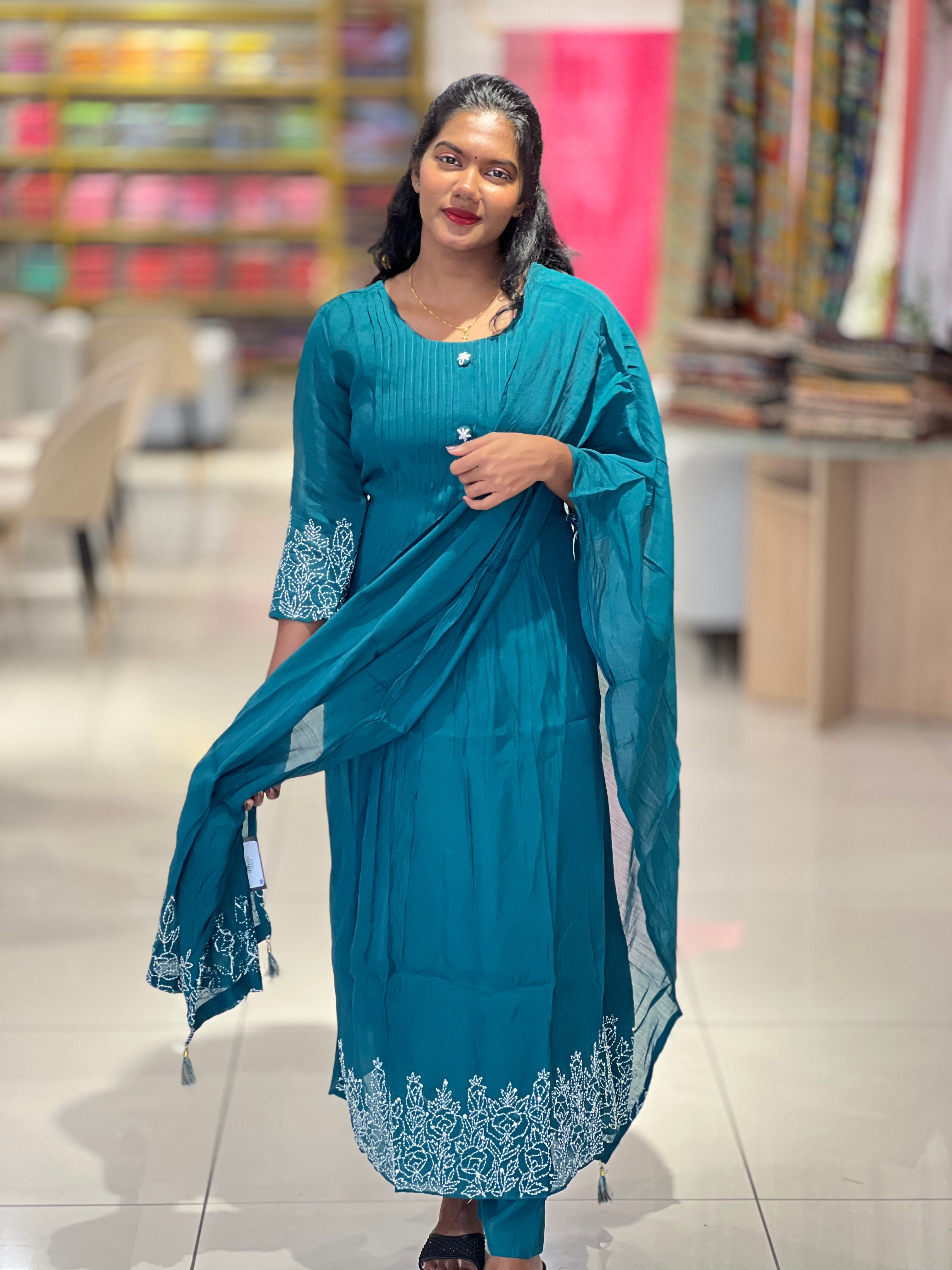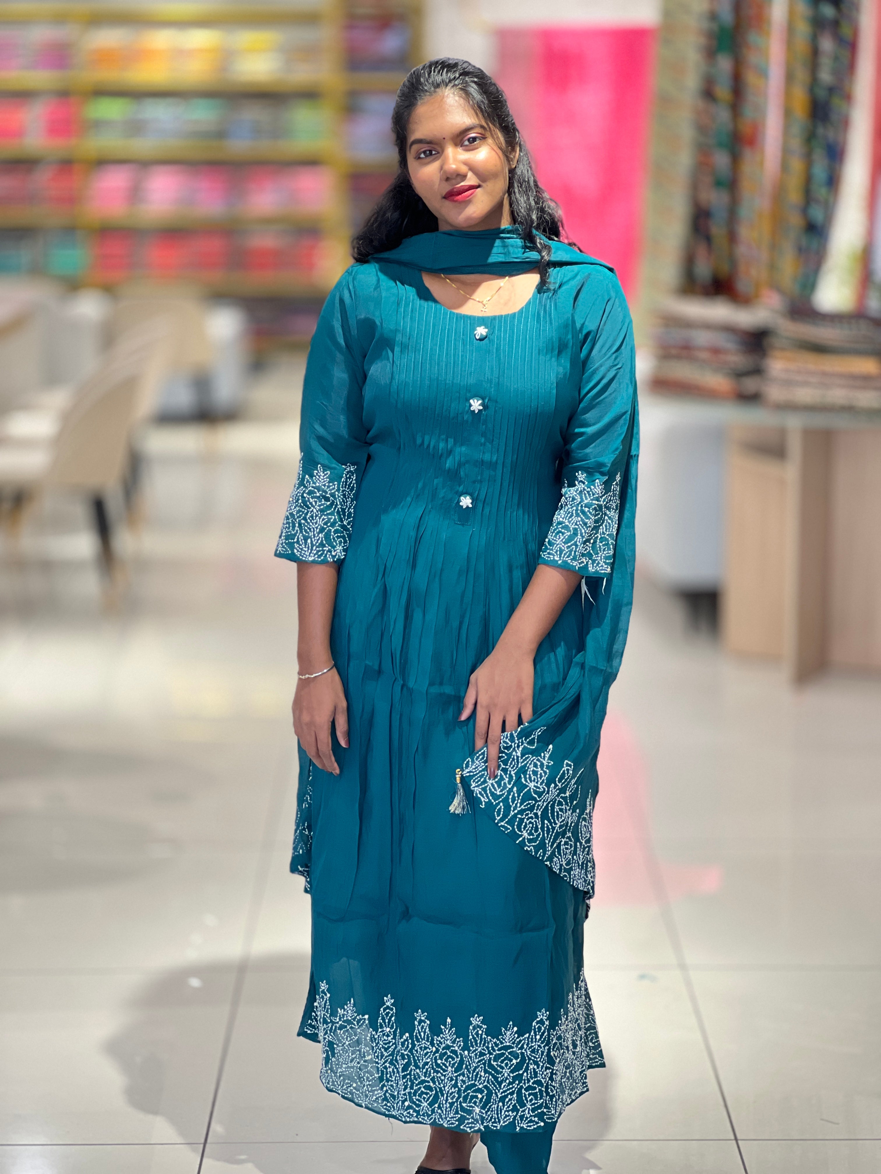 - Style: Hand Kantha Embroidery Detailed Sleeves & Lower Hem Portion, Pin Tuck Detailing With Button Detailed Yoke Portion, With Lining, A-Line Pattern
