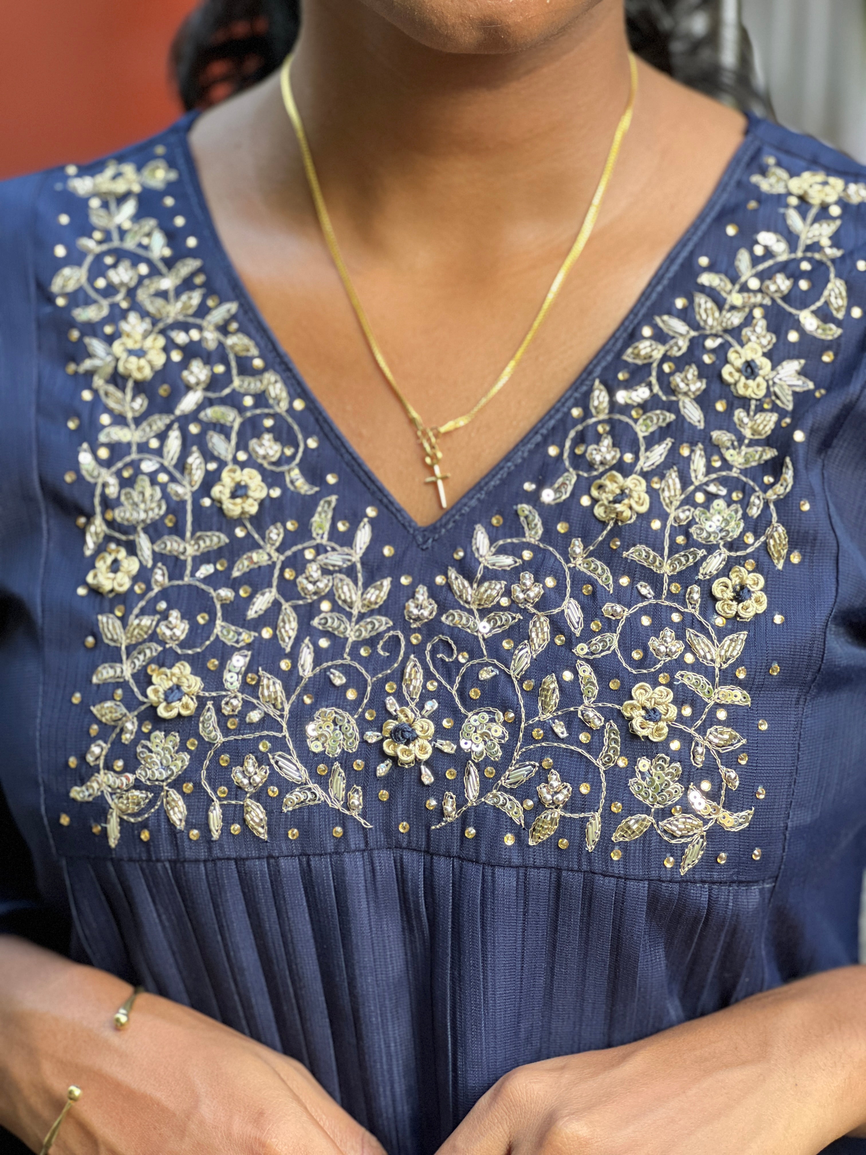 • Style: Hand Work Detailing, Zaridosi & Sequins & Stone Work Detailed Yoke, Panel With Knife Pleated Detailing, Side Zip Detailing, With Lining, A-Line Pattern, Lace Detailed Sleeves
