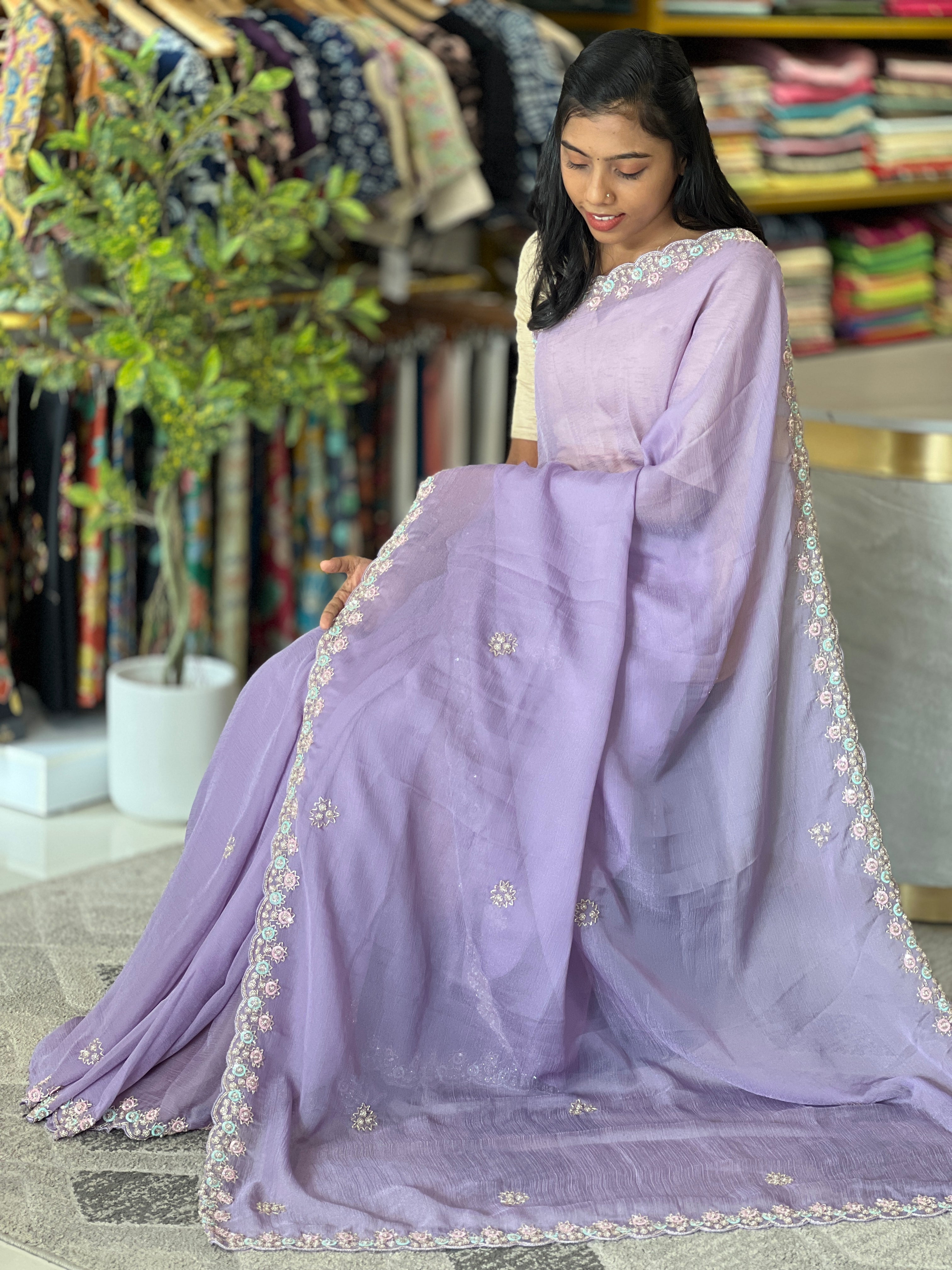 Hand Work Detailed Shimmer Georgette Saree | SBP659