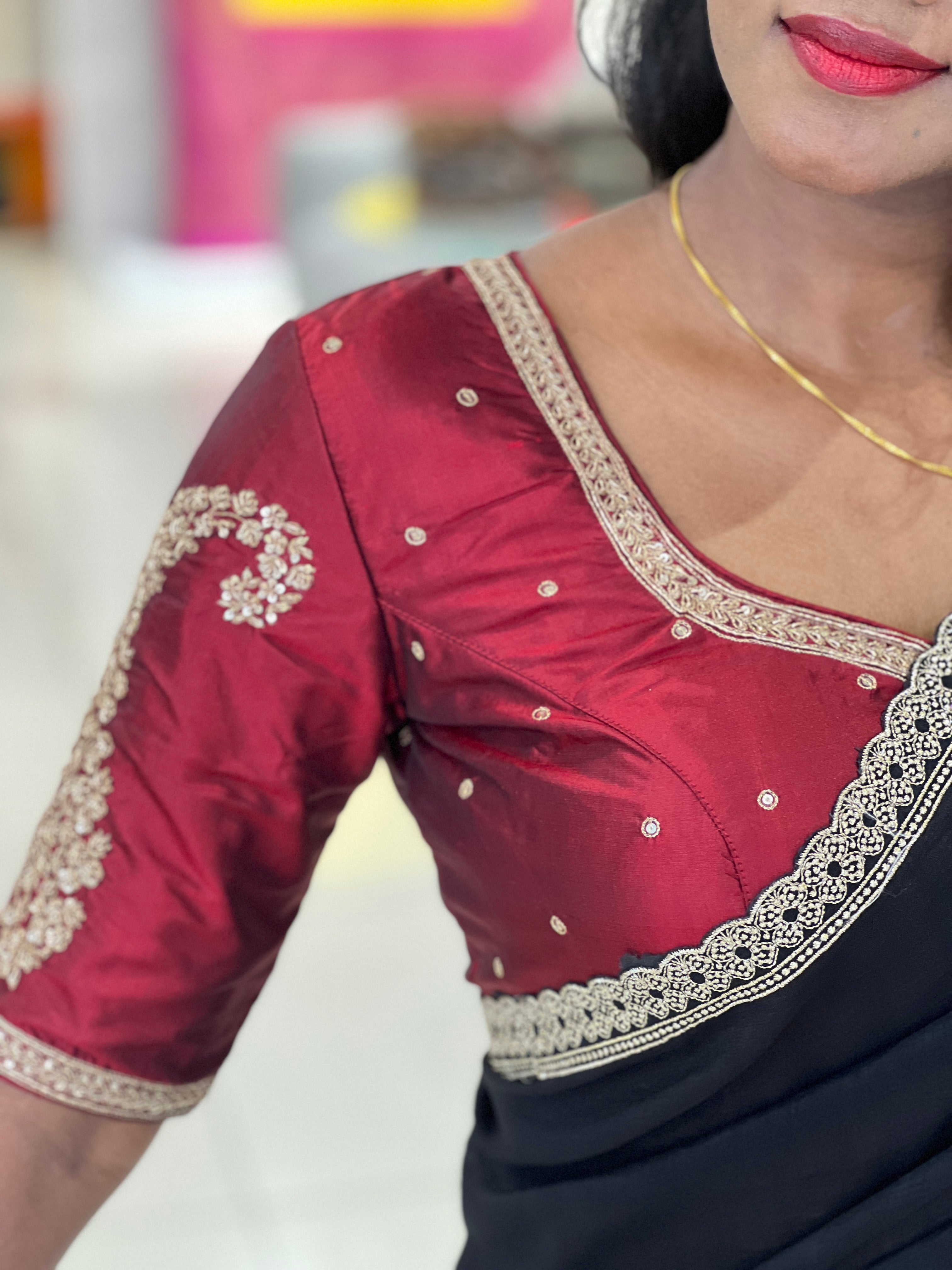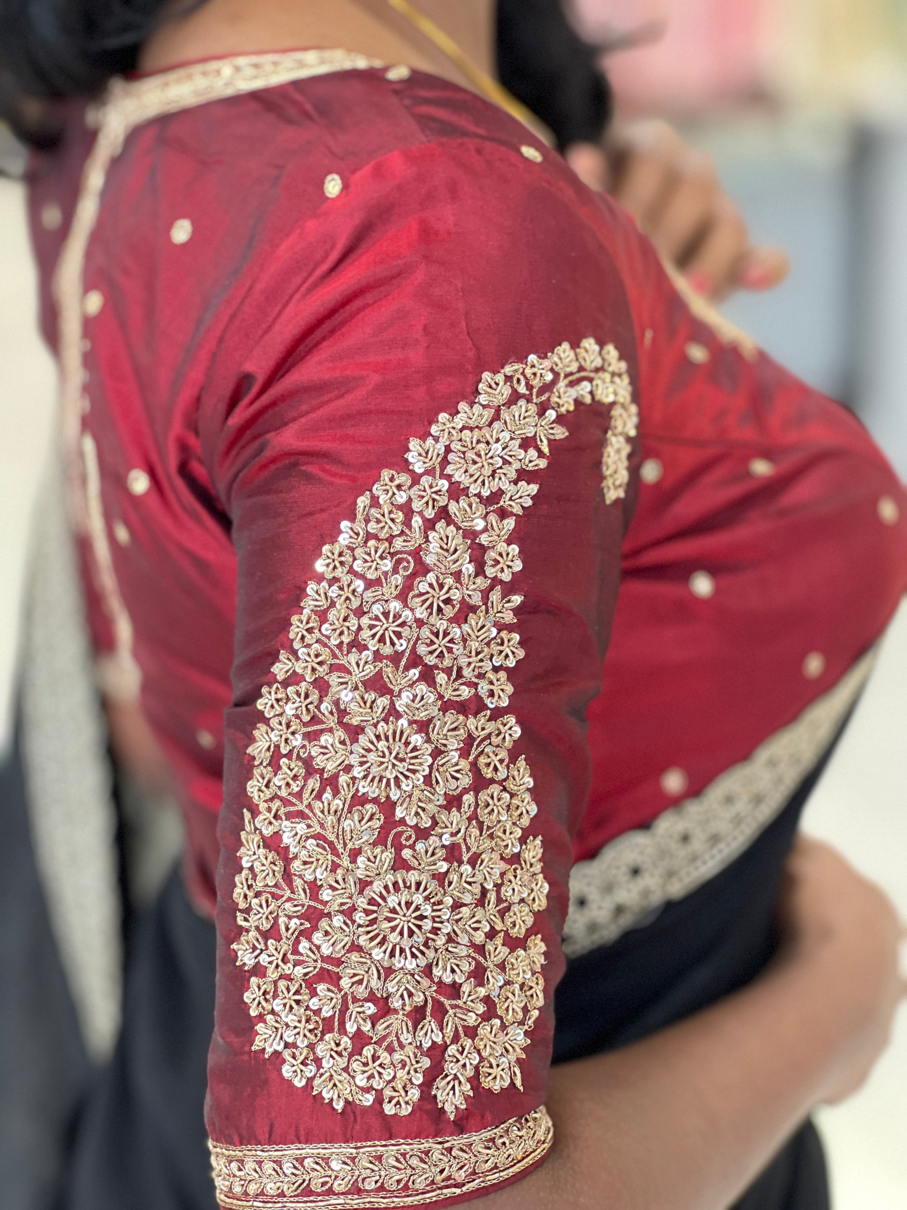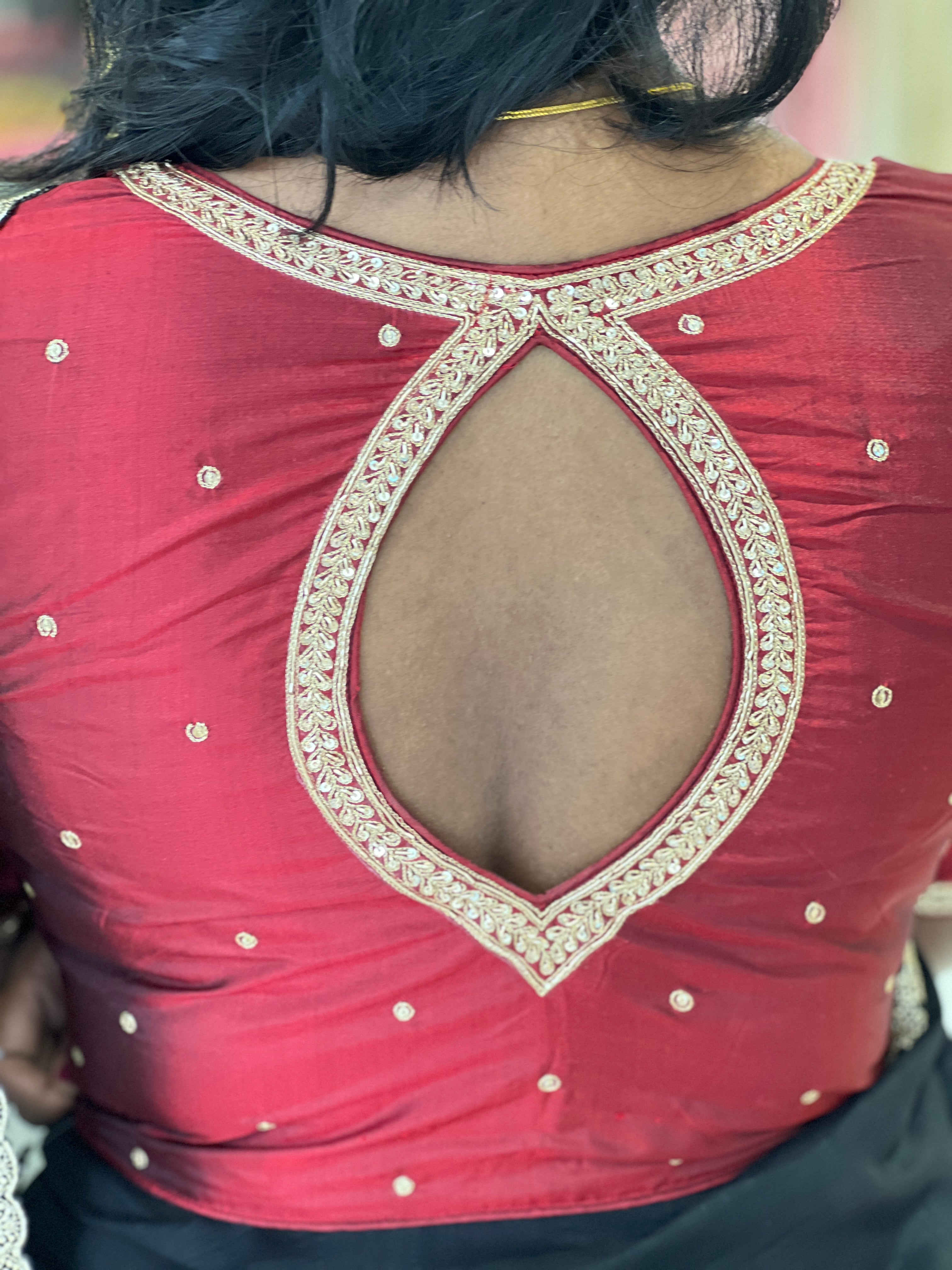 - Style: Hand Work Embroidery Pattern, Scattered Zari Buta With Sequence Highlighted, Back Keyhole With Embroidery Highlighted Pattern, Paisley Embroidery Patterned Sleeves, Padded, Princess Cut