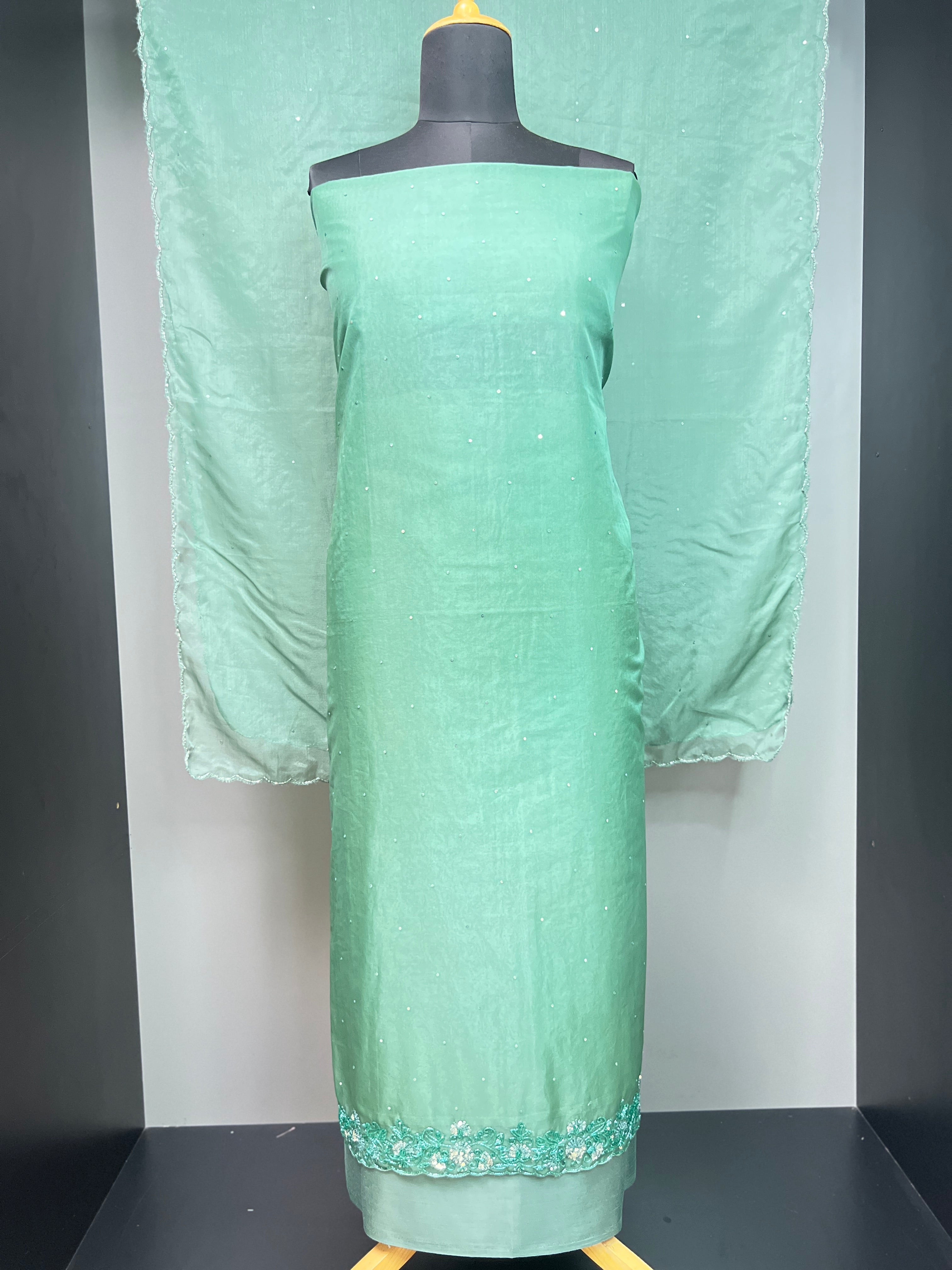 - Style: Hand Worked Lower Hem Portion, Floral Pattern, Sequence & Cut Beads Detailing, Scattered Sequence Detailing ( With Santoon Lining)