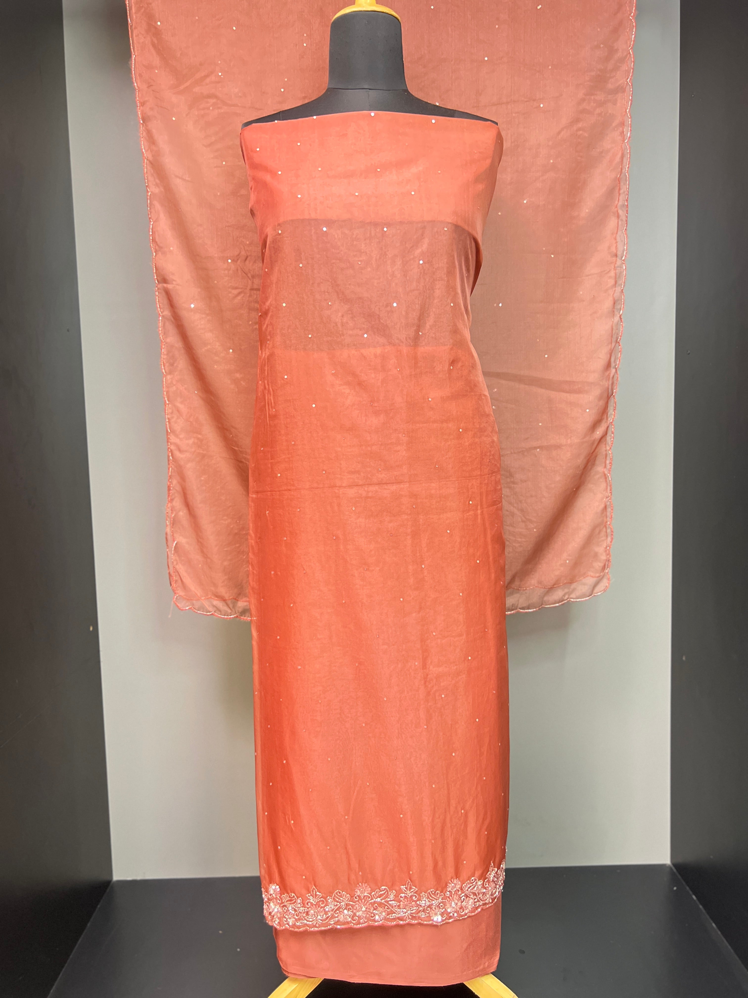 •  Style: Hand Worked Lower Hem Portion, Floral Pattern, Sequence & Cut Beads Detailing, Scattered Sequence Detailing ( With Santoon Lining)