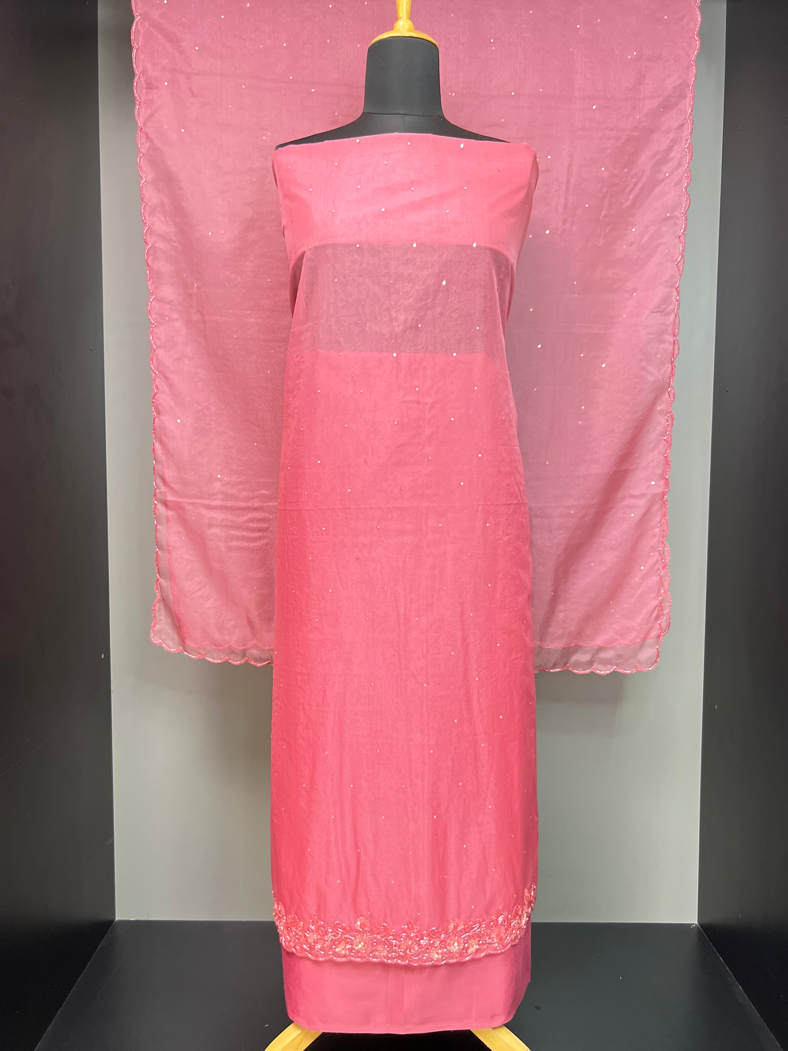 •  Style: Hand Worked Lower Hem Portion, Floral Pattern, Sequence & Cut Beads Detailing, Scattered Sequence Detailing ( With Santoon Lining)