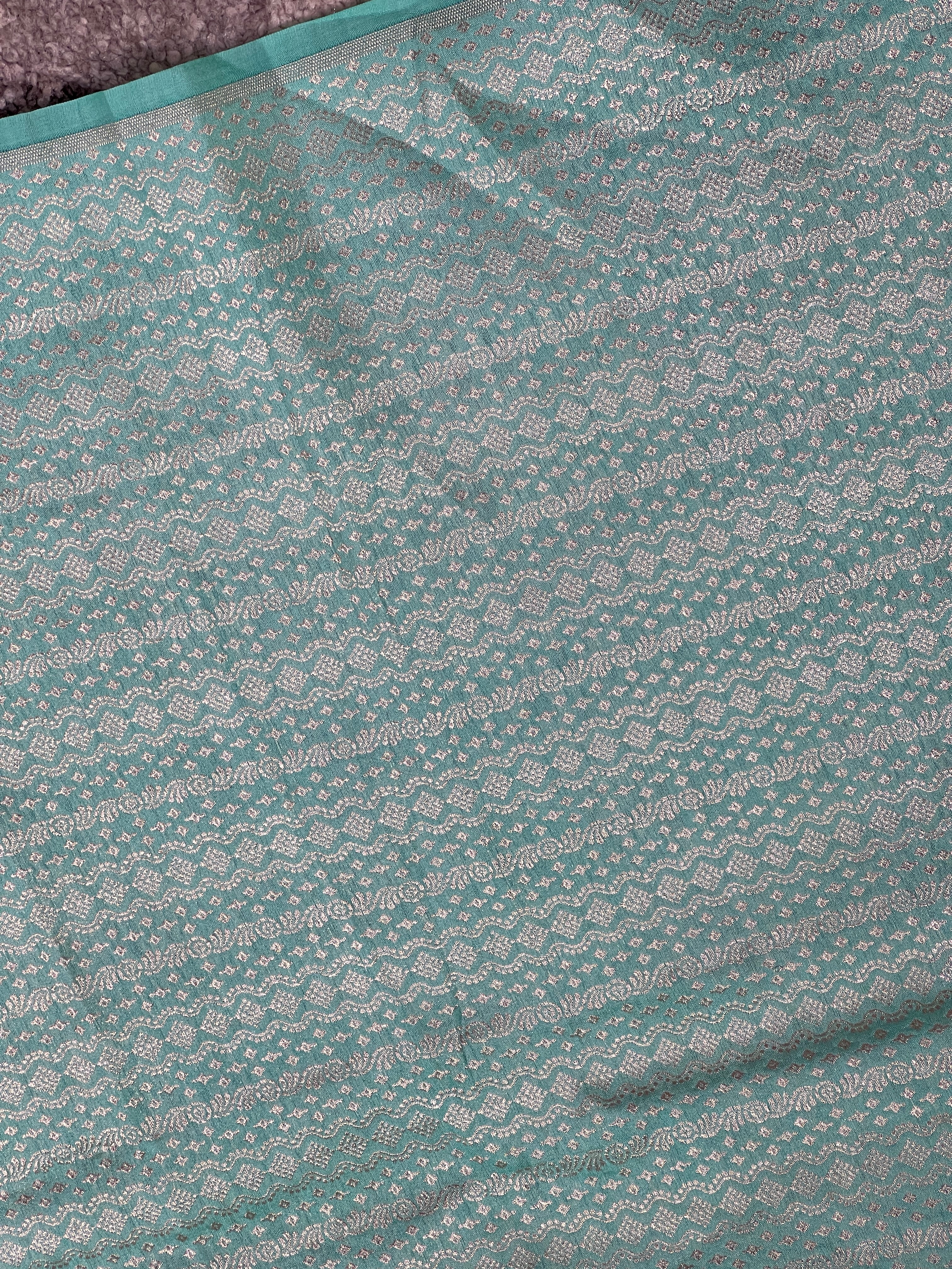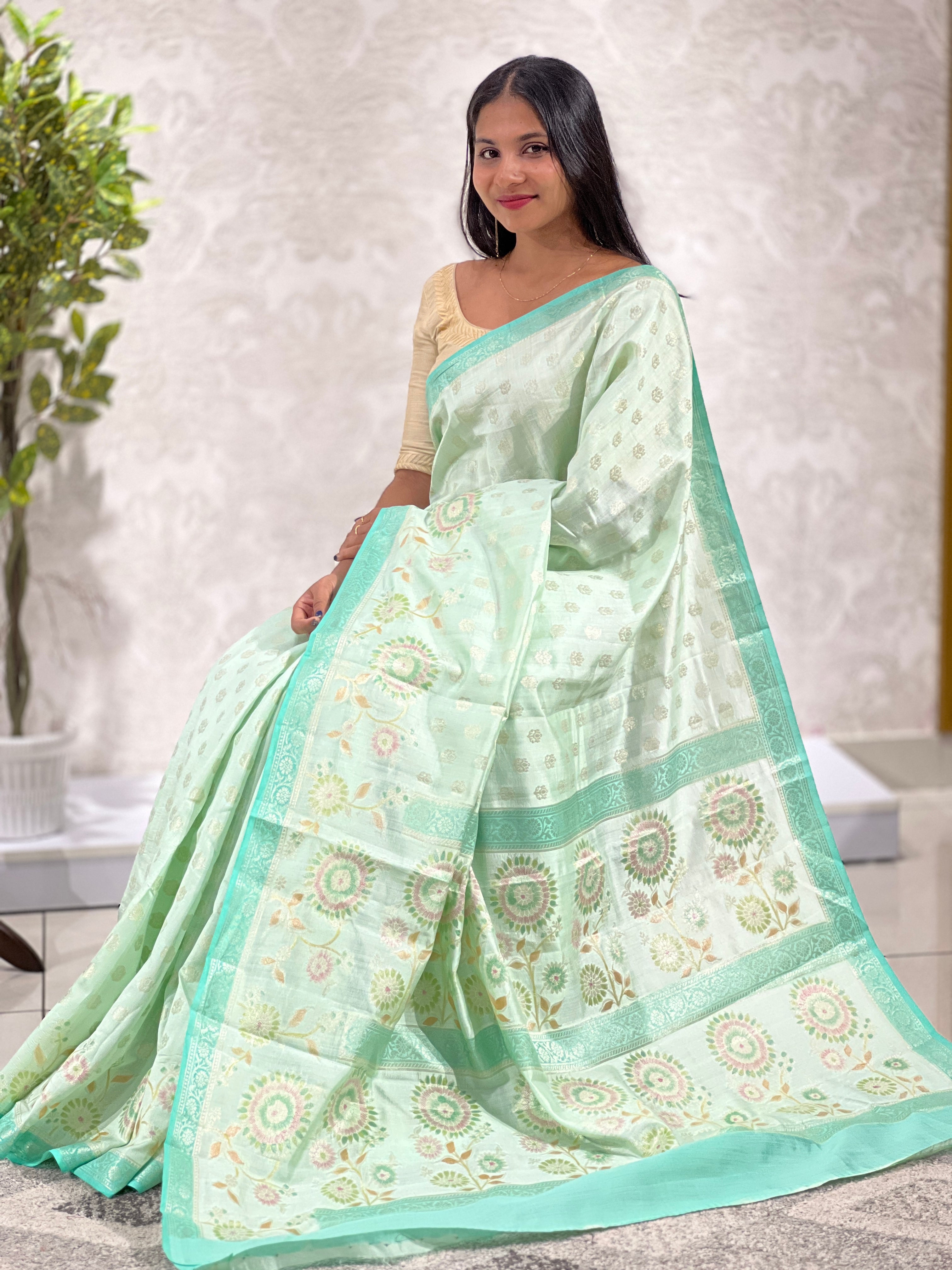 - Style: Hand Woven, Fully Brocade Pattern, Banarasi Borders, Floral Patterned Pallu