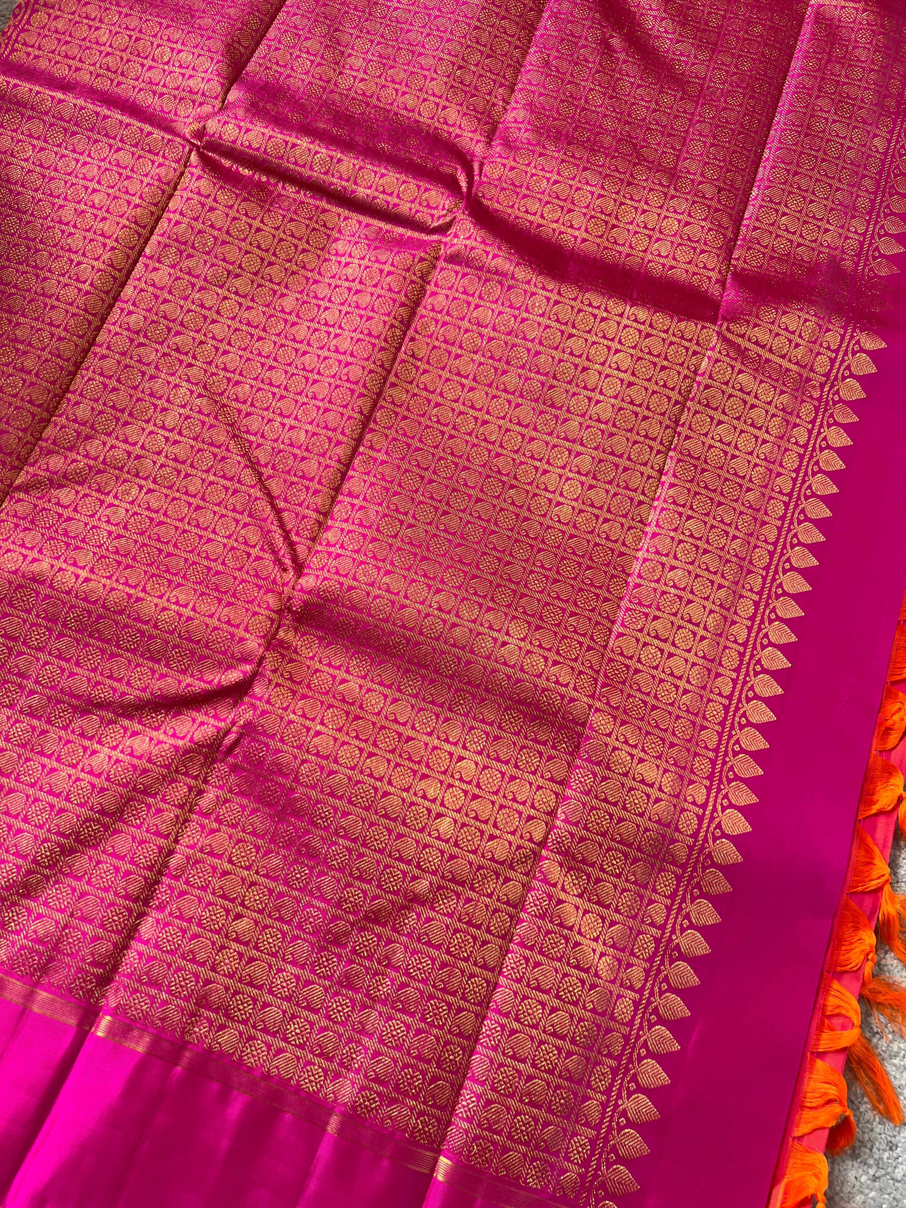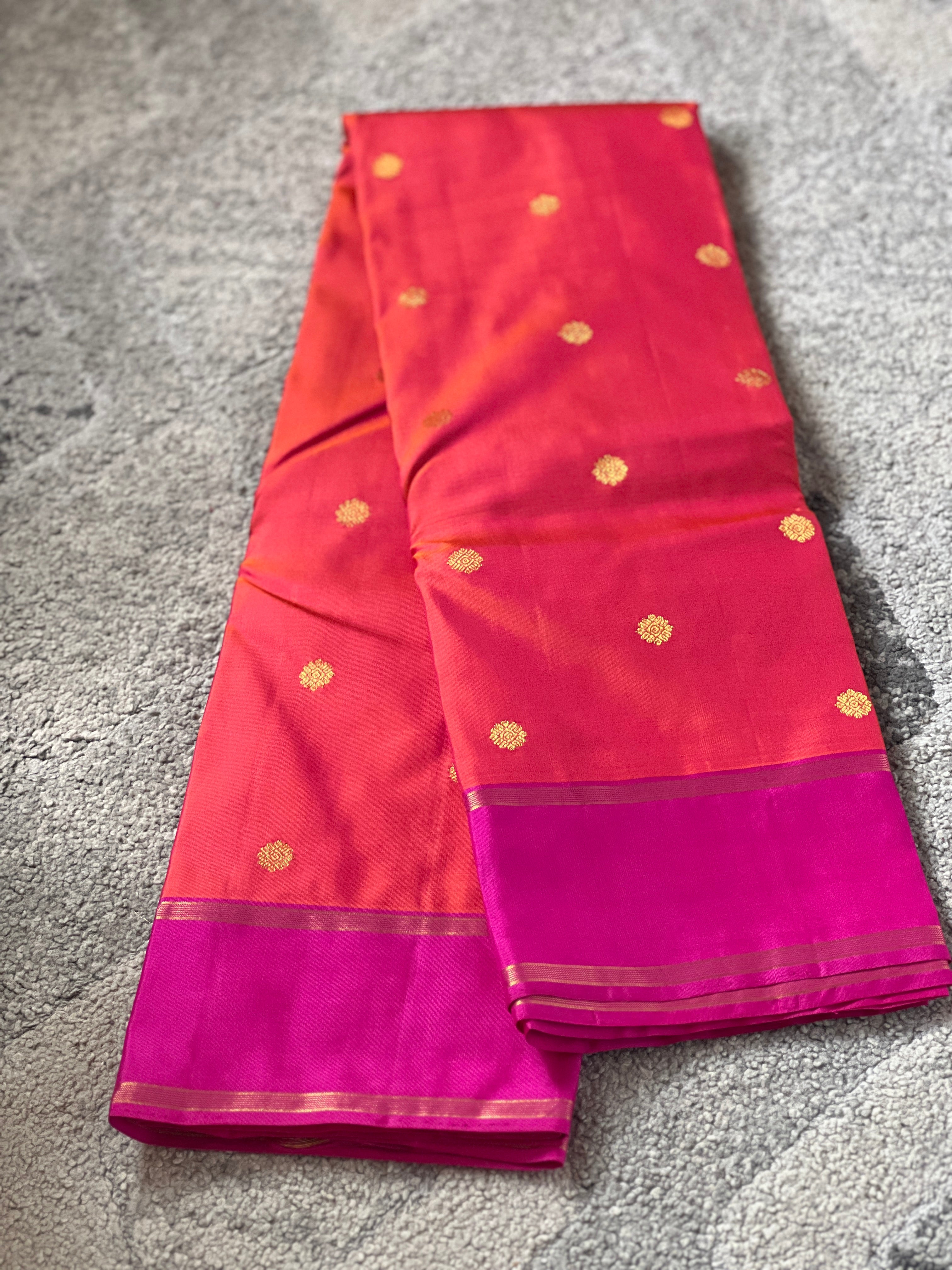 - Style: Golden Zari Woven, Handloom, Traditional Buta Weaved, Traditional Border Detailing, Diamond Patterned Pallu