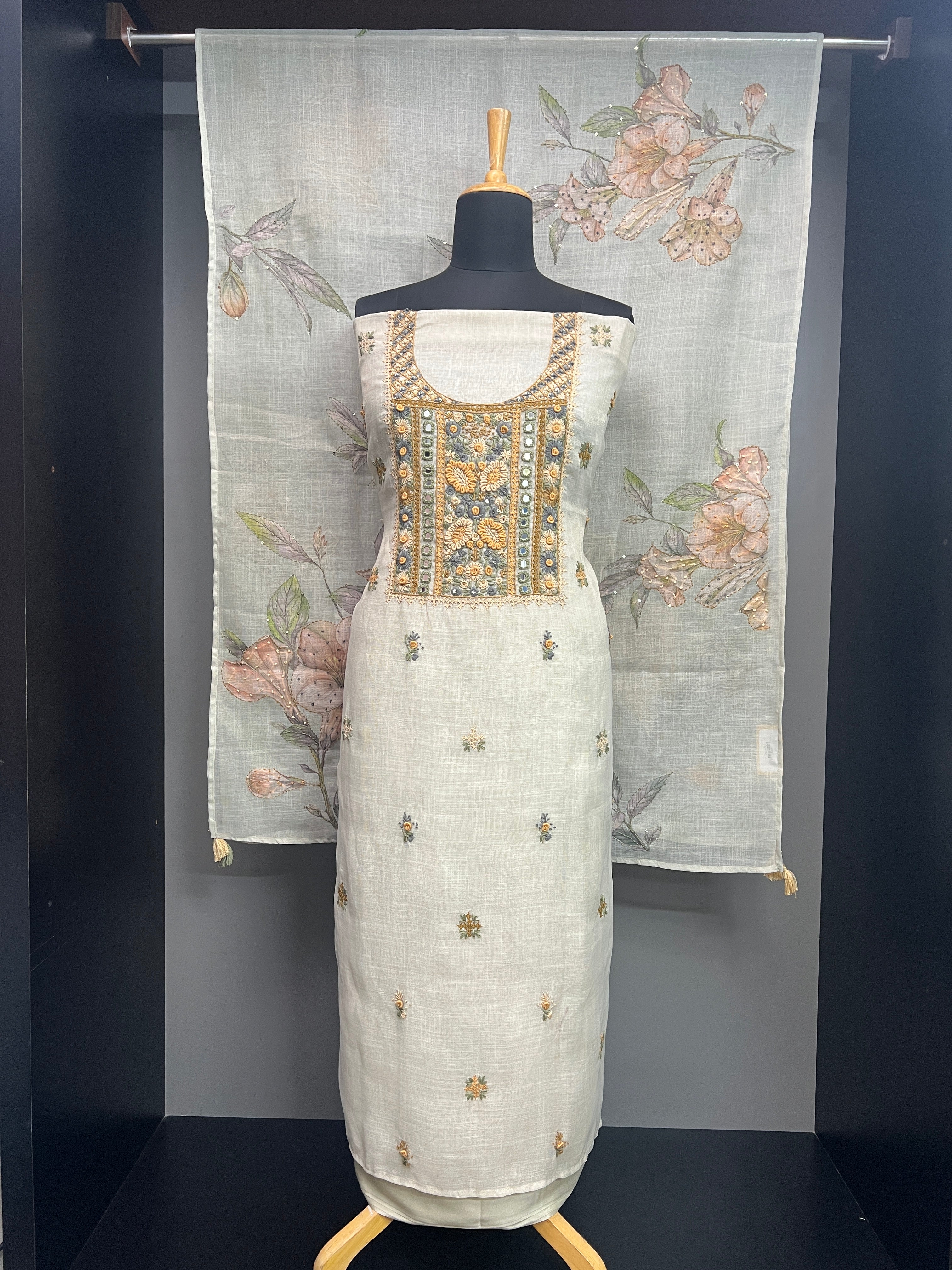 Hand Embroidery Detailed Tissue Linen Salwar Set | SGS172