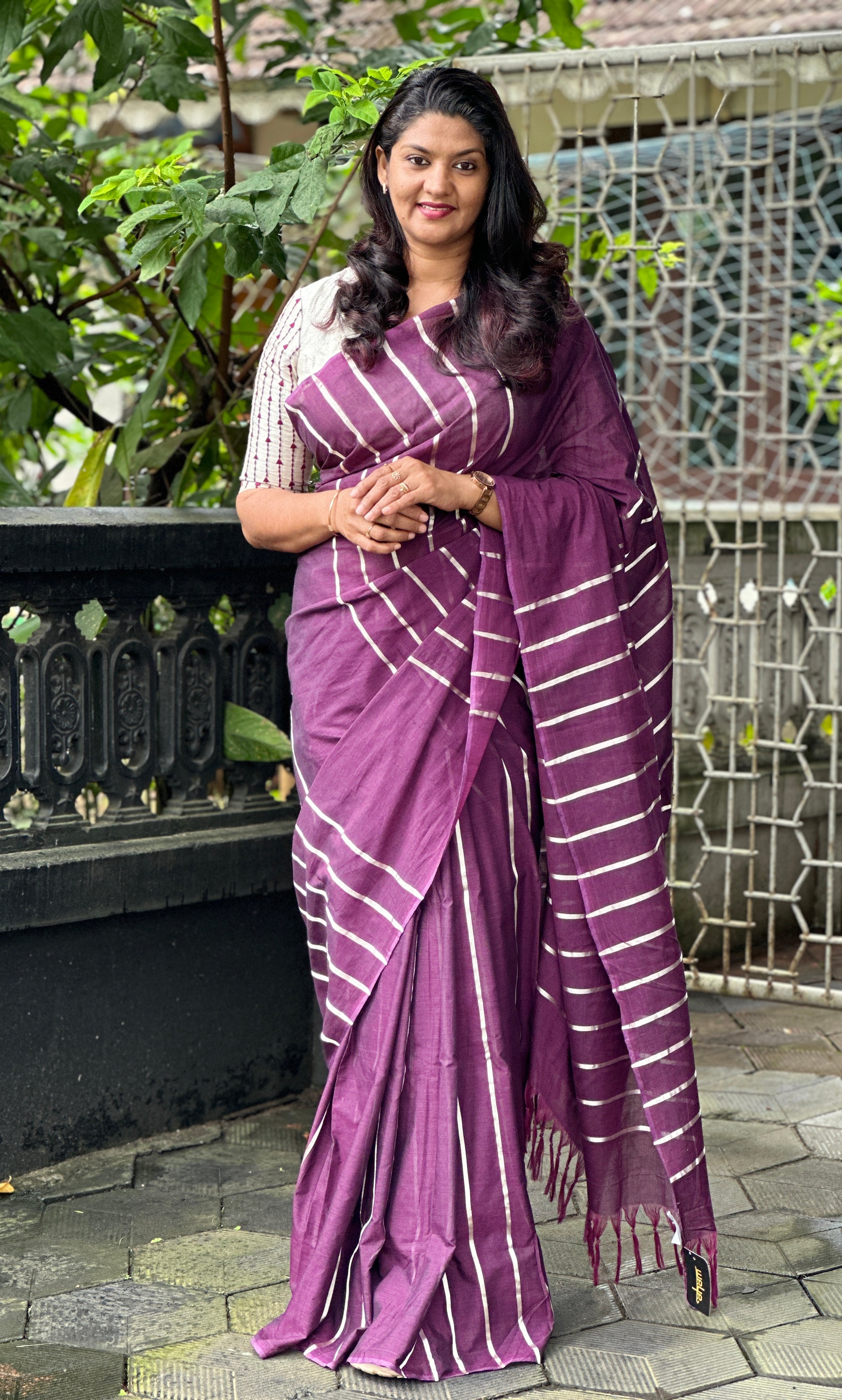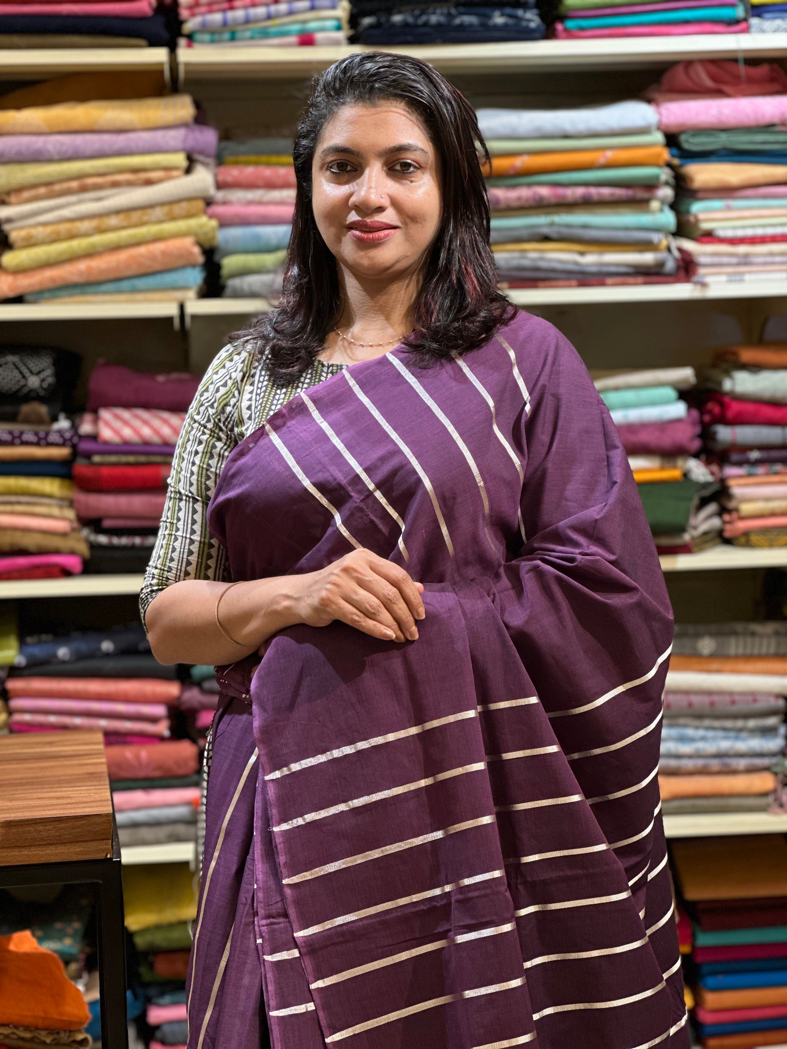 • Style: Silver Zari Line Weaving Pattern, Handloom