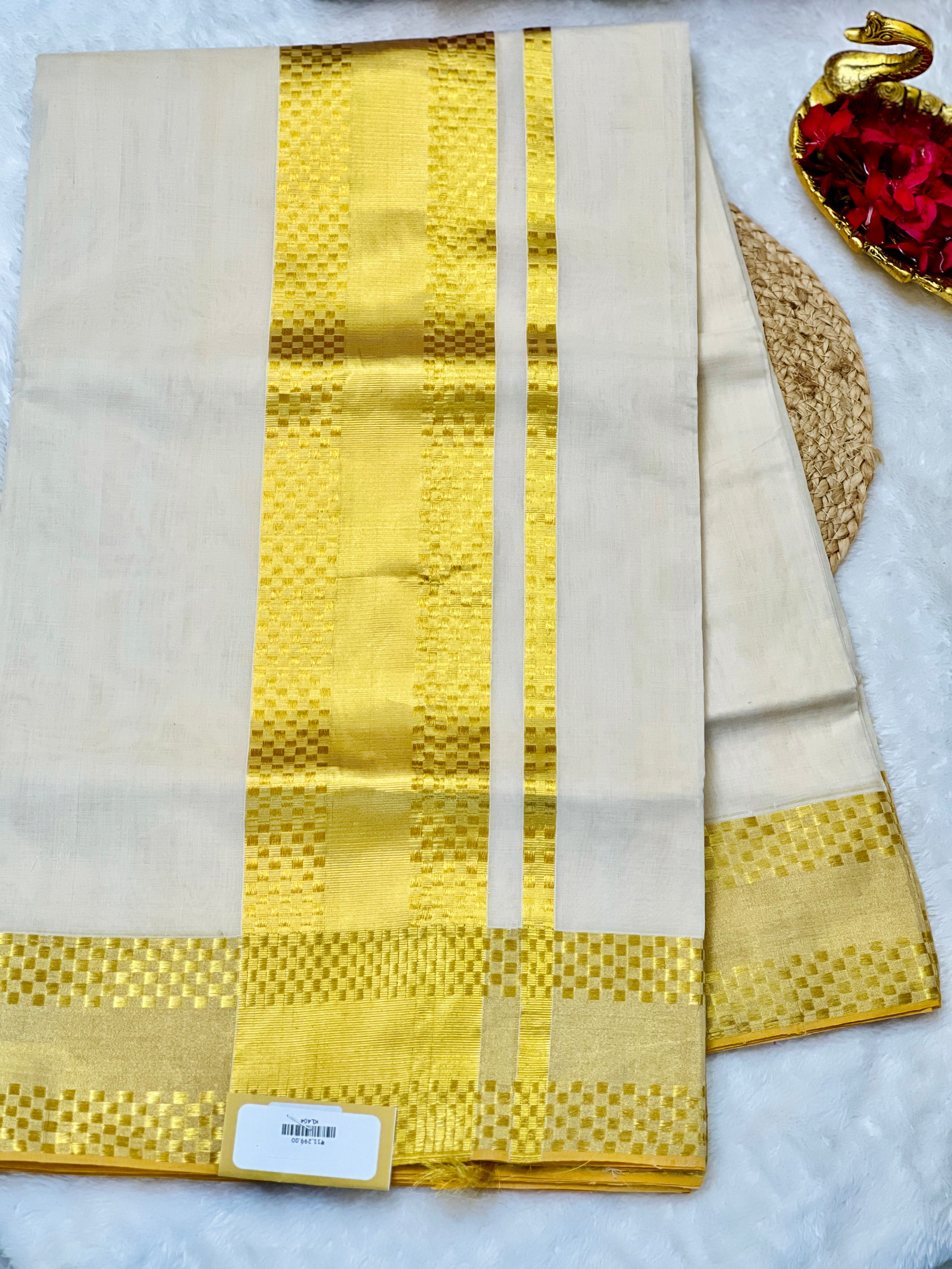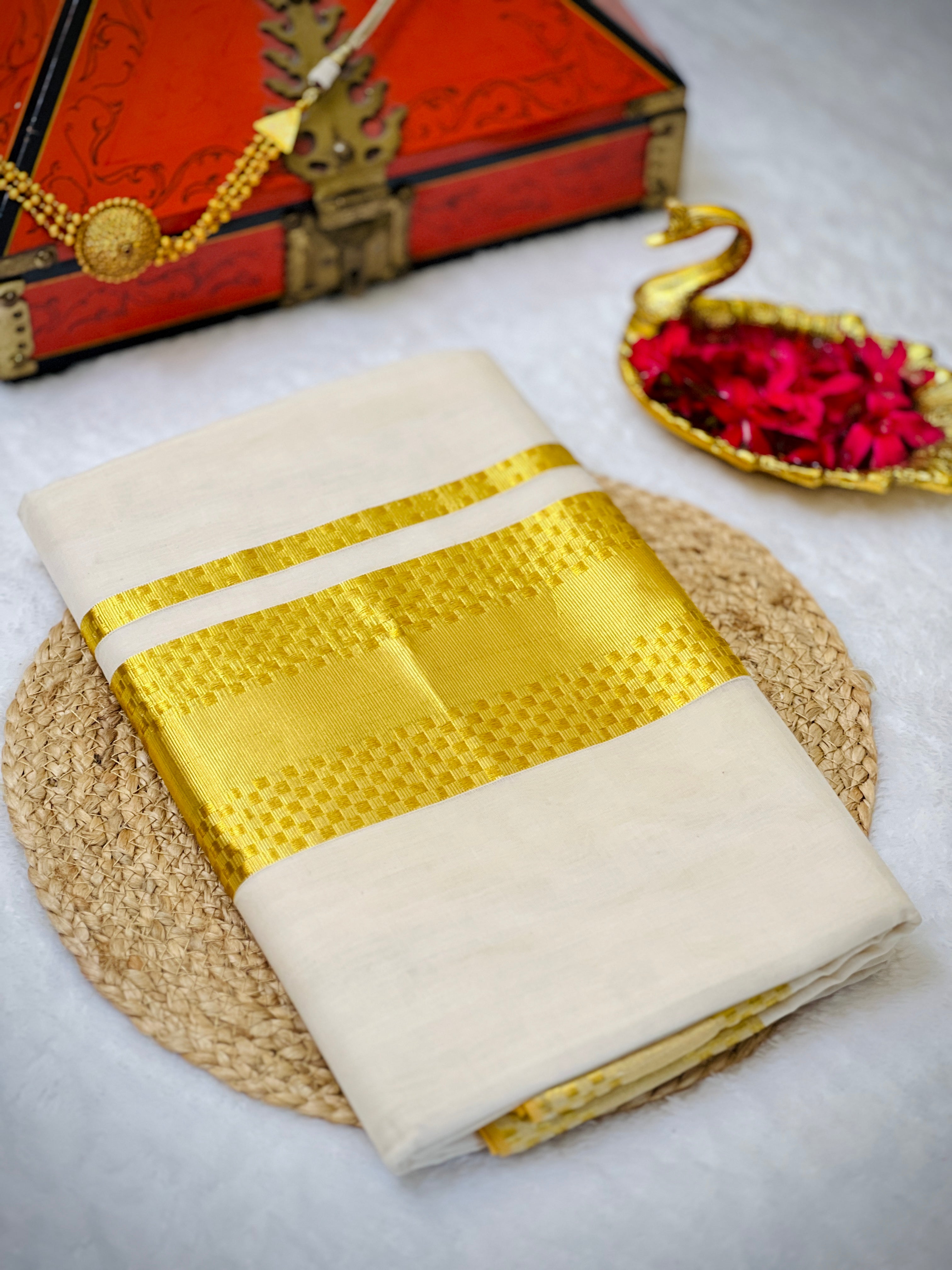 - Style: Golden Kasavu With Geometric Weaving Detailing
