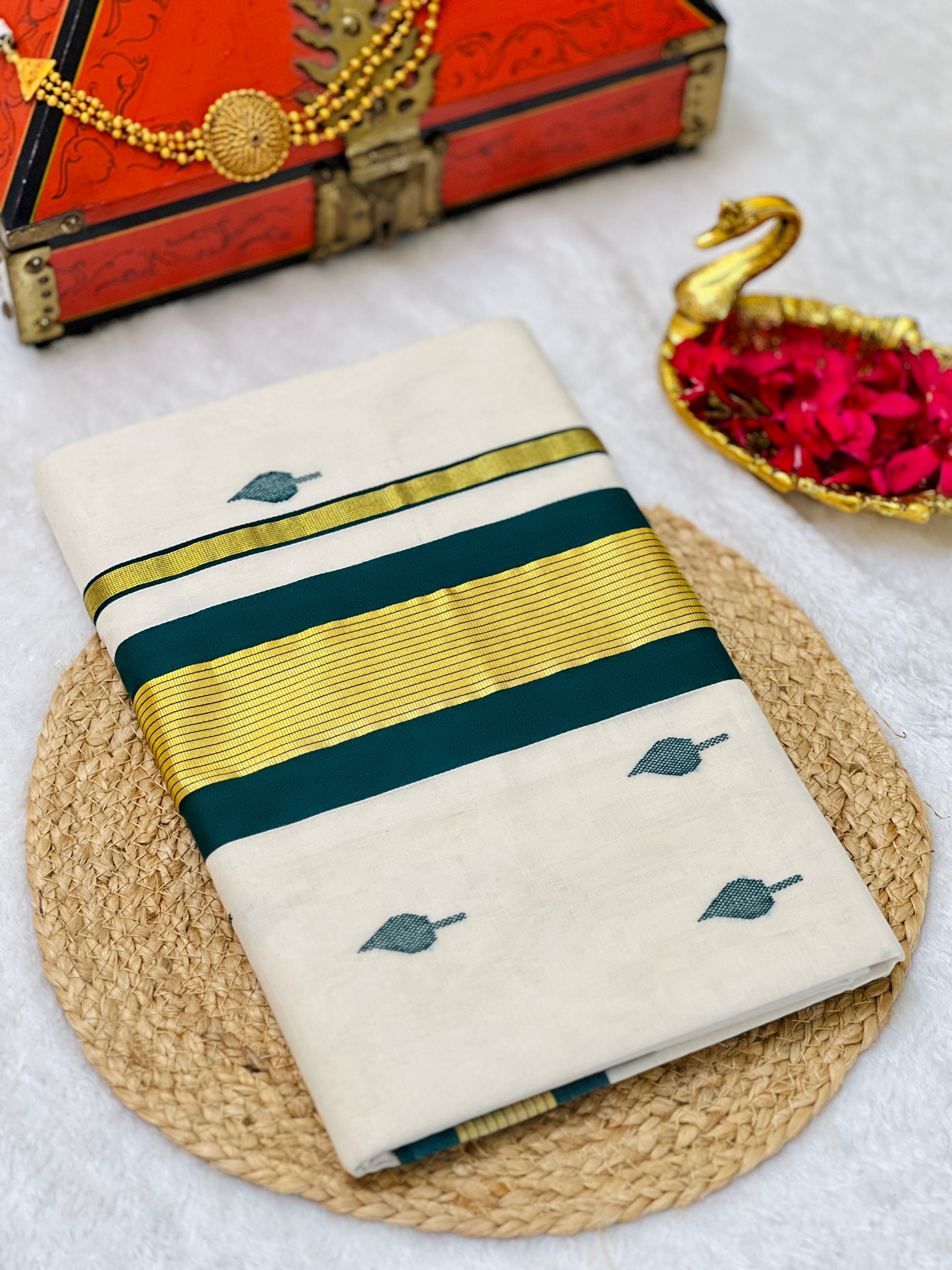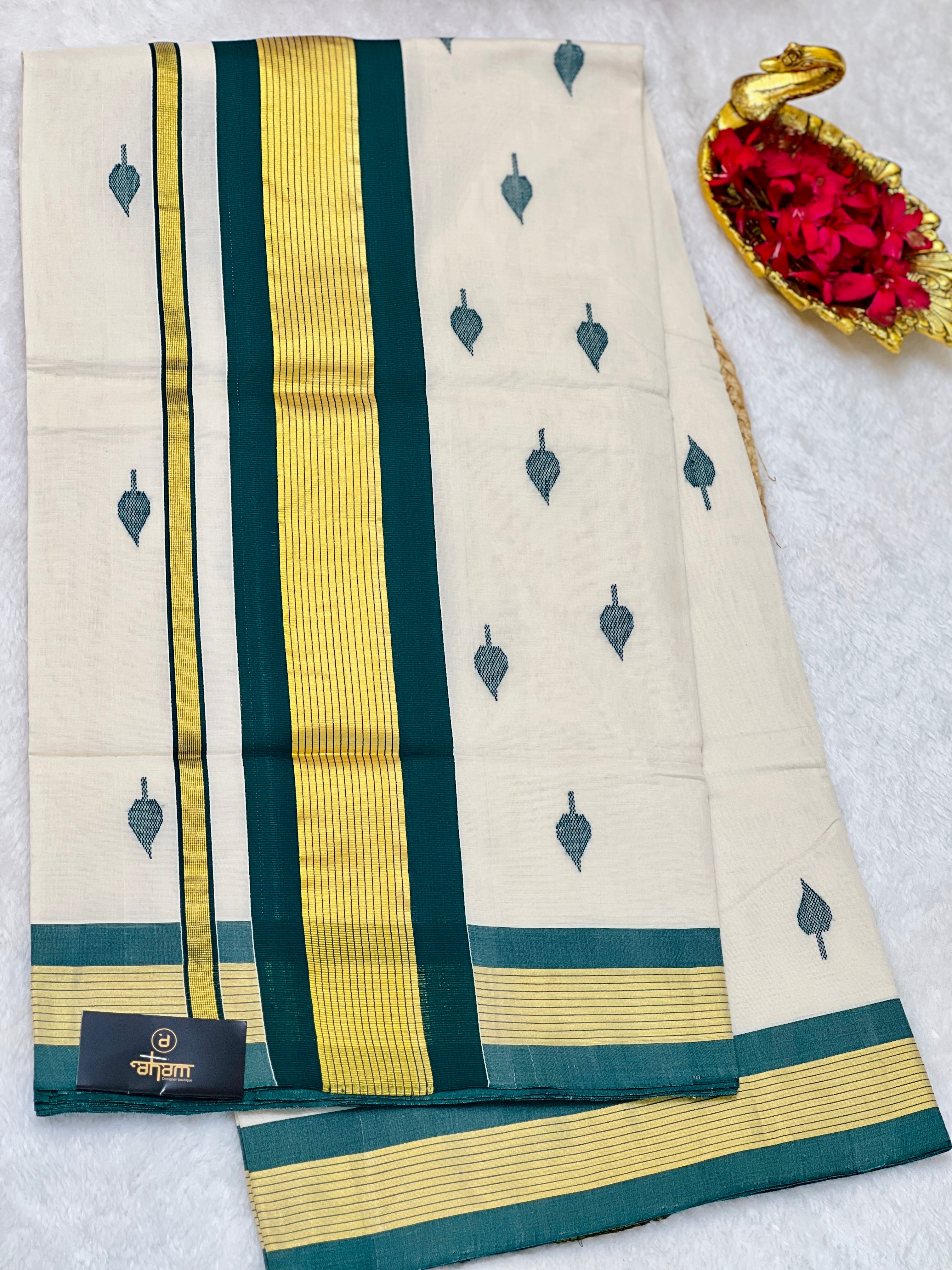 - Style: Kara & Kasavu Weaving Pattern, Leaf Pattern