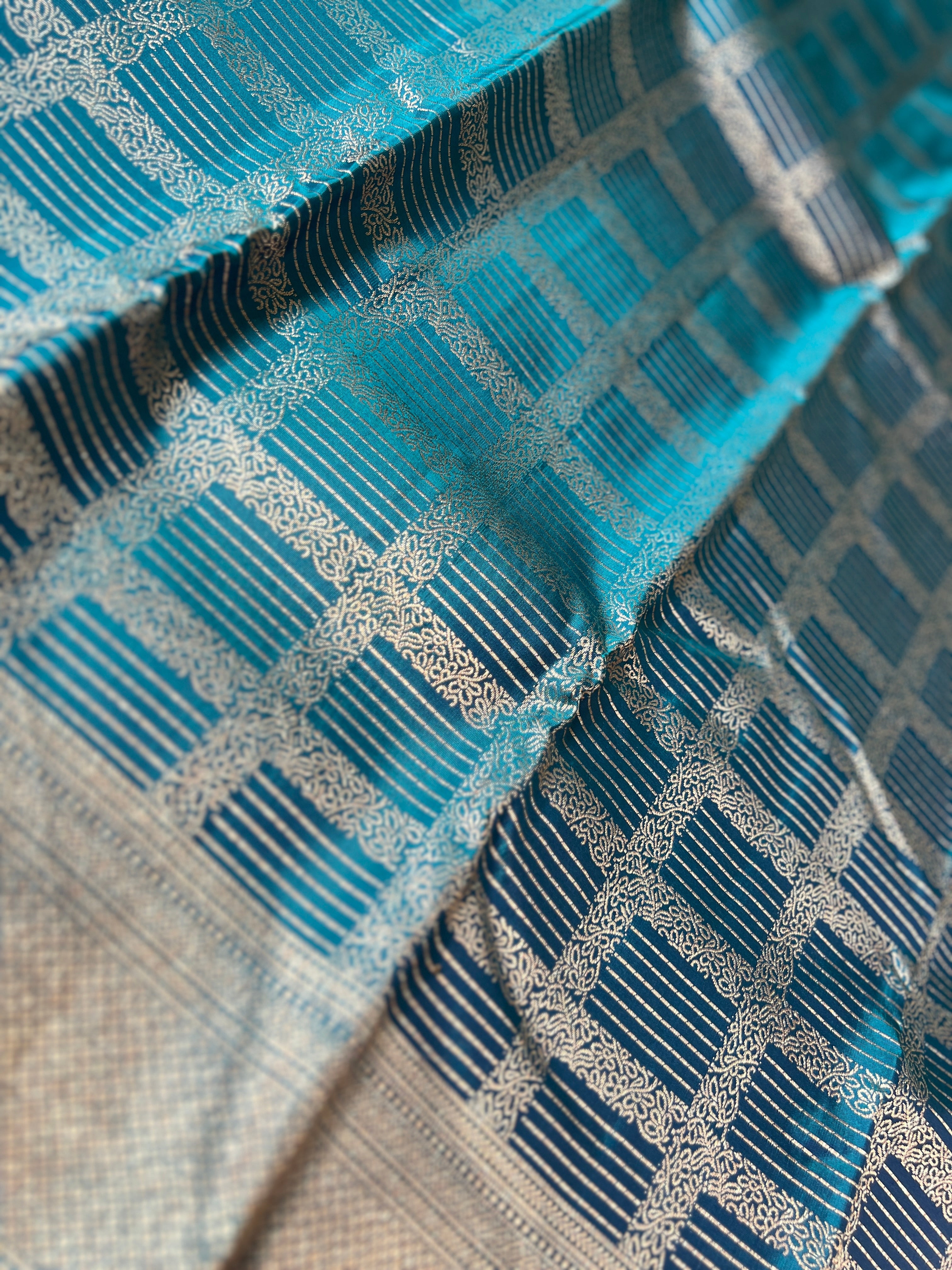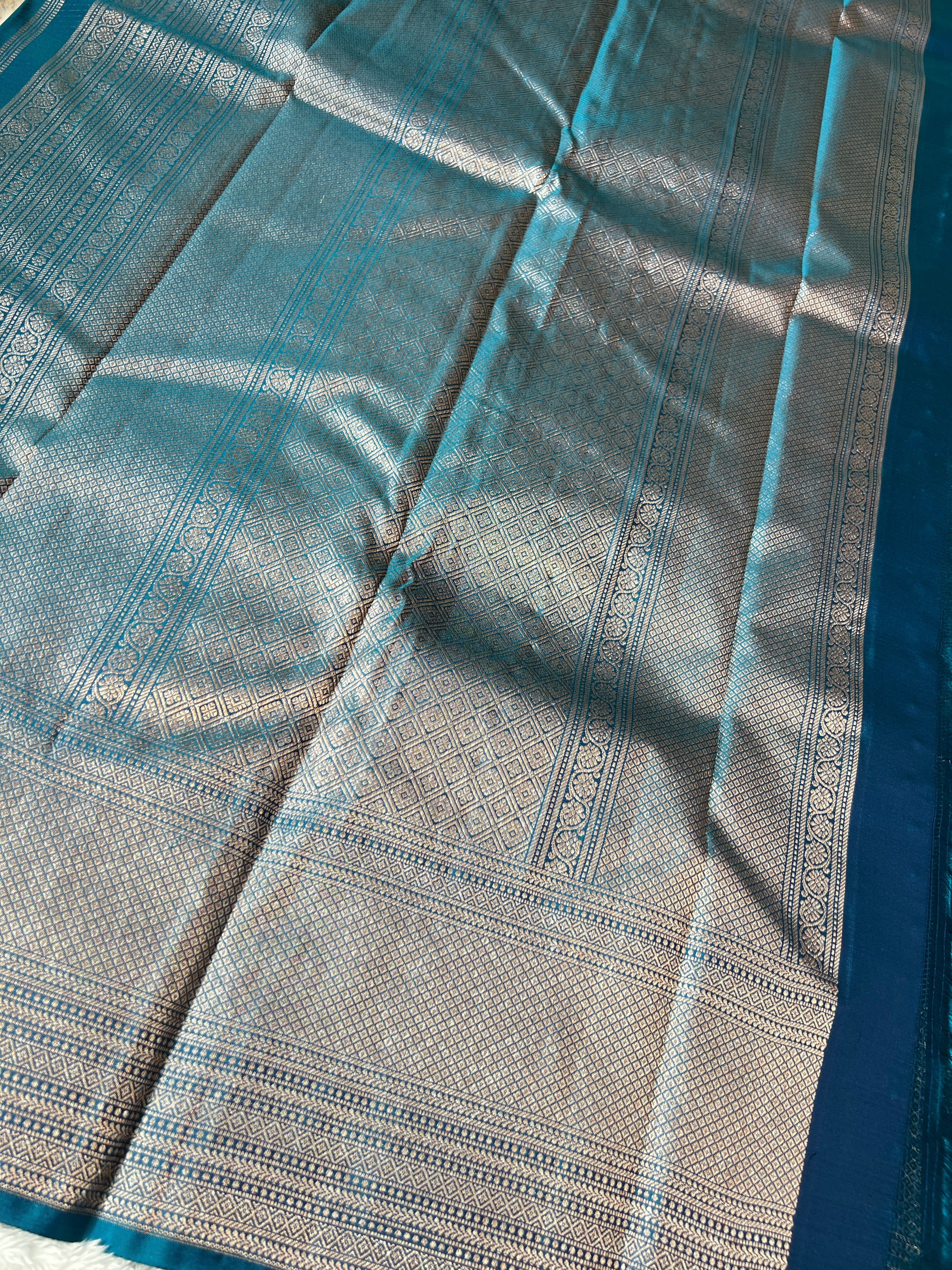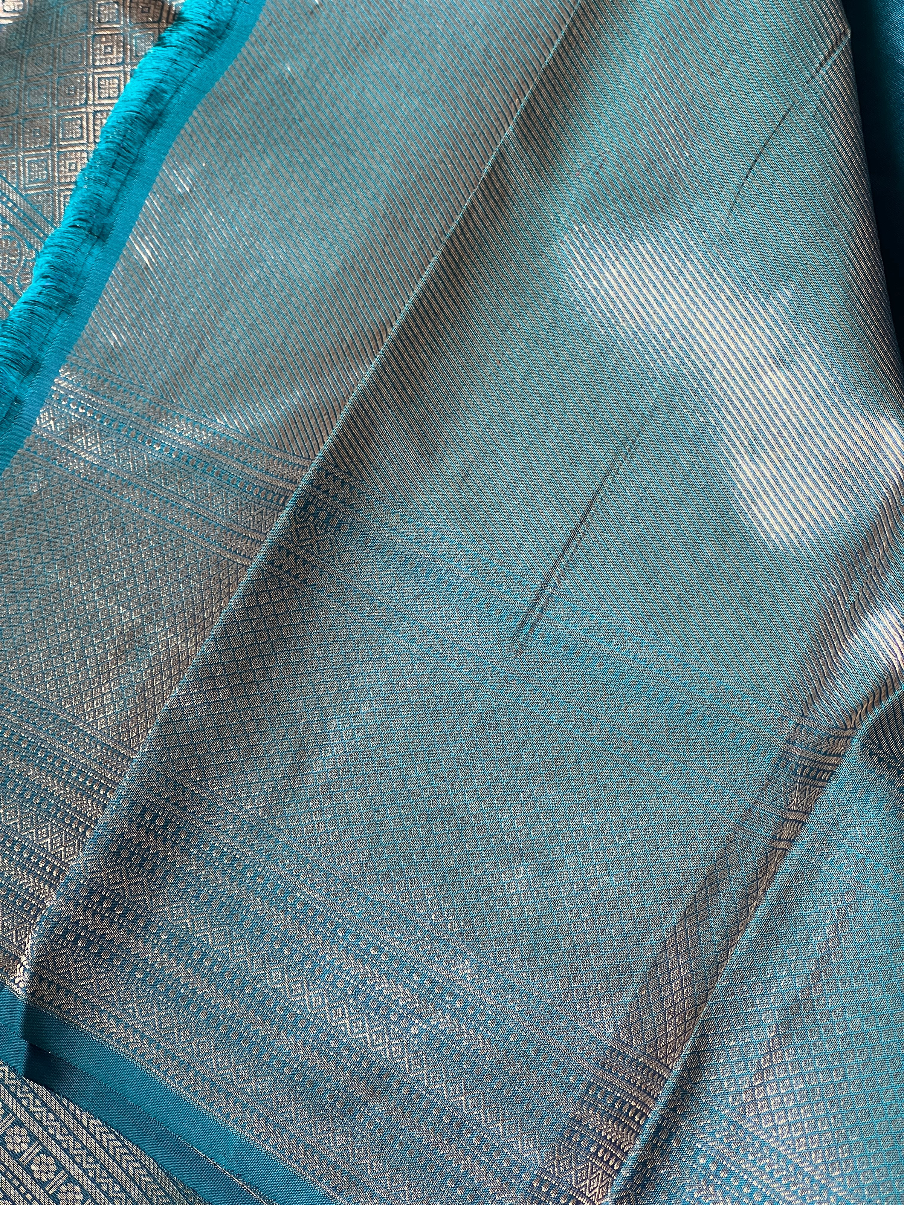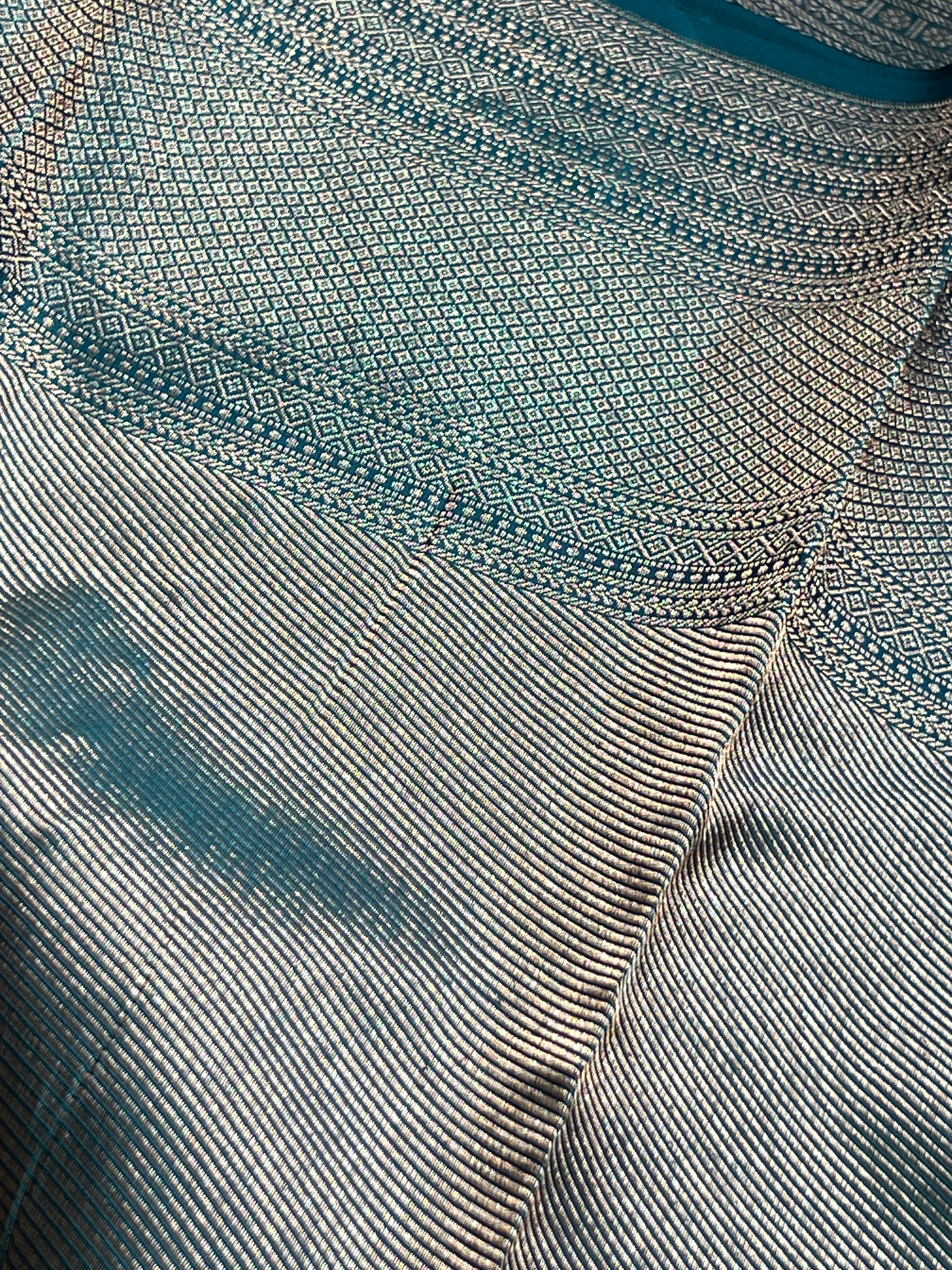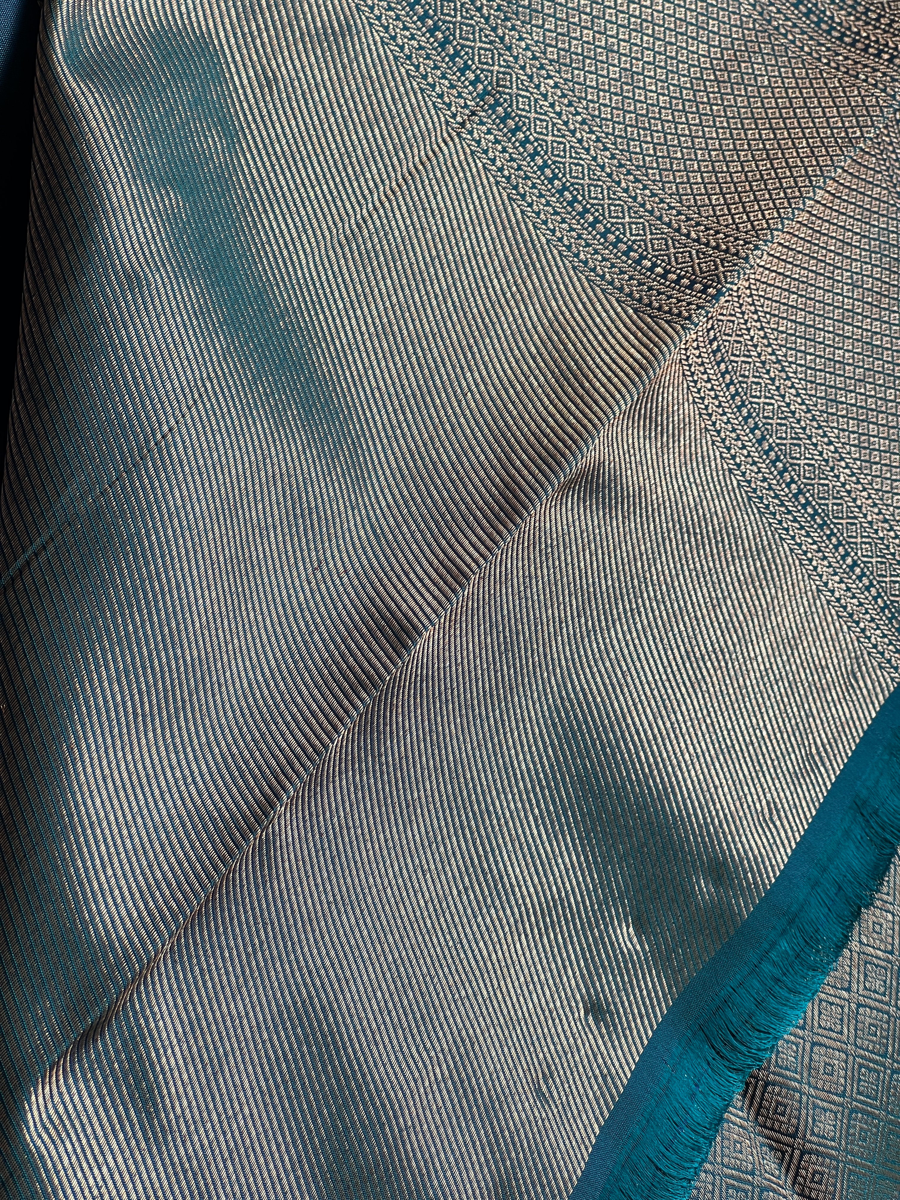 - Style: Boxy Pattern, Antique & Silver Zari Woven, Handloom, Diamond Patterned Pallu & Borders